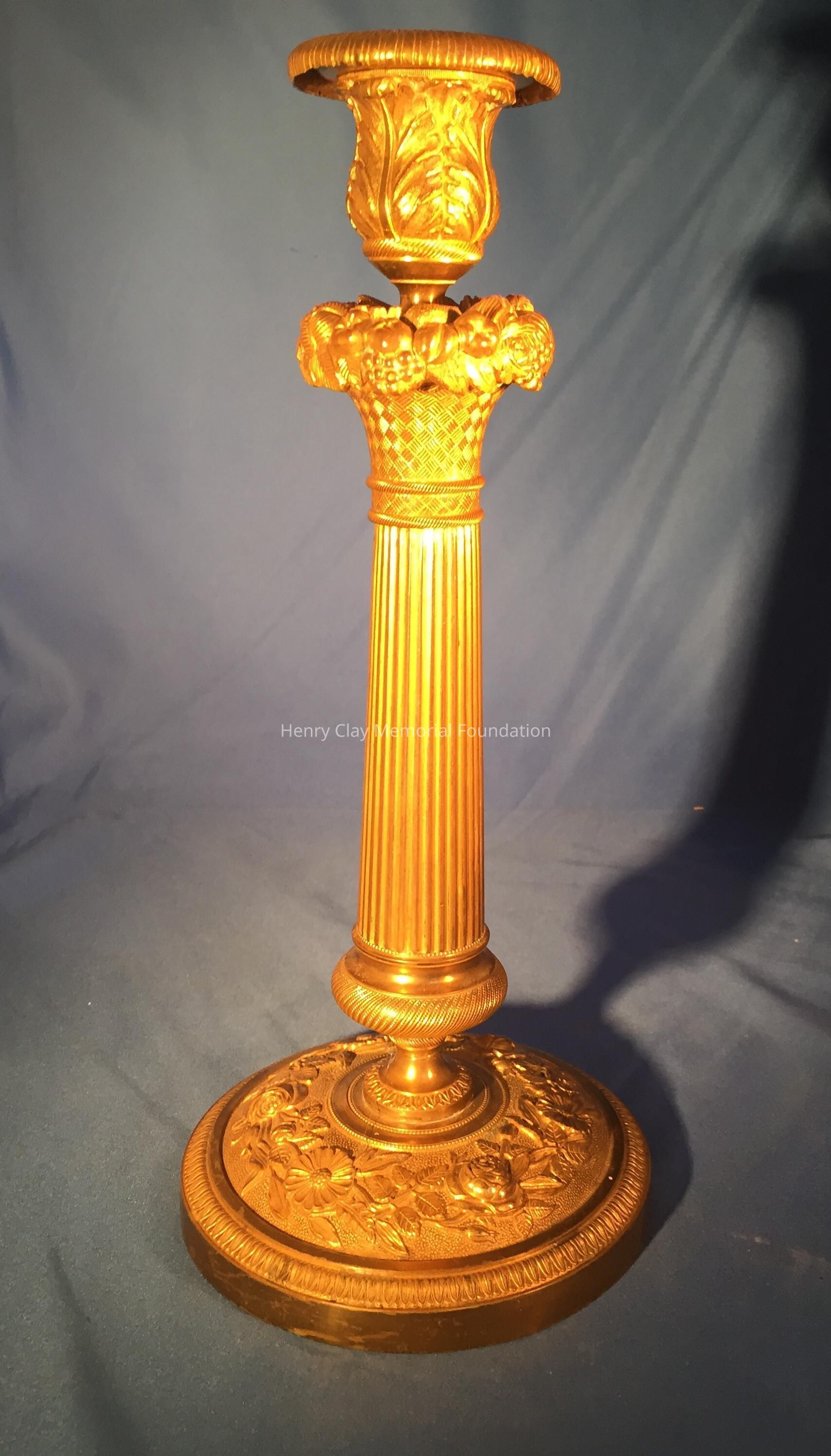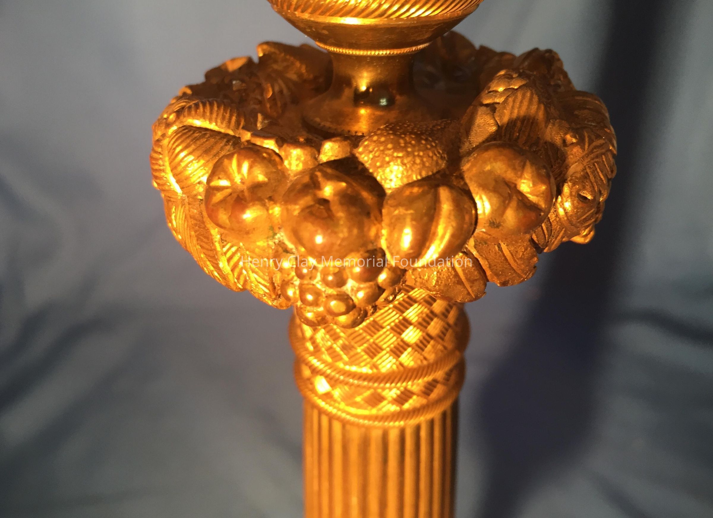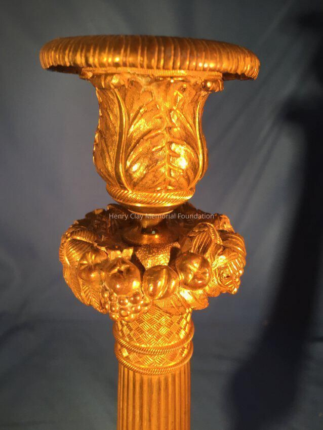 Gold ormolu candlesticks; Empire style from early 19th century. Belonged to Henry Clay.