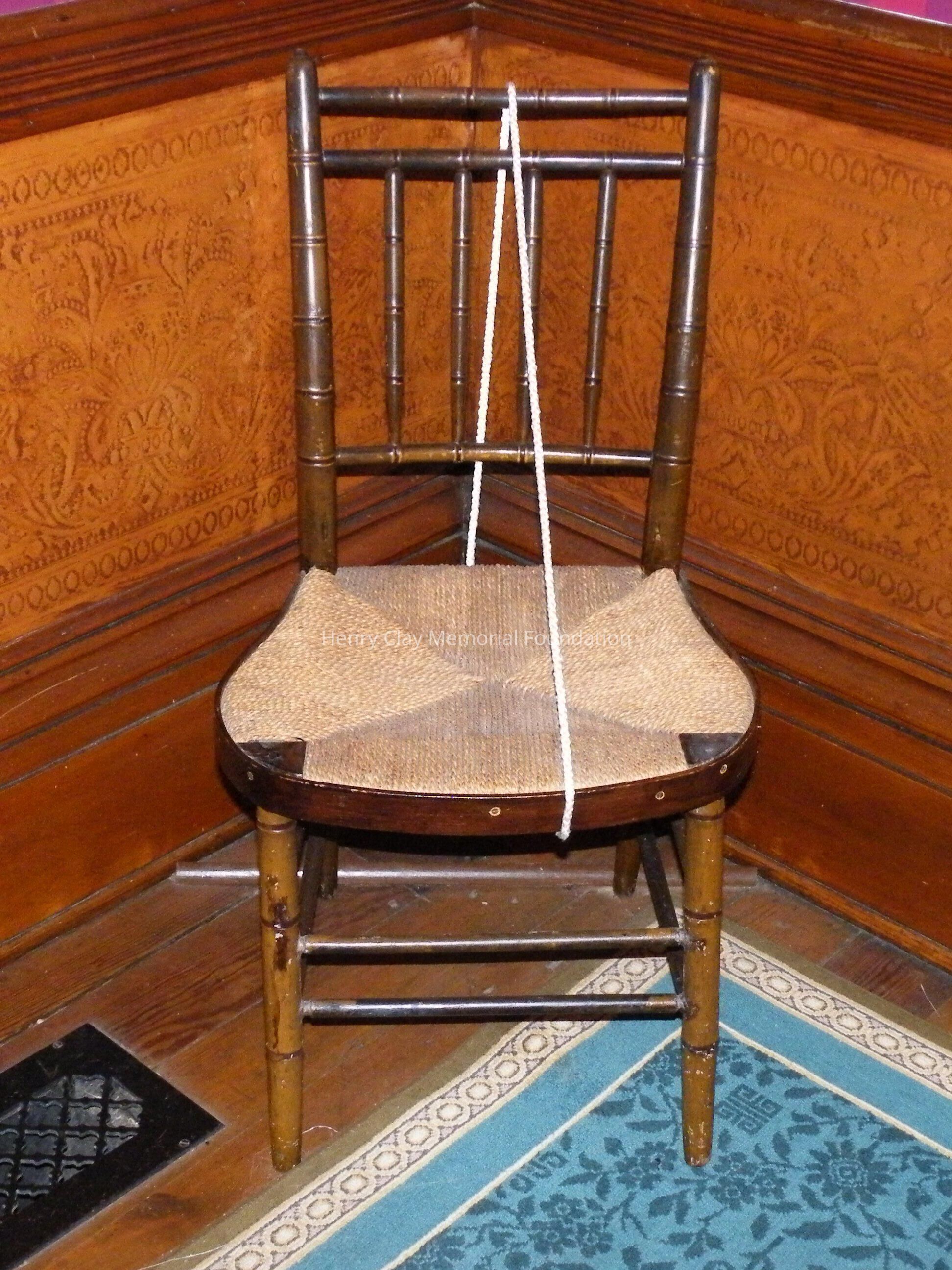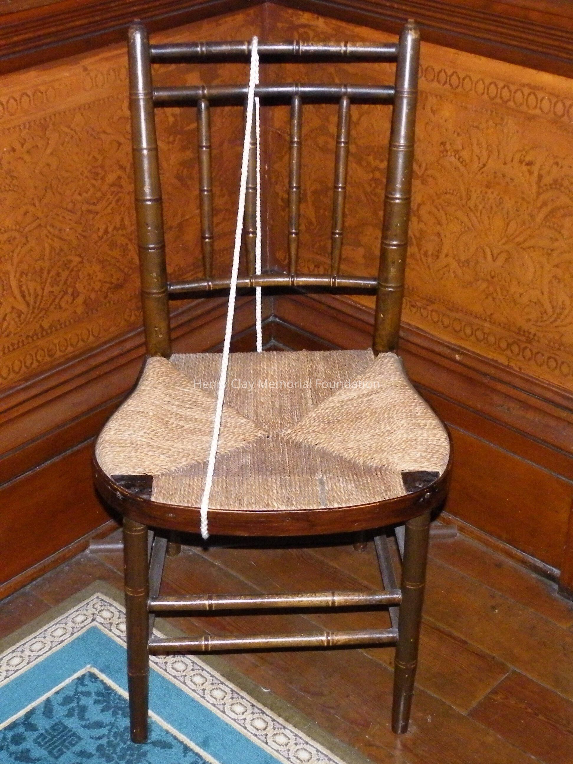 Two rush seat chairs used in Henry Clay's law office. The wood is a dark color.