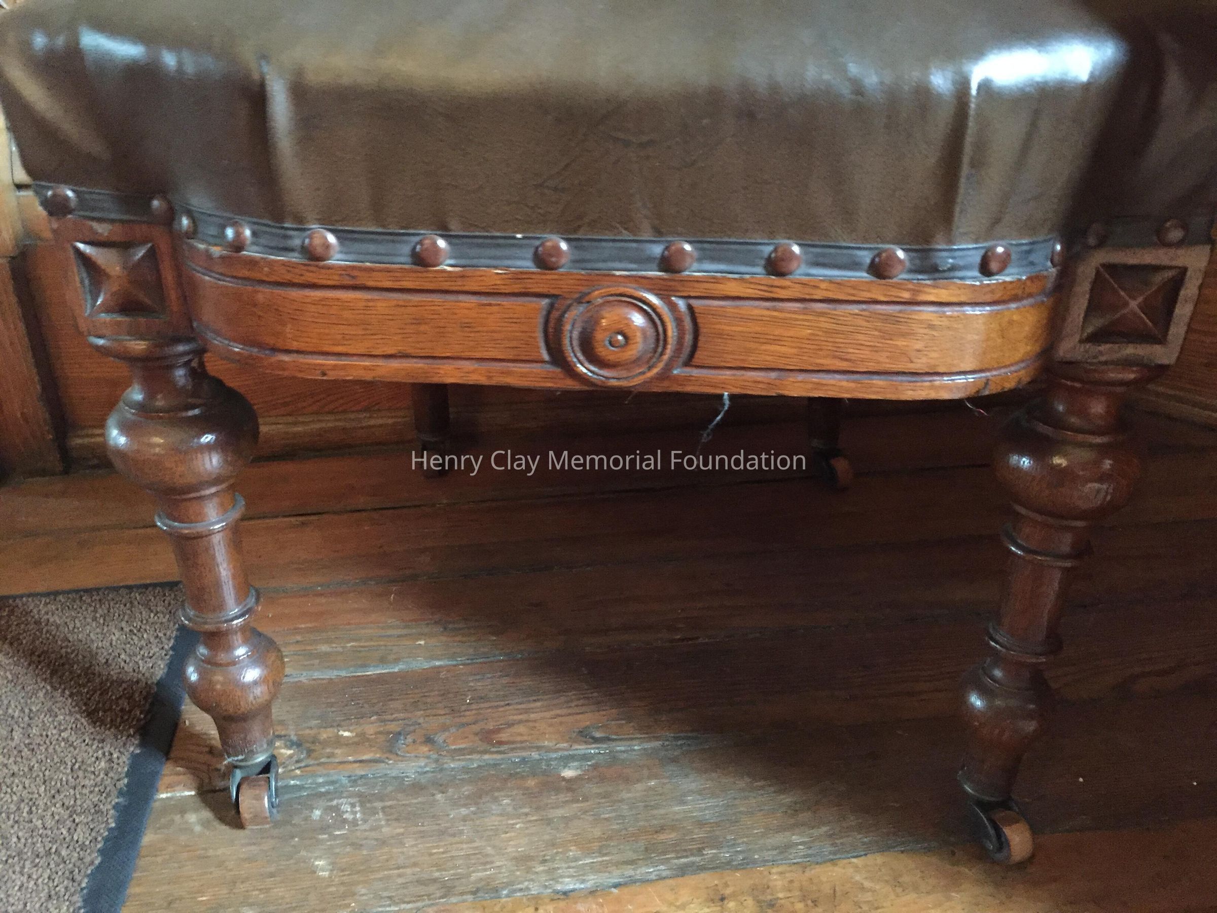 Twelve dining chairs, 2 arm, 10 side, oak, victorian, rope back with leather [?] backs and seats.Dimensions