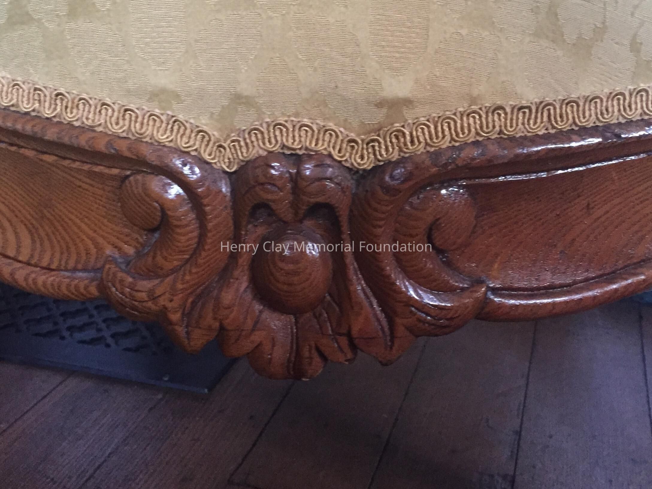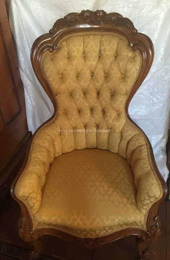 Victorian balloon-back upholstered arm chair, ca. 1856, with button back and casters. Made of ash with 20th century upholstery.
