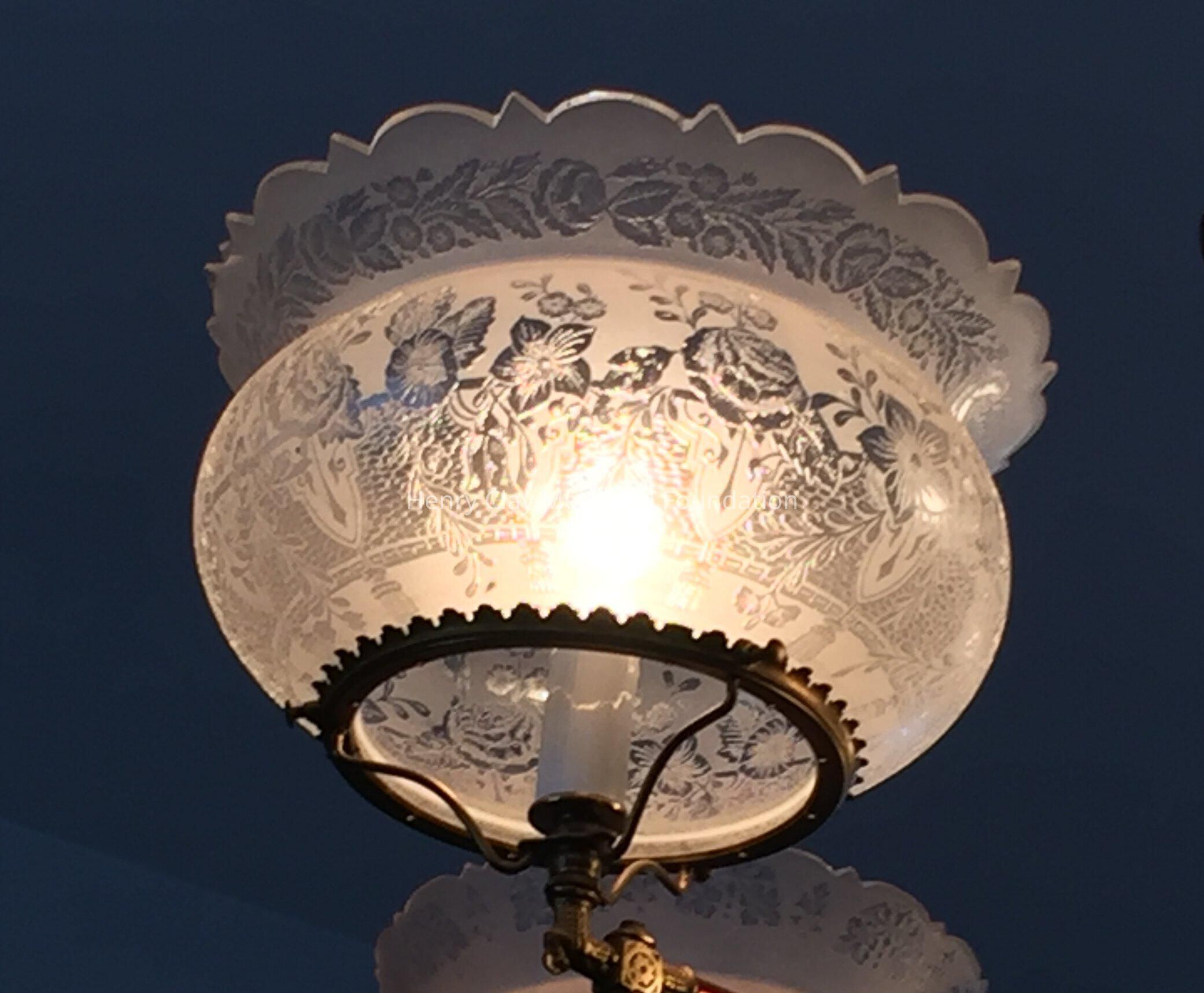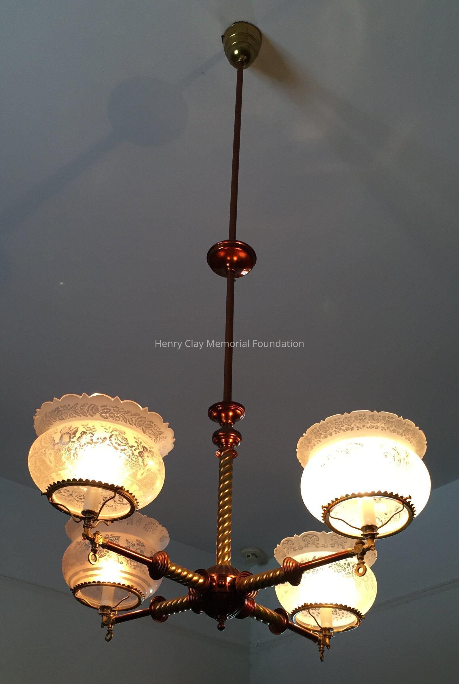 Metal, with 4 twisted arms and etched glass globes.