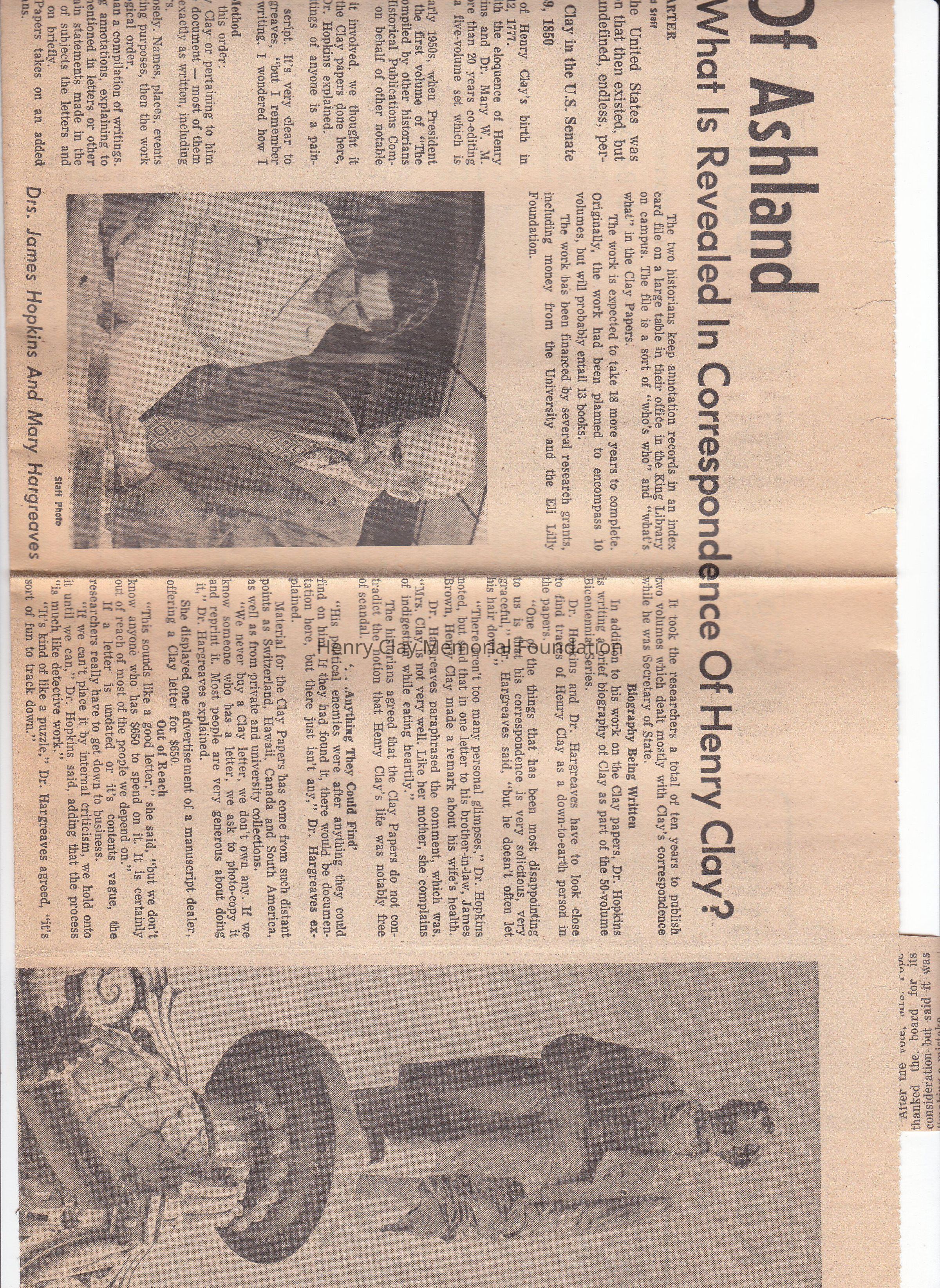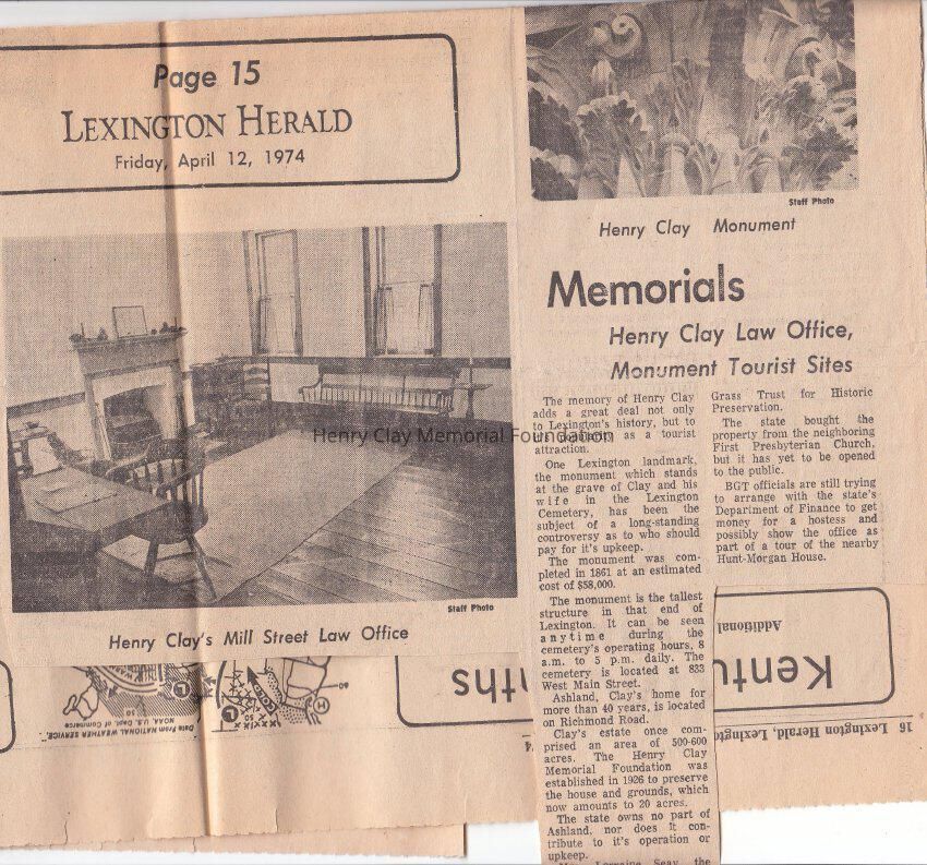 An article talking about Clay's correspondance, and a smaller clip about the Henry Clay Monument in Lexington cemetery.