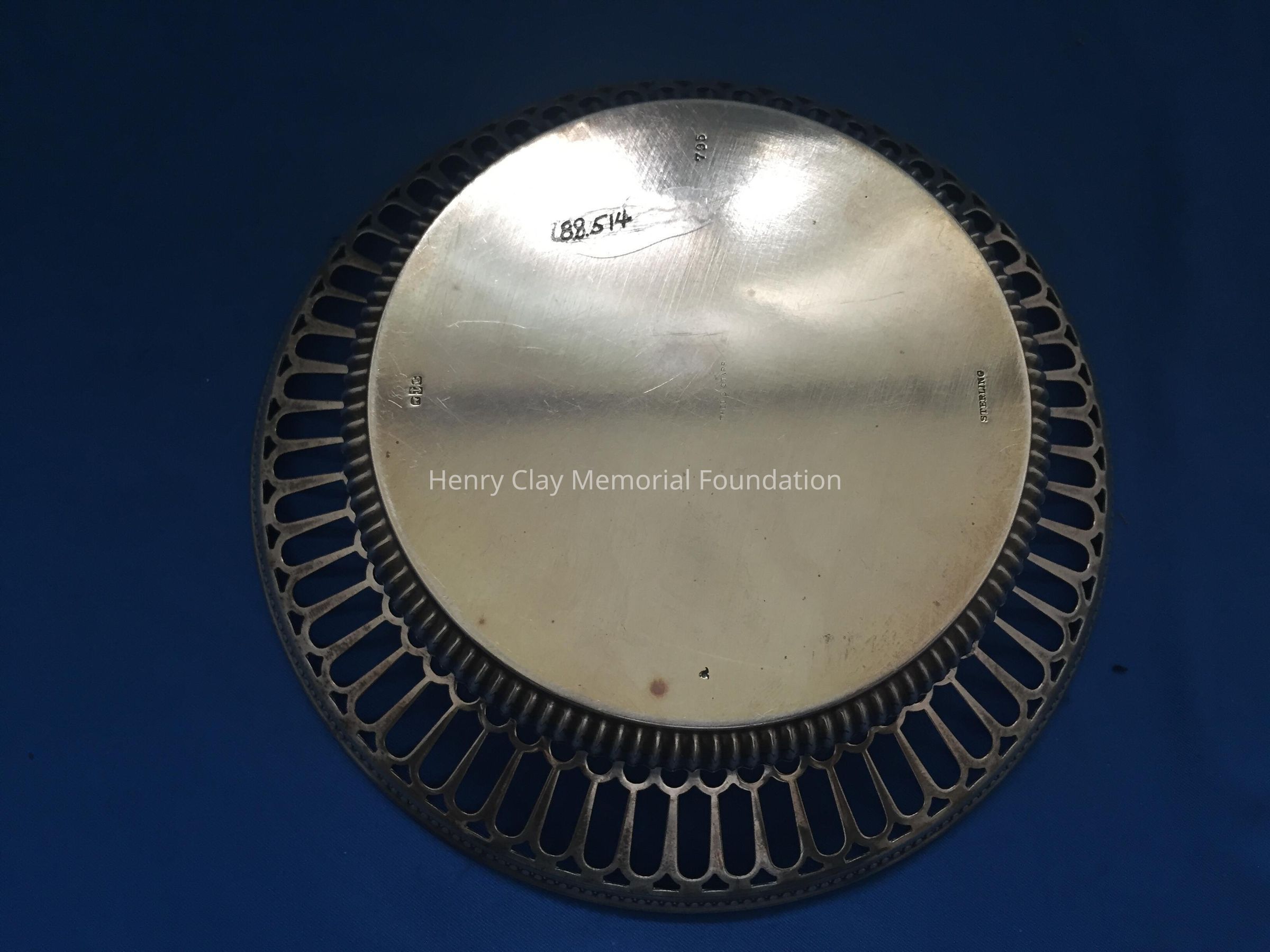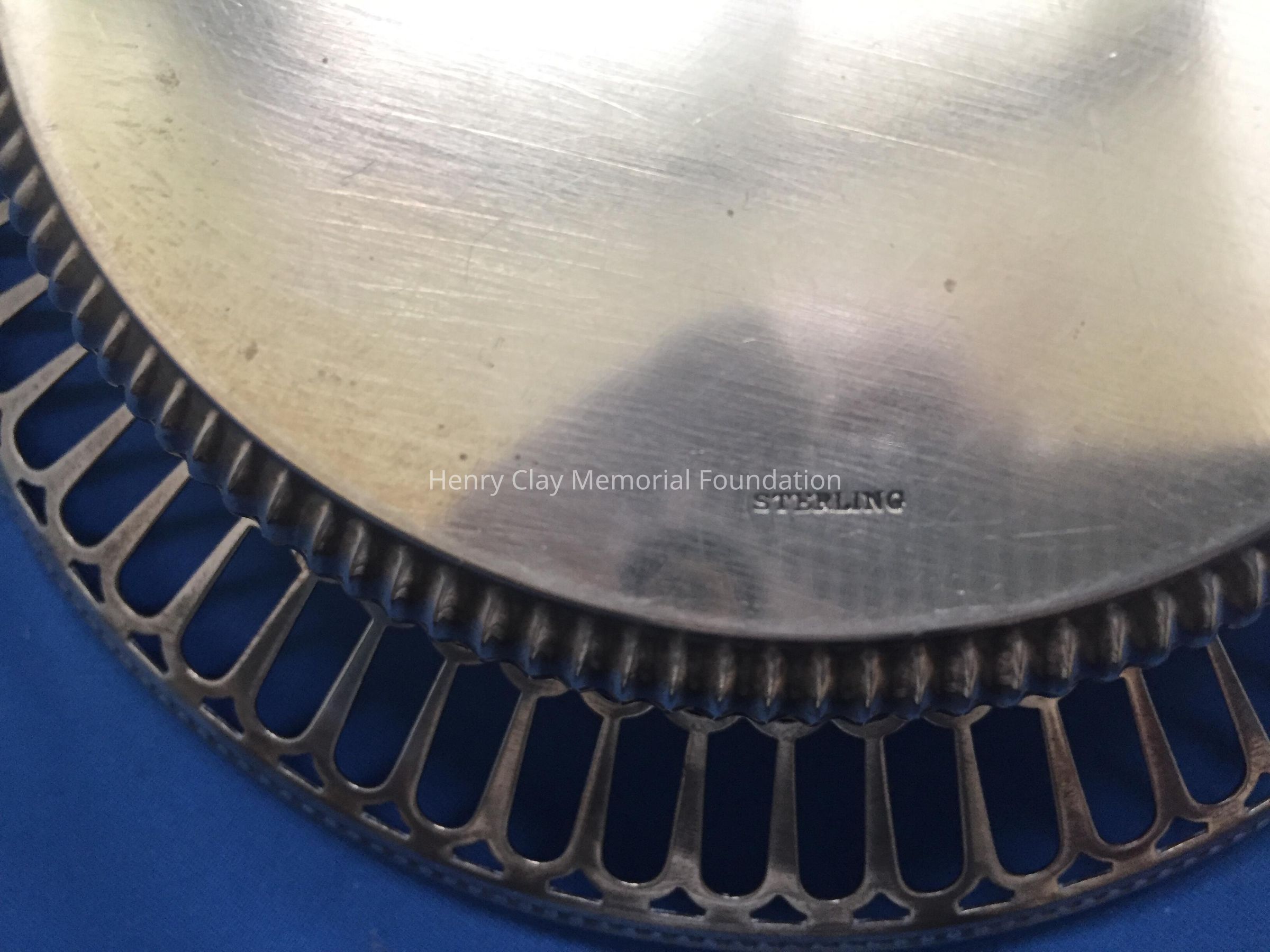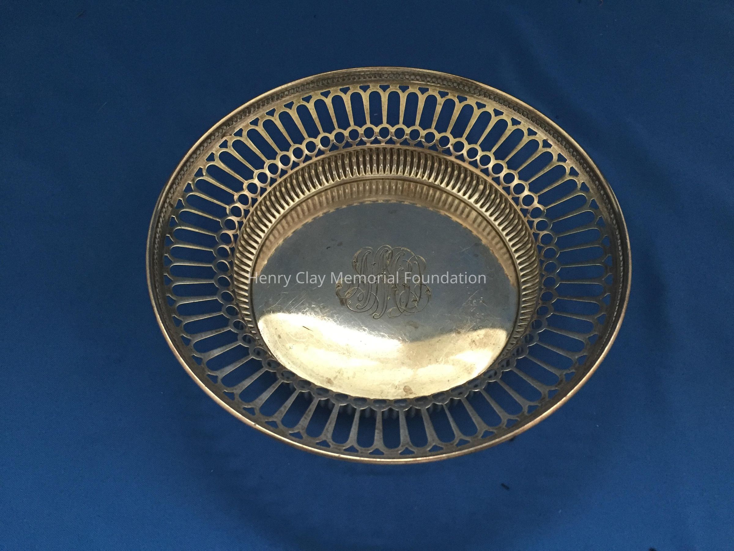 Sterling, pierced ribbing, beaded band at top. Engraved "NMcD" on inside bottom. Maker's mark on bottom and "795."