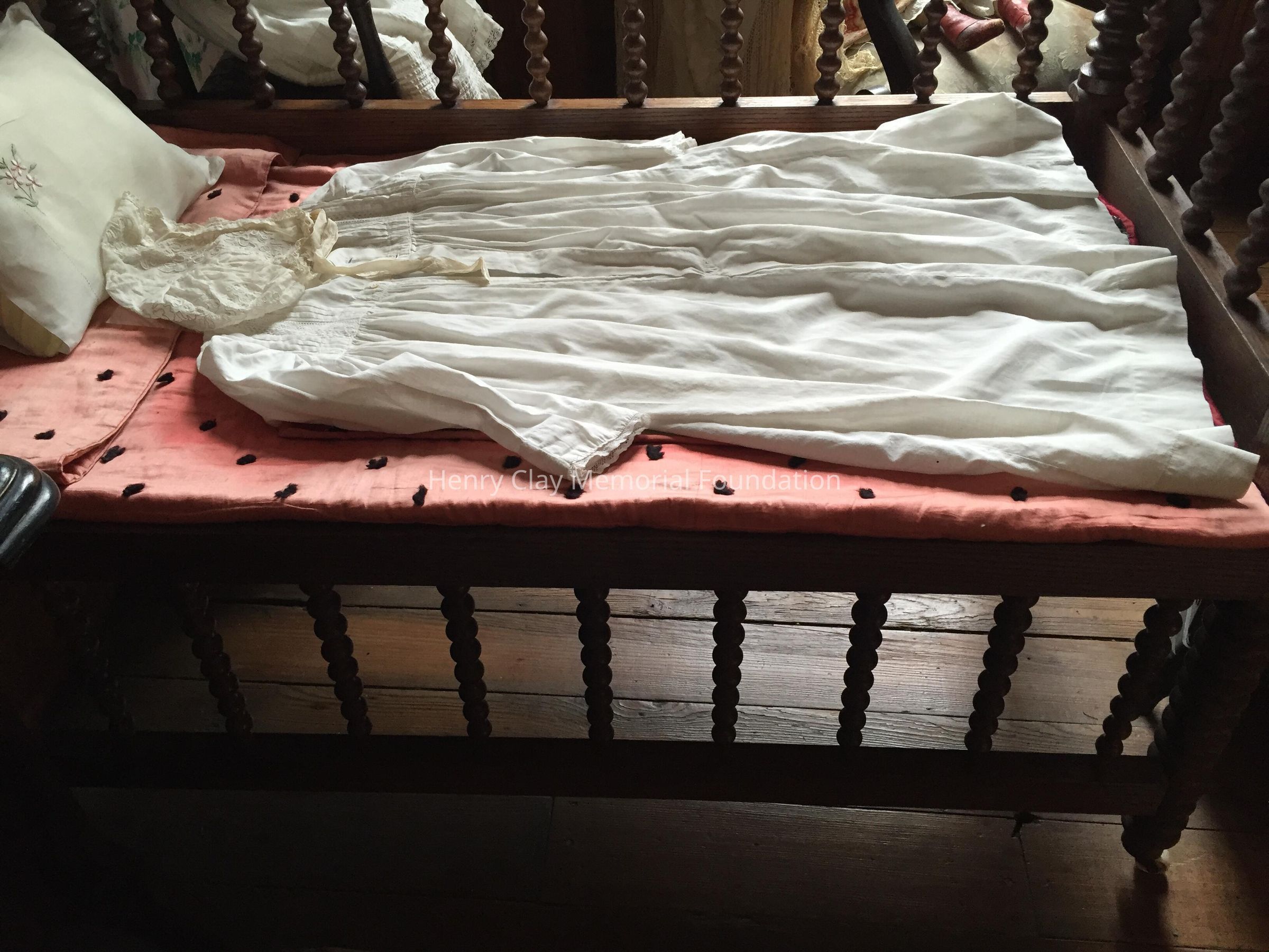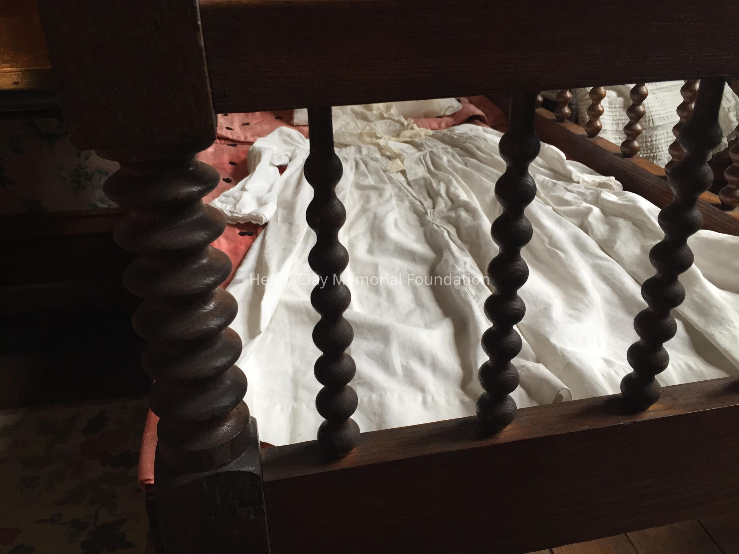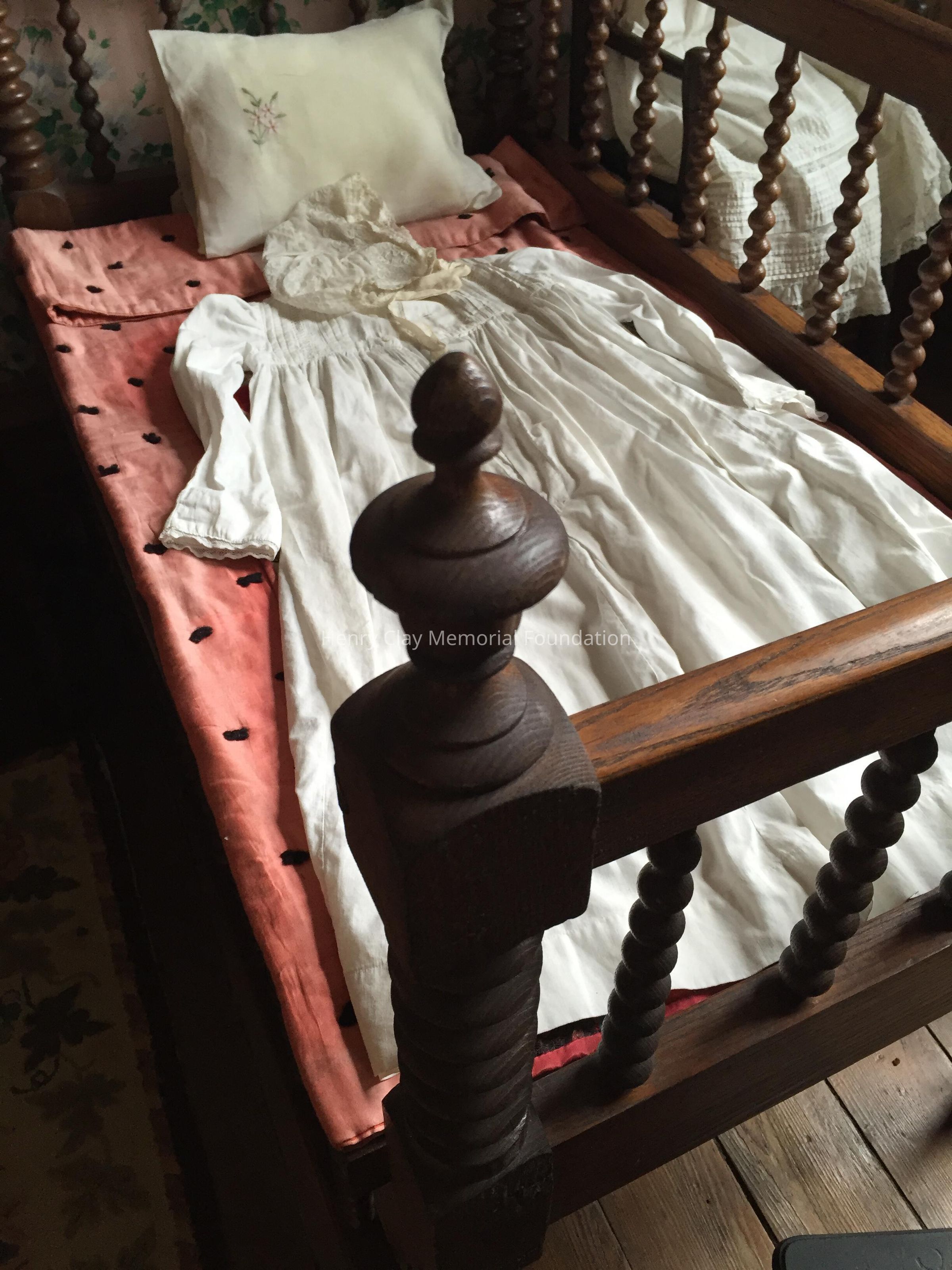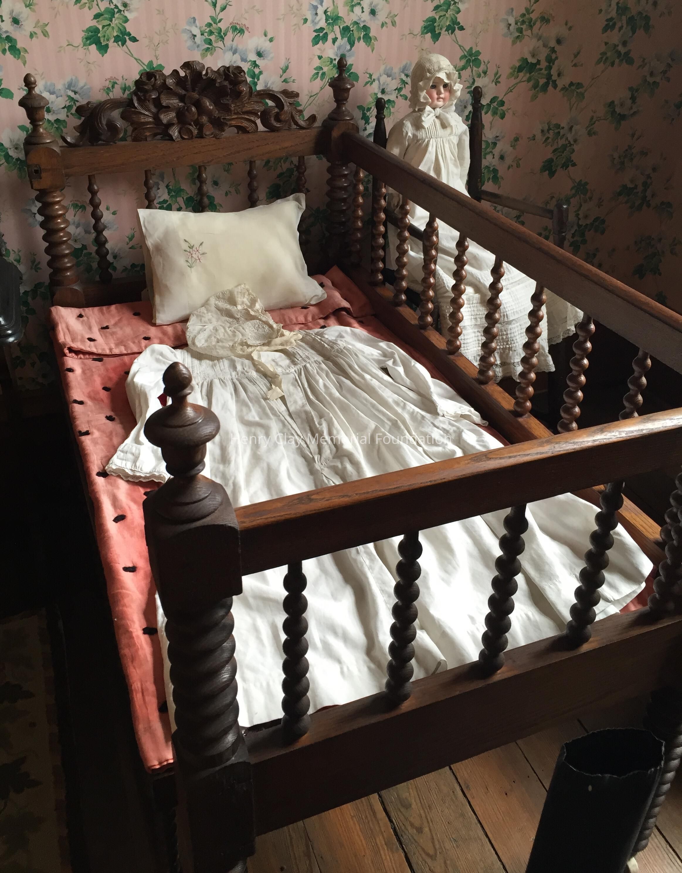 Ash or oak with spindle sides; one side rail lowers for easy access. c. 1855.