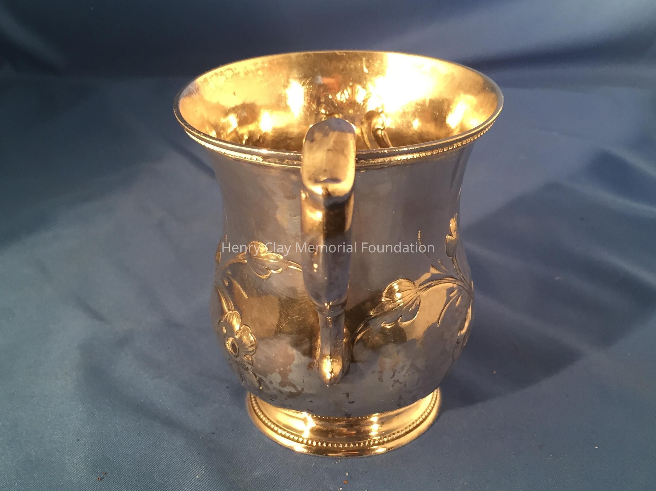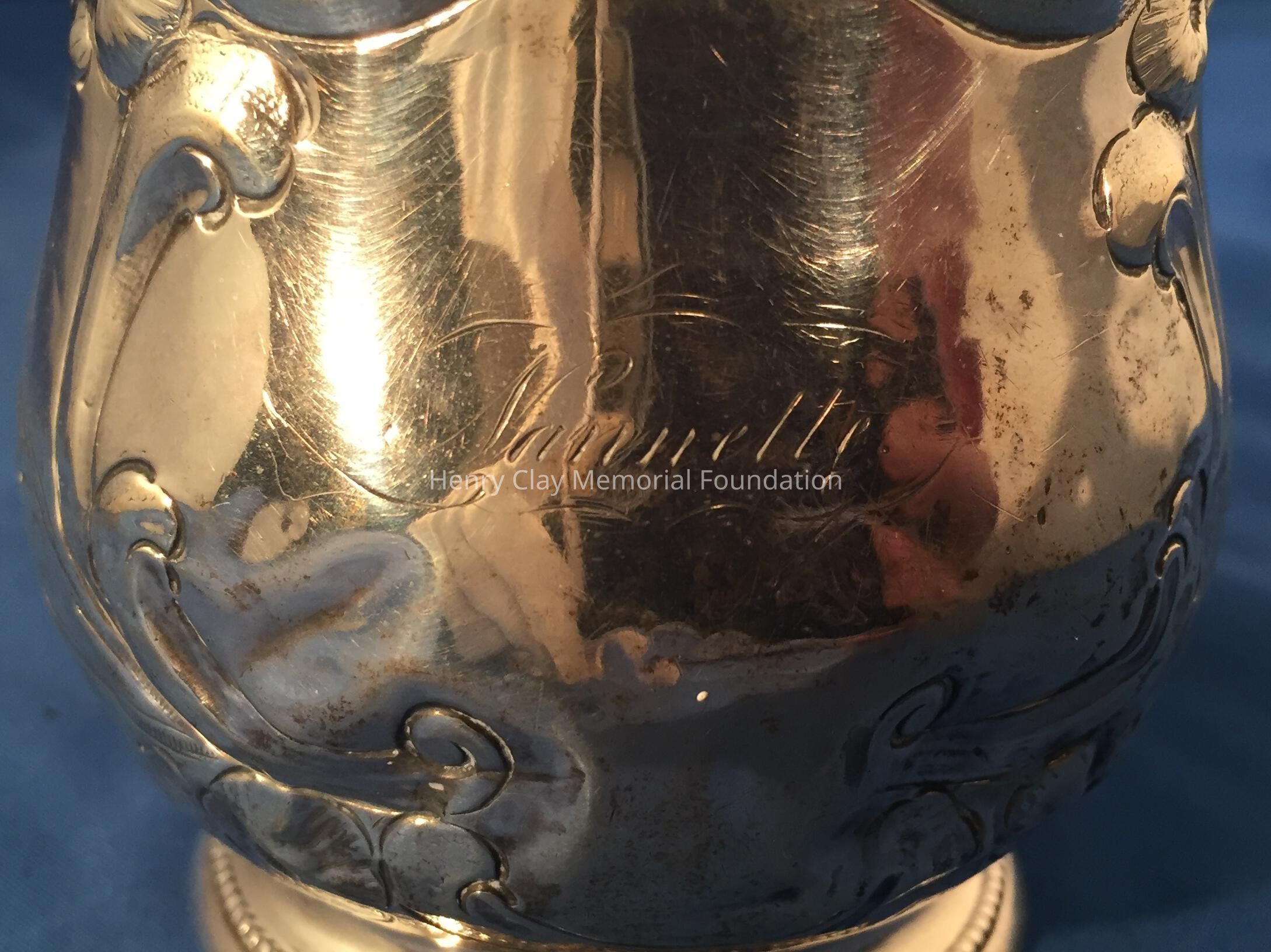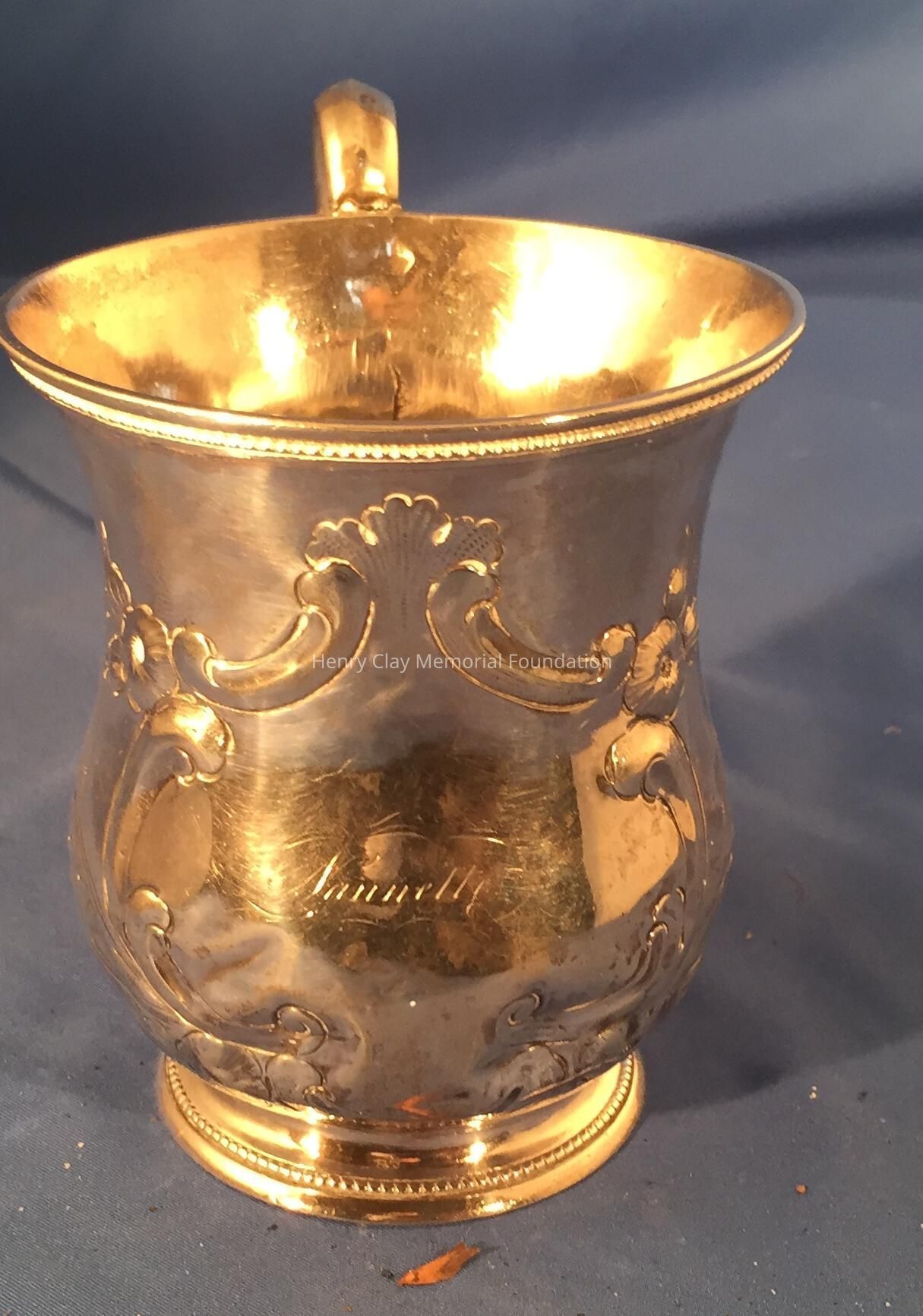 Coin Silver, shaped cup with broken handle. "Nannette" on side. Marked J. Kitts.