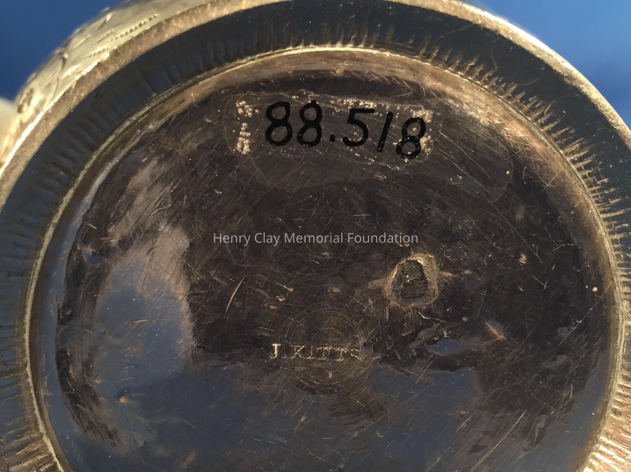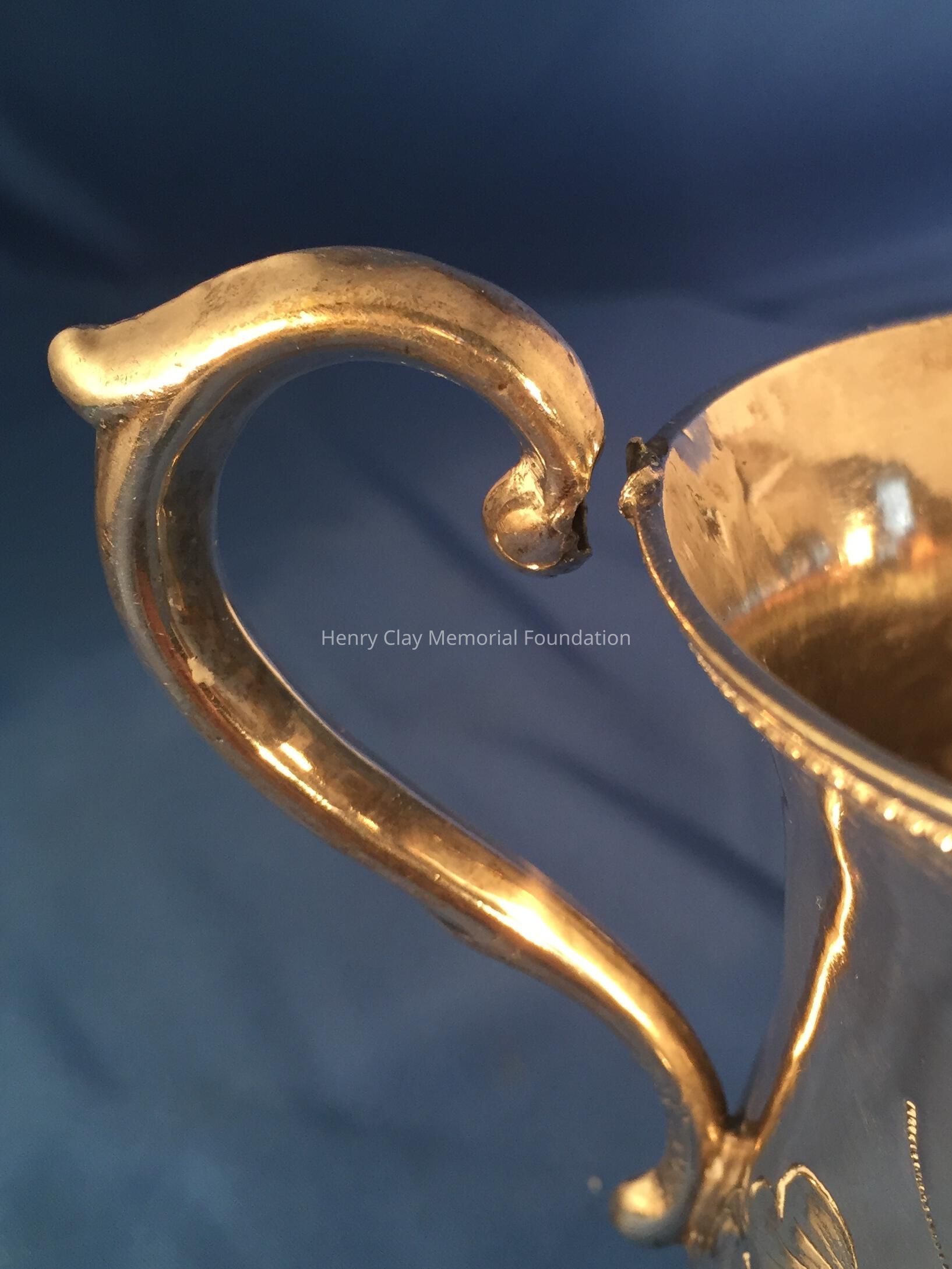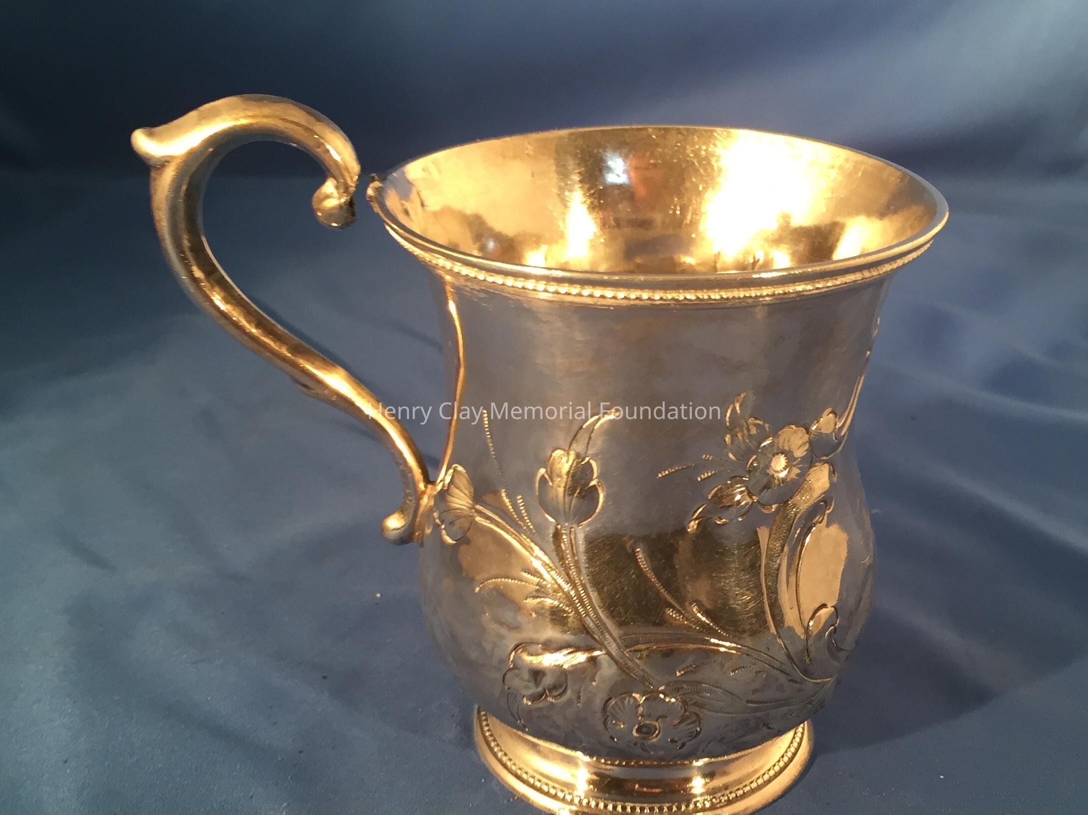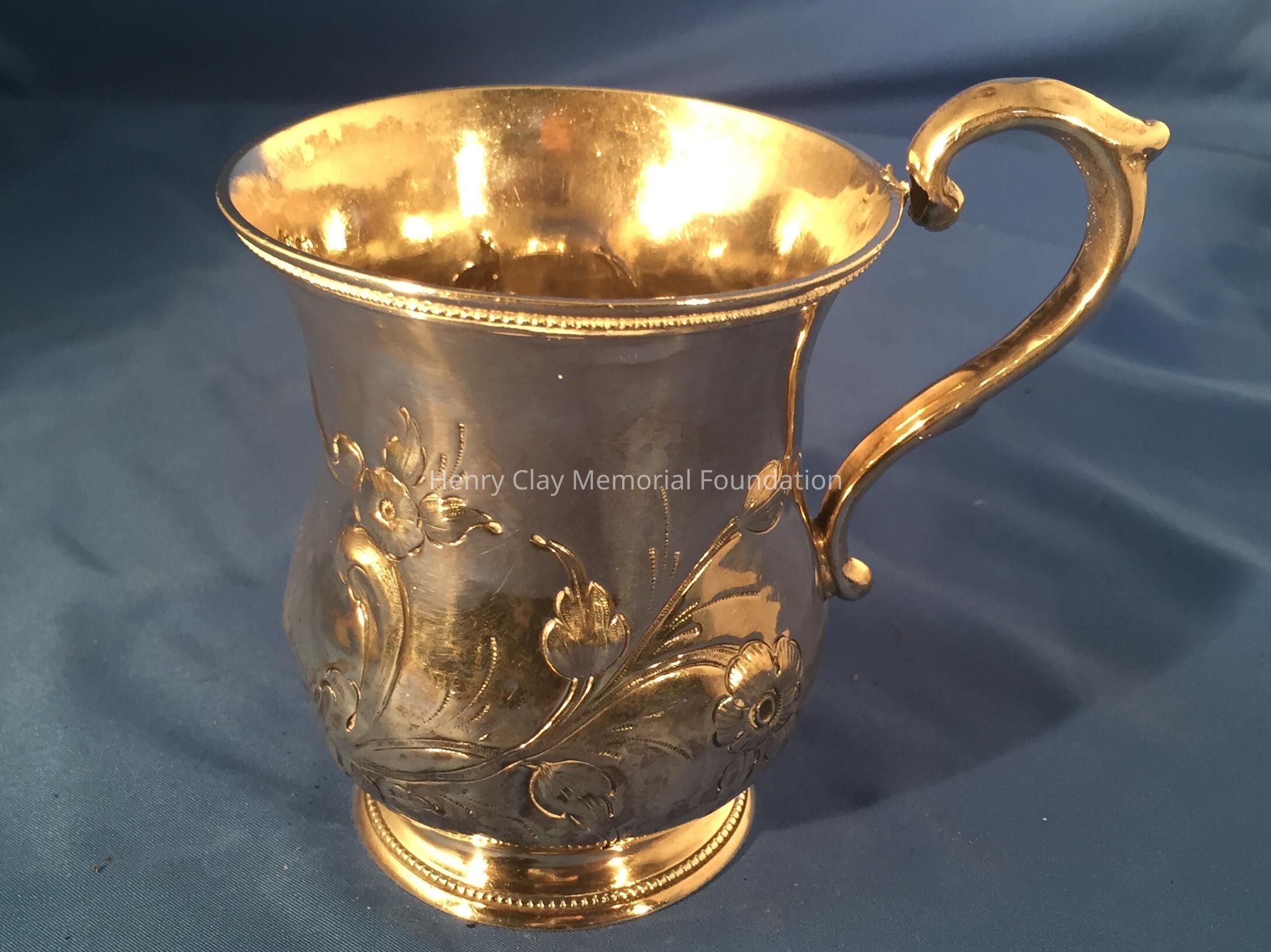 Coin Silver, shaped cup with broken handle. "Nannette" on side. Marked J. Kitts.