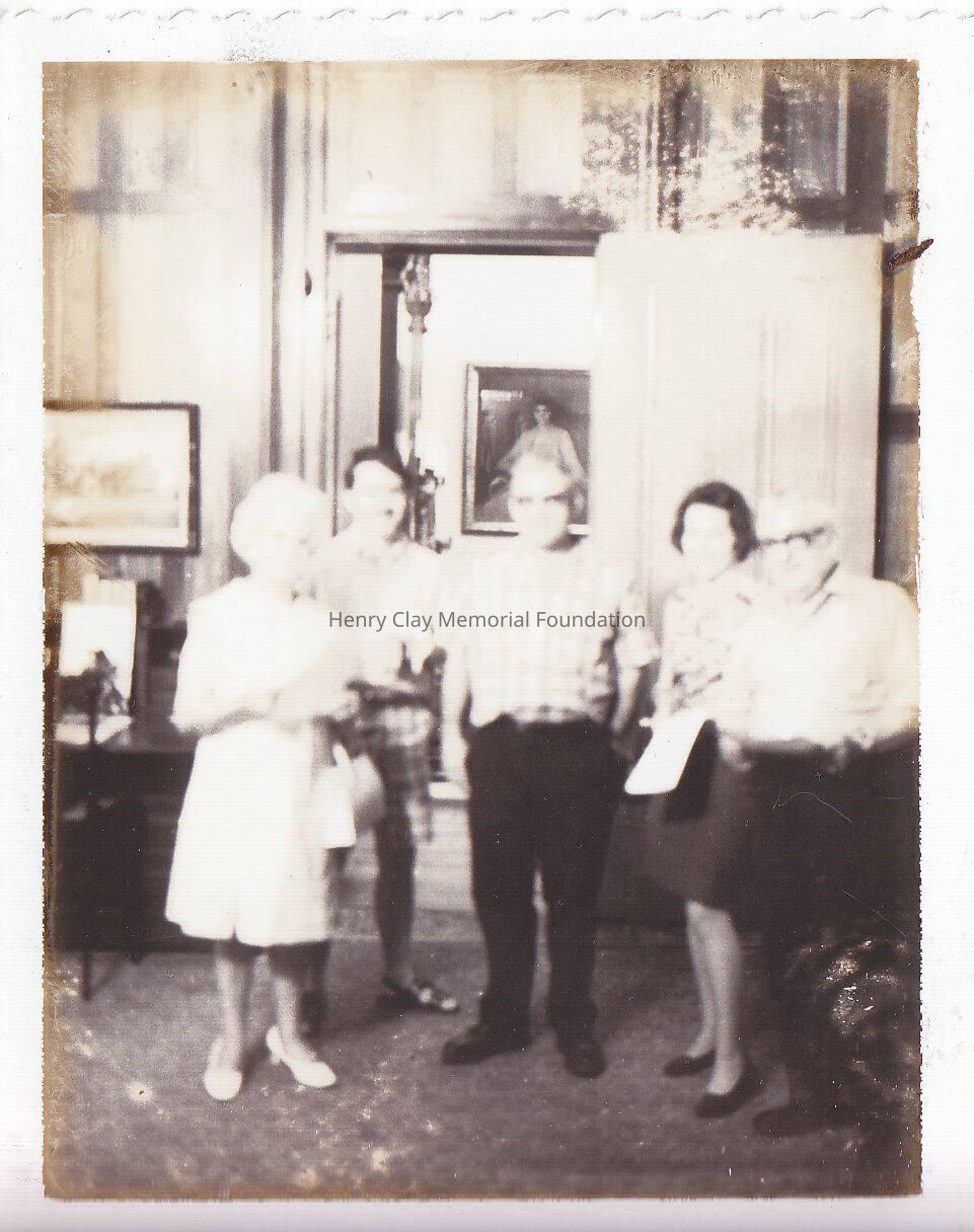 A black and white photograph depicting five people inside Ashland, i june 1969