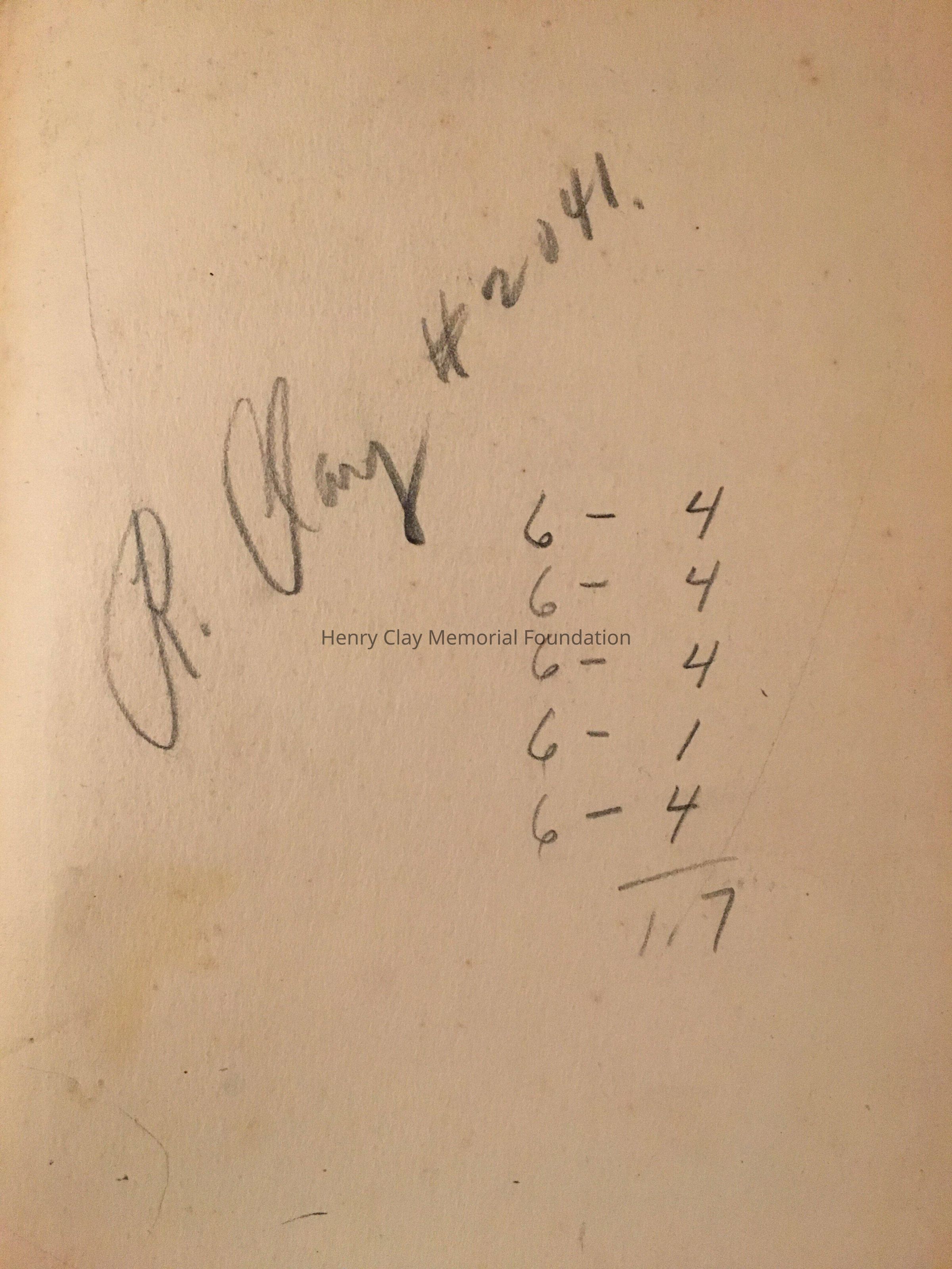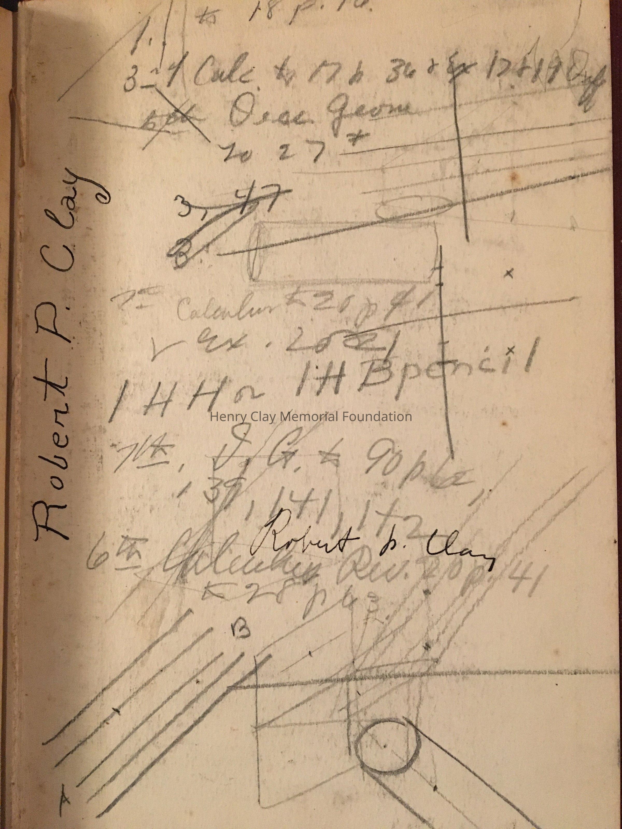 Writings throughout the book. "Robert P.Clay" in ink inside back cover.