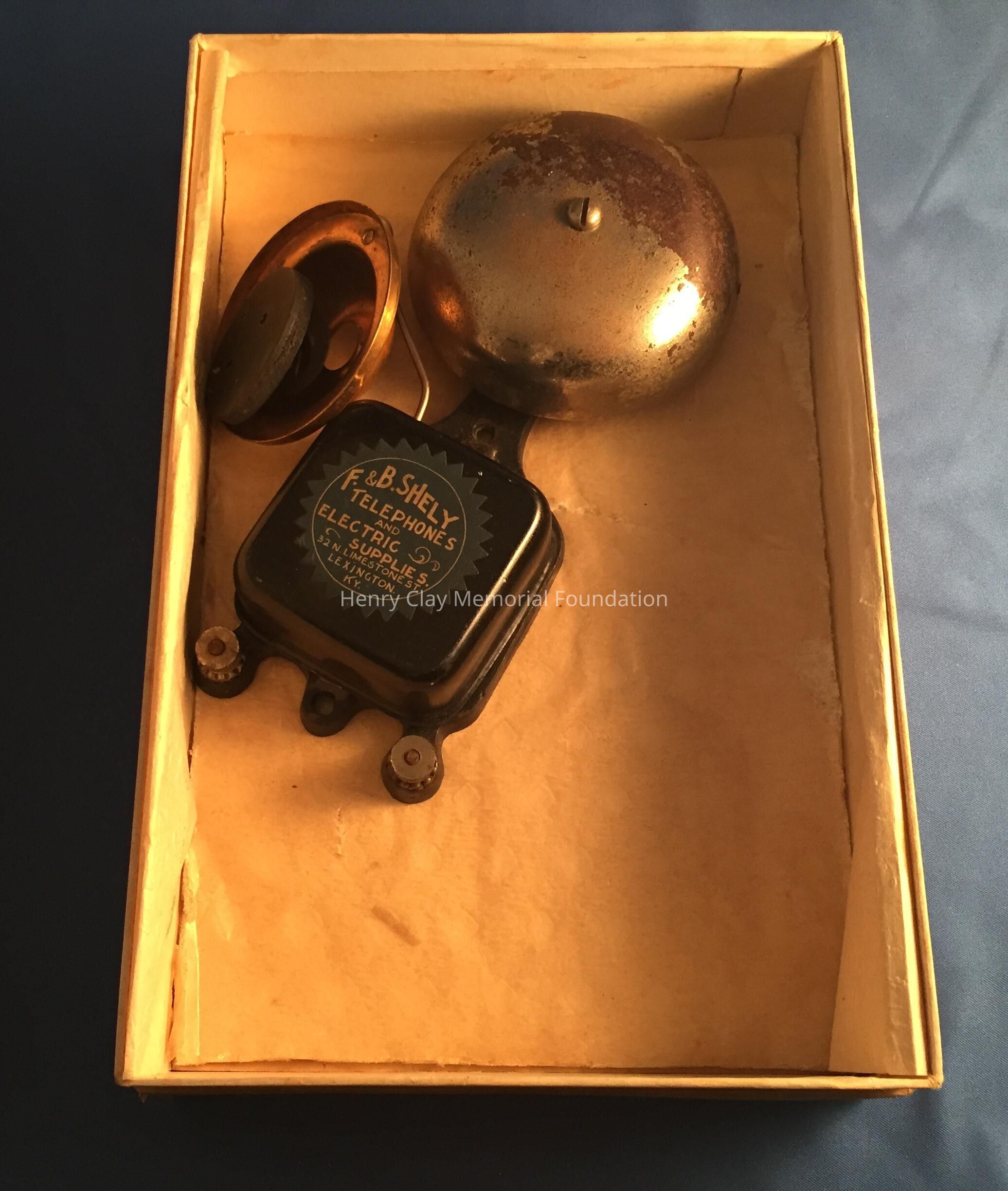 A 20th Century doorbell. Both the interior (bell) and exterior (button) parts are in the box.