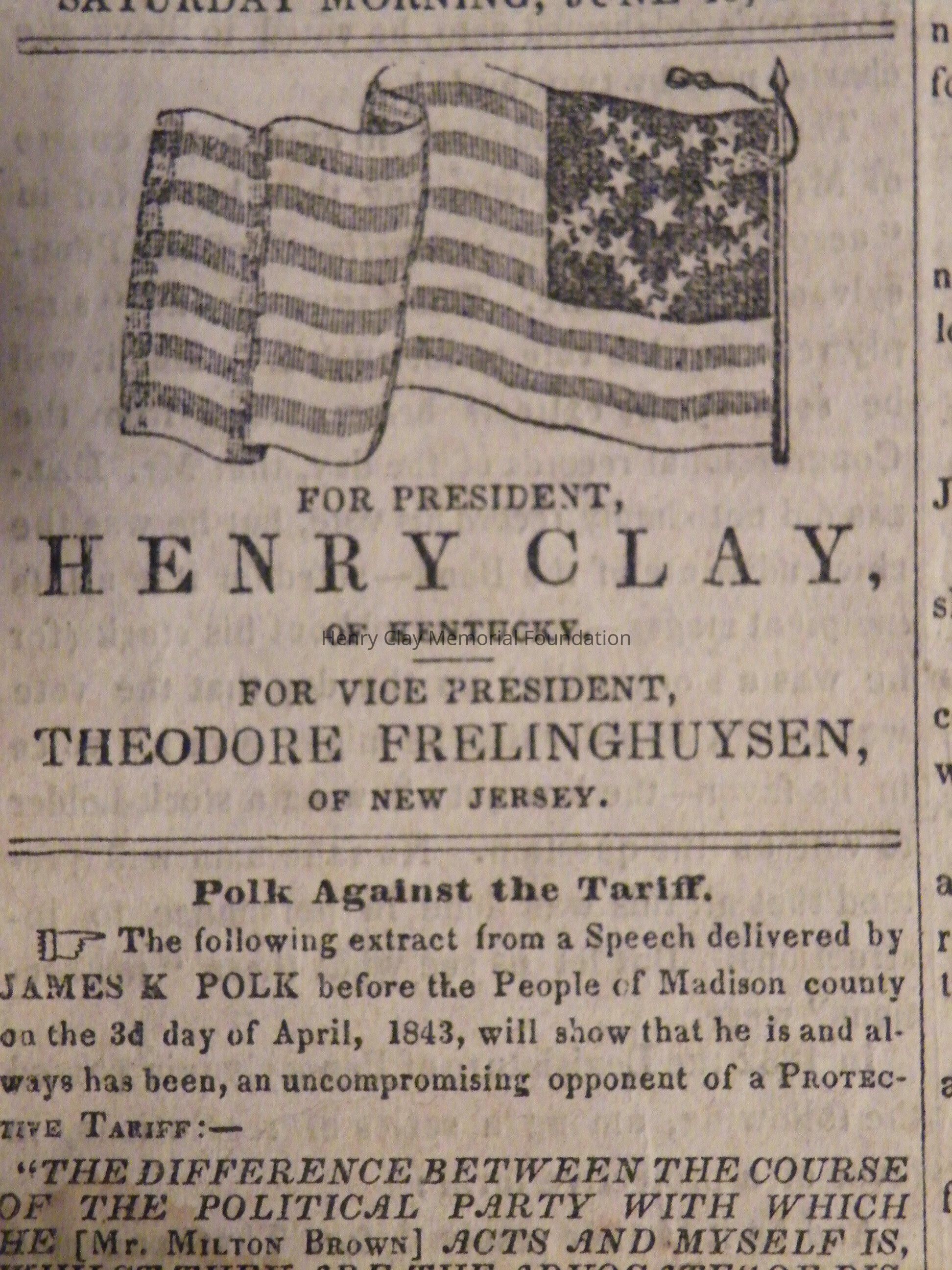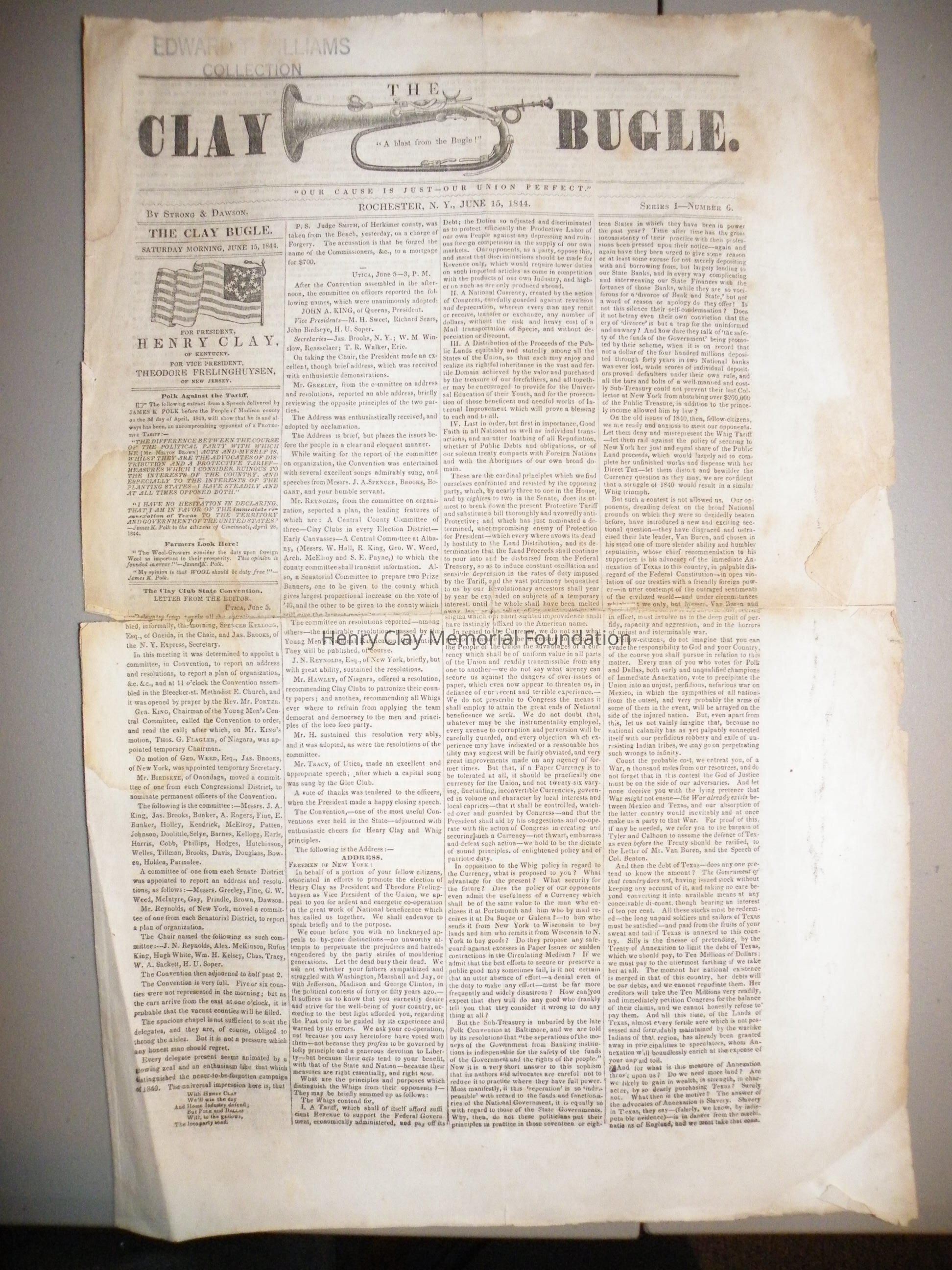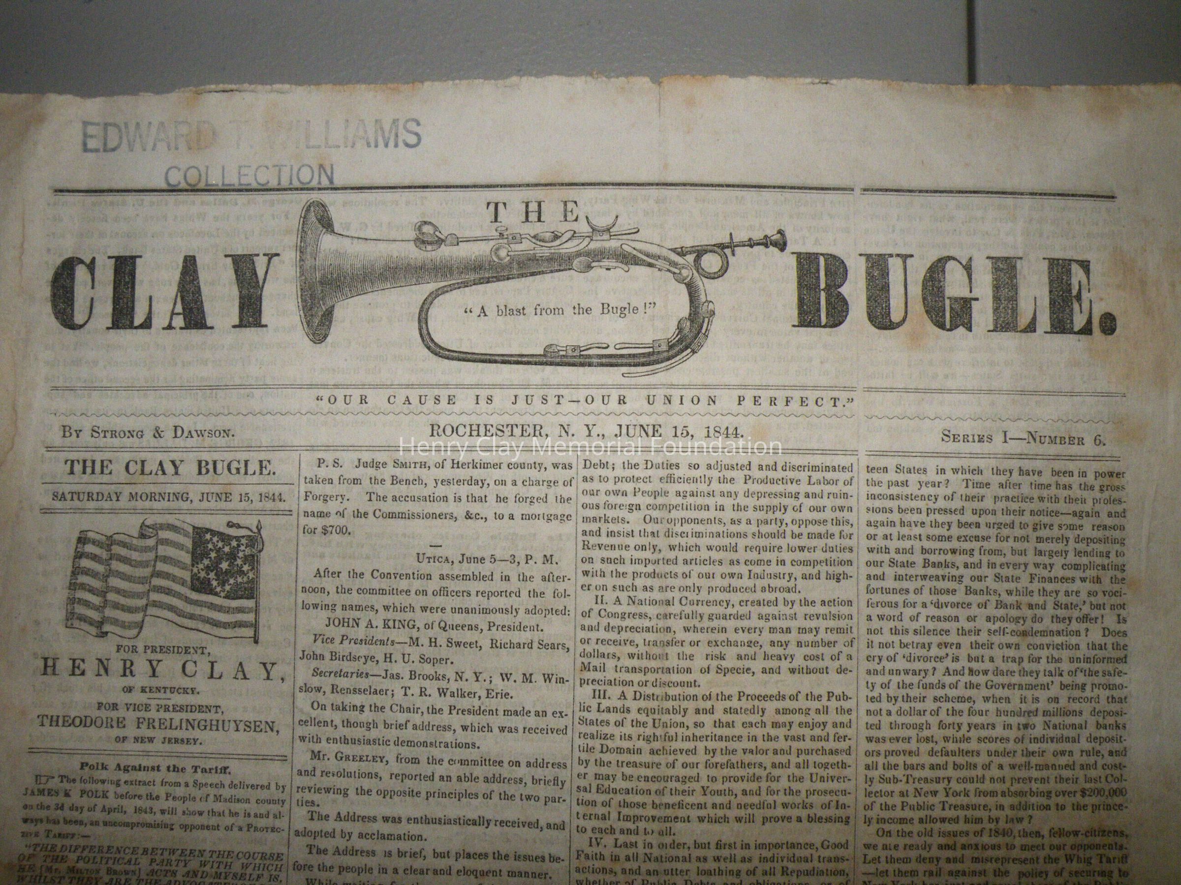 A June 15,1844 edition of the Henry Clay campaign newspaper, "The Clay Bugle."