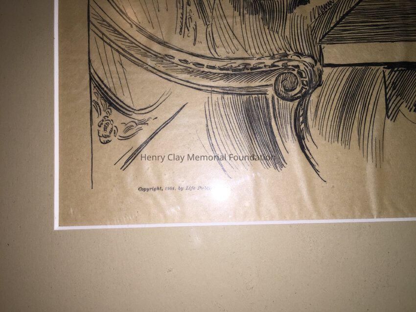 "Has she a Heart" (title?) Gibson girl printed depicting a man, cupid listening to a woman's heart. "Copyright 1901 by Life Publishing Co.", black and white.