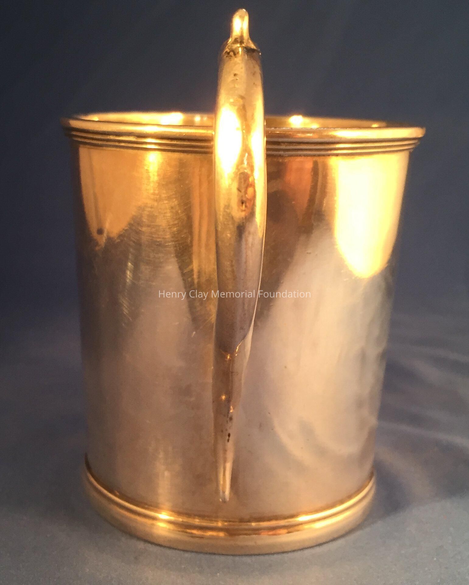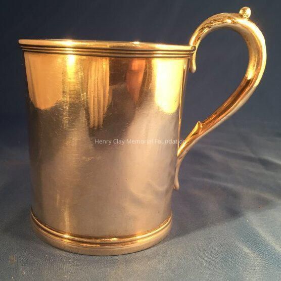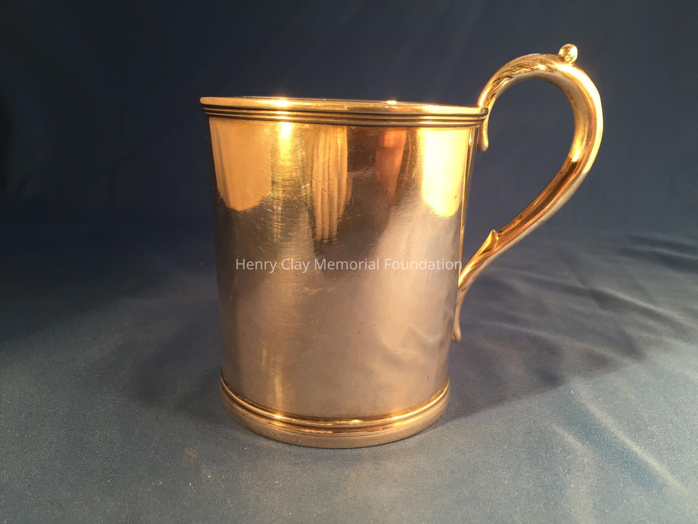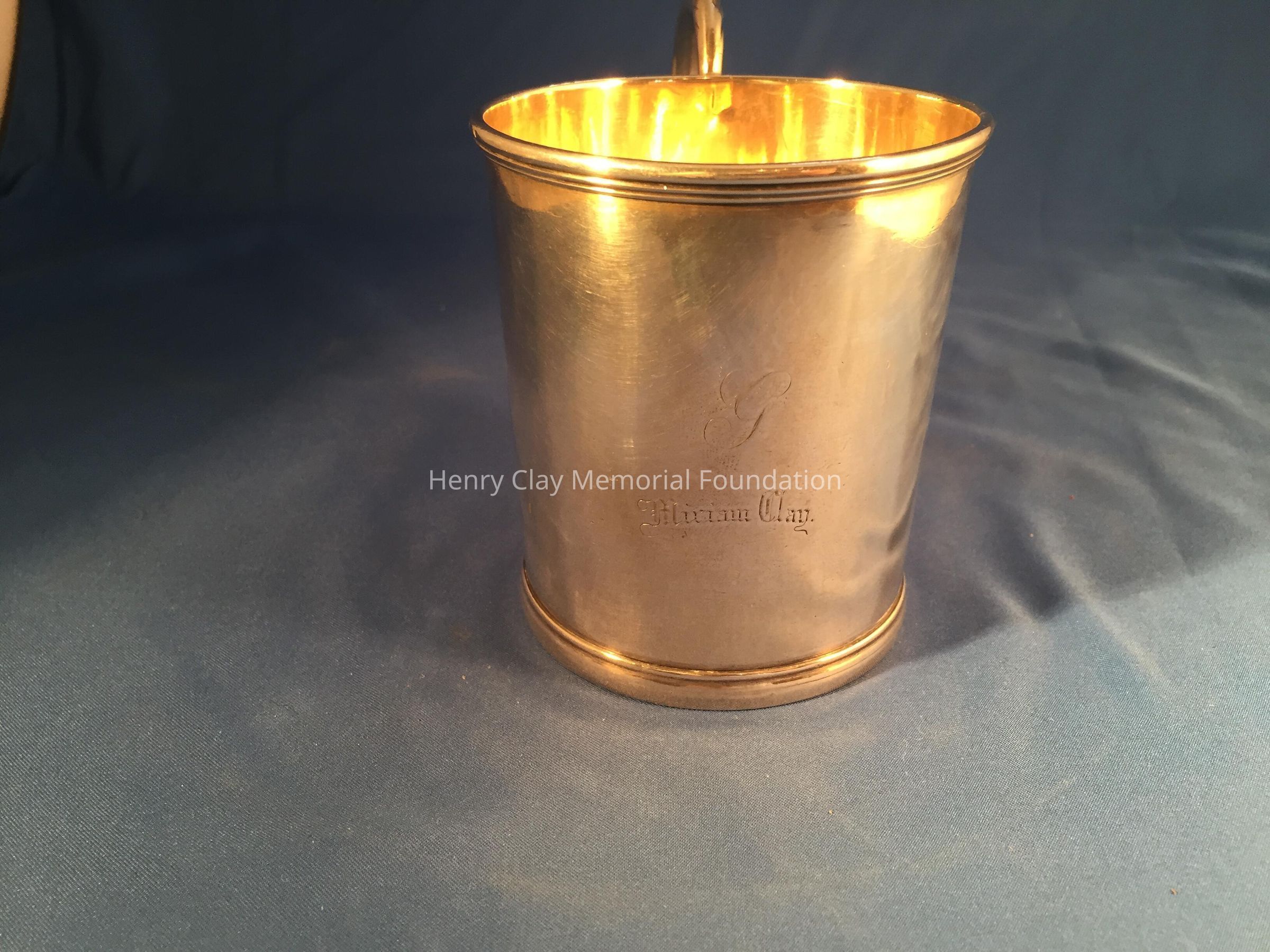 Coin silver mug, early 19th century, American coin silver, receded rim, handle with thumb stop, made by Asa Blanchard, Lexington, Kentucky, monogrammed "G," engraved "Miriam Clay."Dimensions