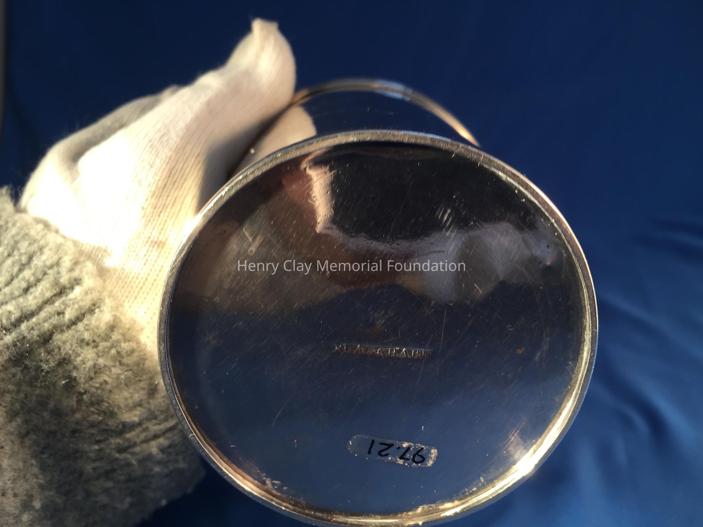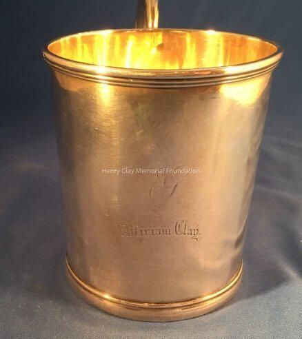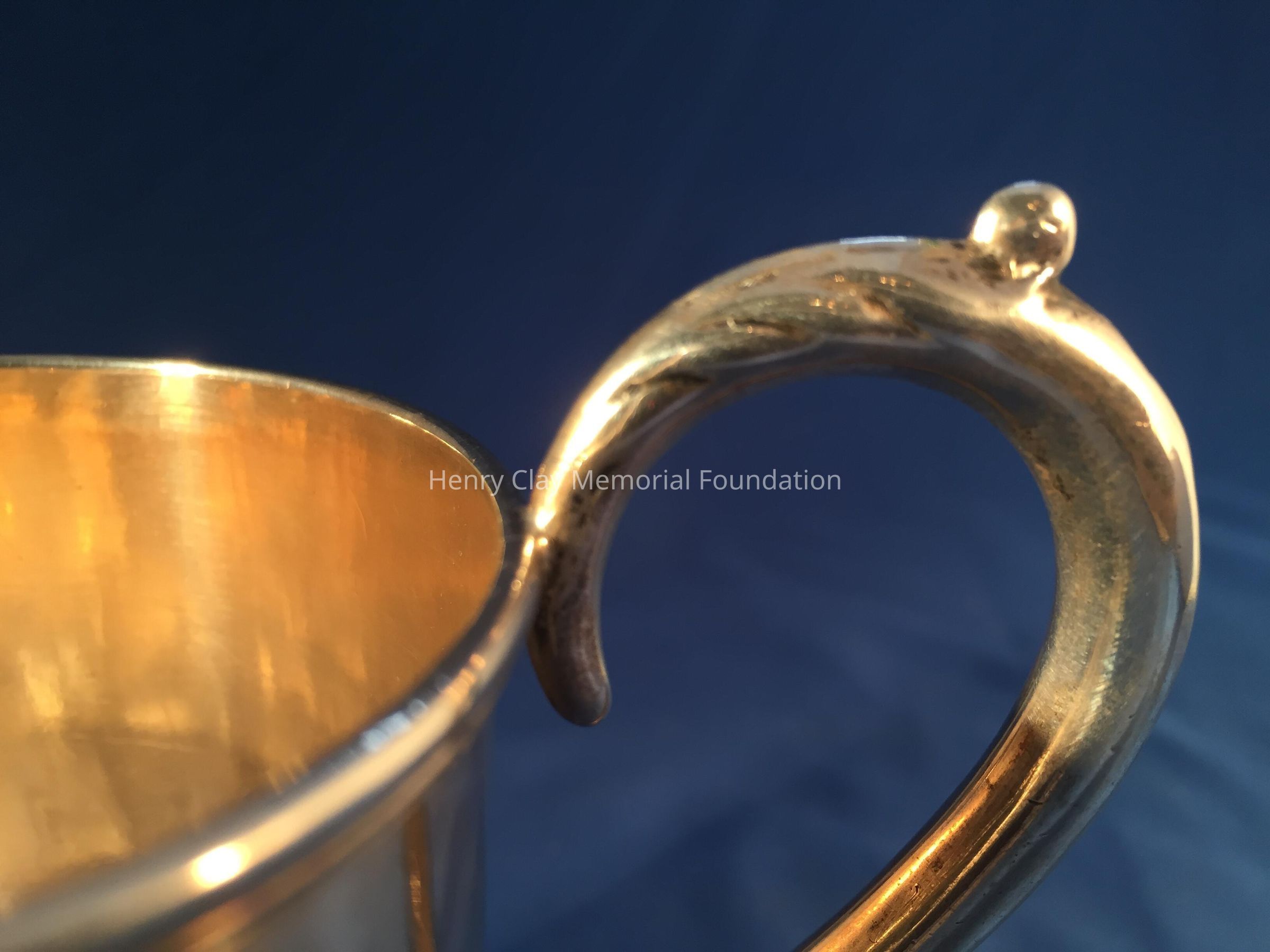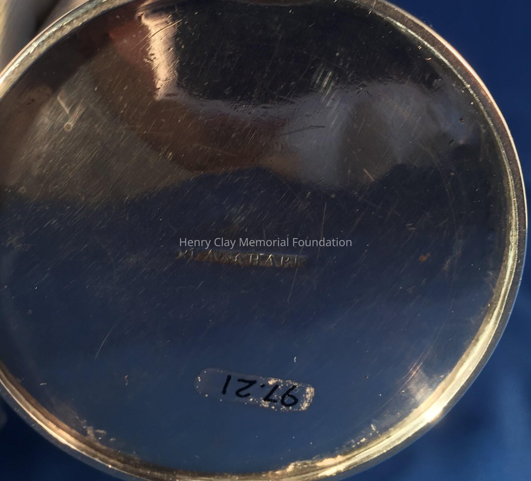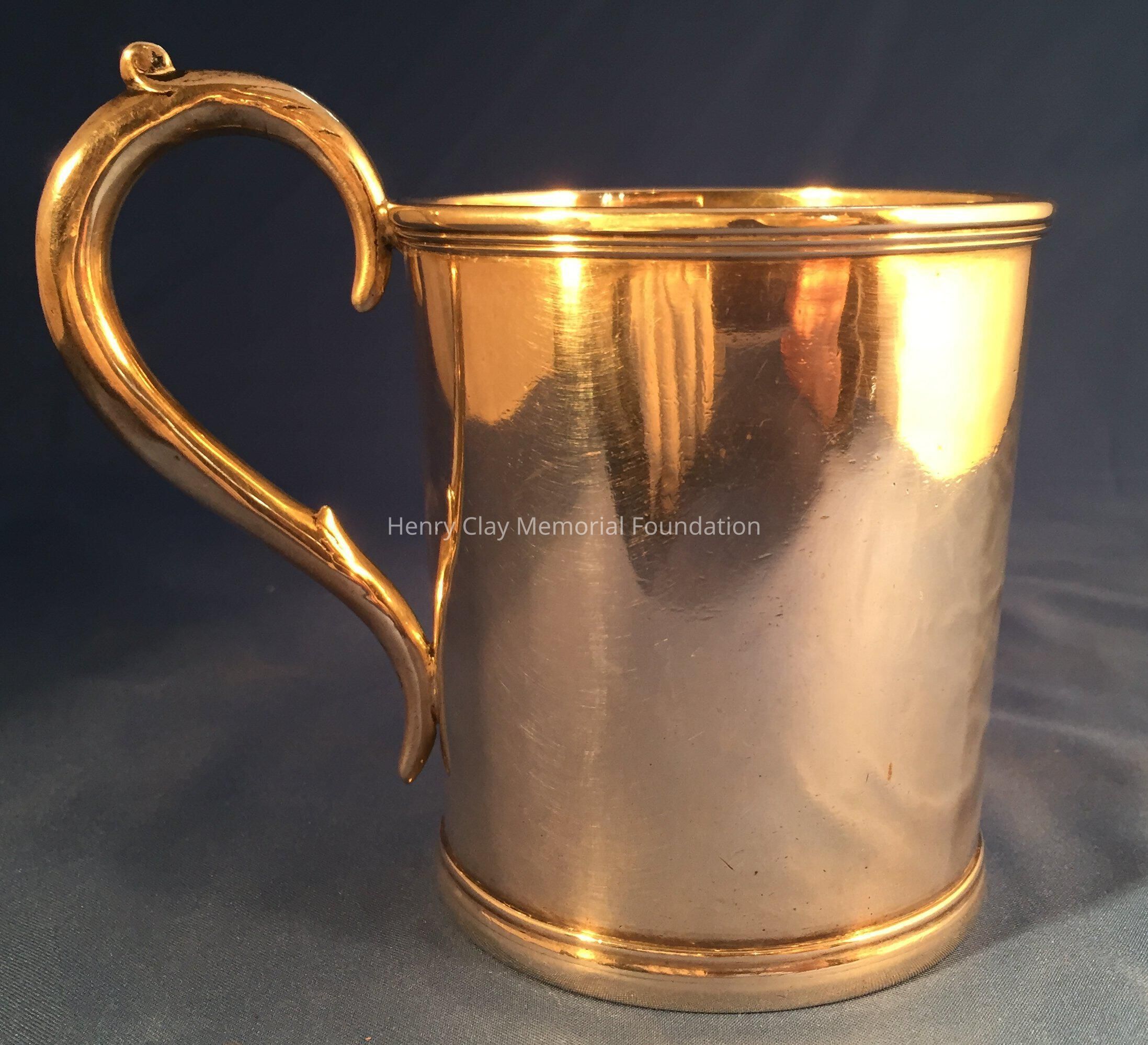 Coin silver mug, early 19th century, American coin silver, receded rim, handle with thumb stop, made by Asa Blanchard, Lexington, Kentucky, monogrammed "G," engraved "Miriam Clay."Dimensions