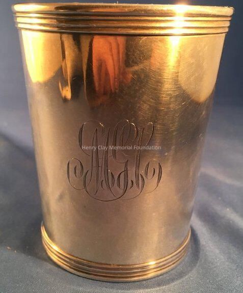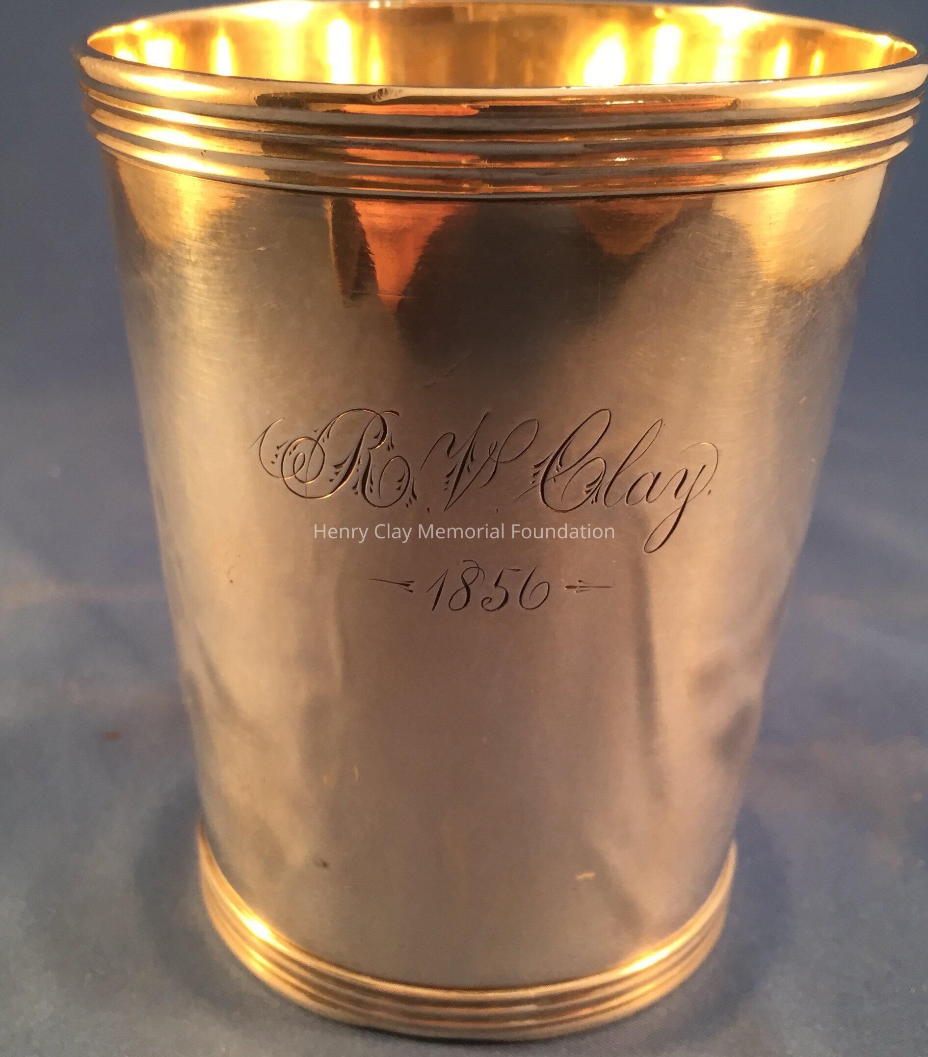 Mint julep cup, mid-19th century, American. Coin silver, reeded rim and base, made by E.C. Garner, monogrammed "MGC" and engraved "R.V. Clay 1856."