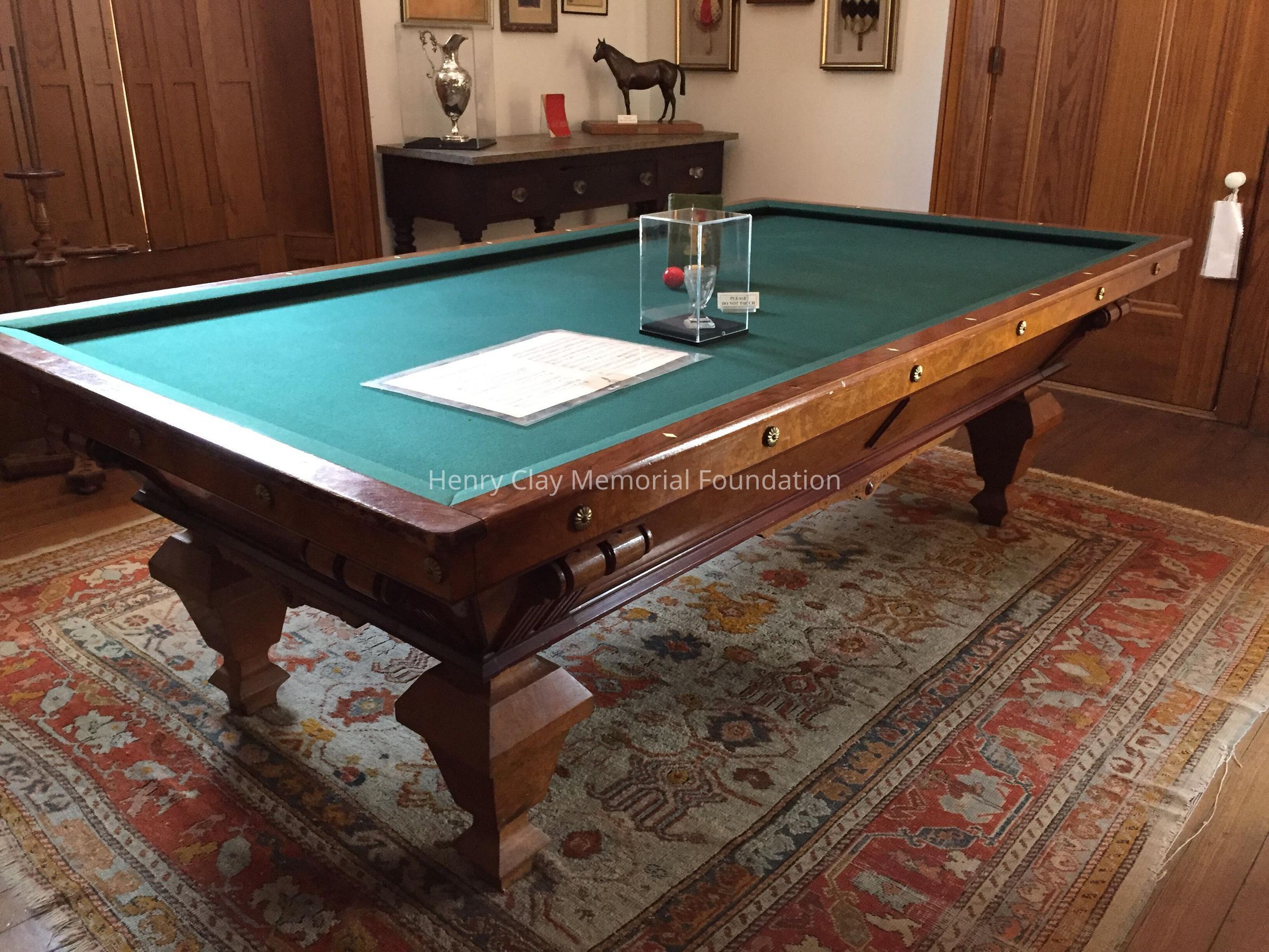 Oak with rosewood-banded top and inlaid with mother of pearl diamond-shaped pieces. Labeled "H.W. Collender, New York."Dimensions