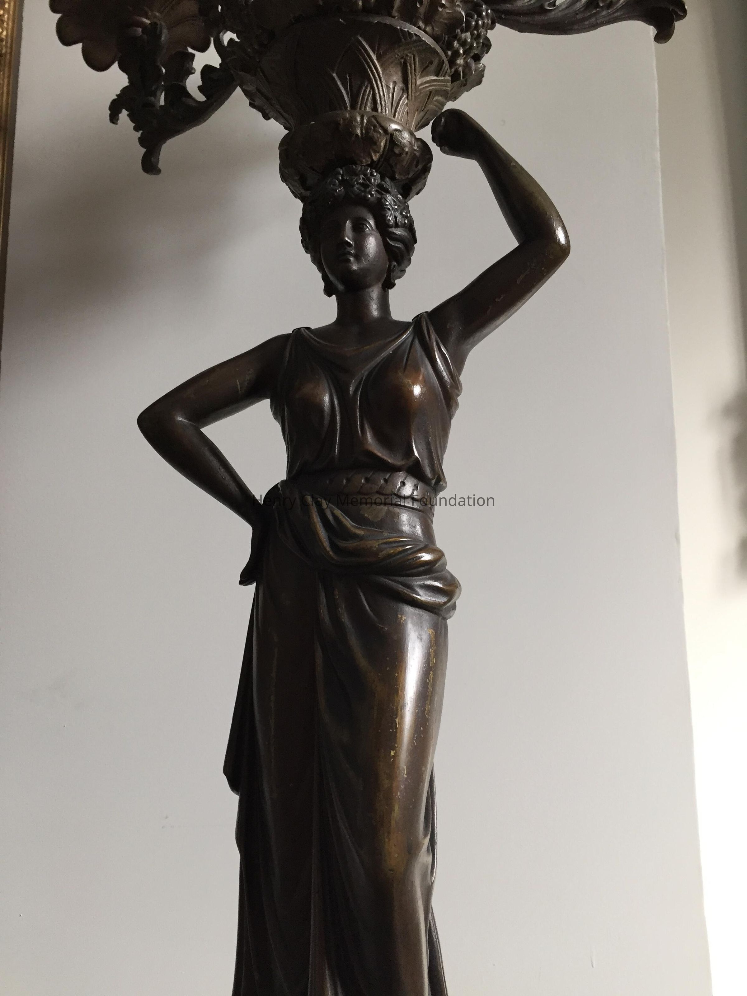 Bronze, classical figure of a woman holding 7 branch light