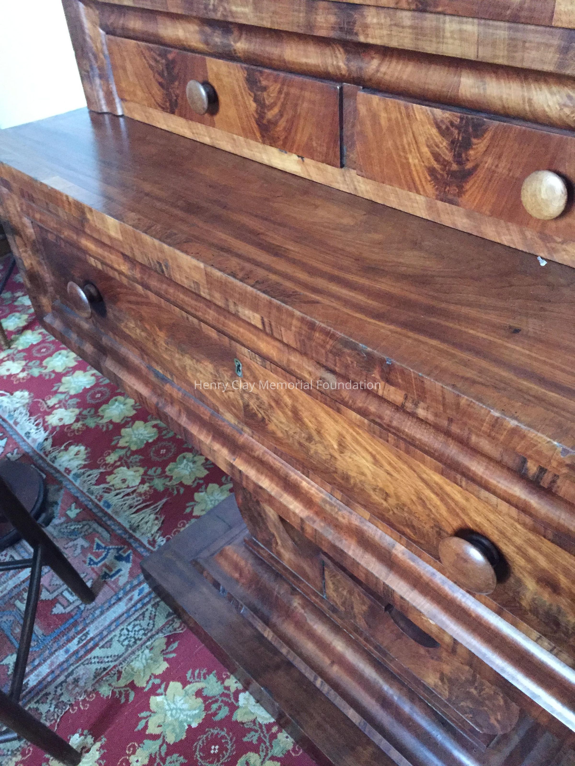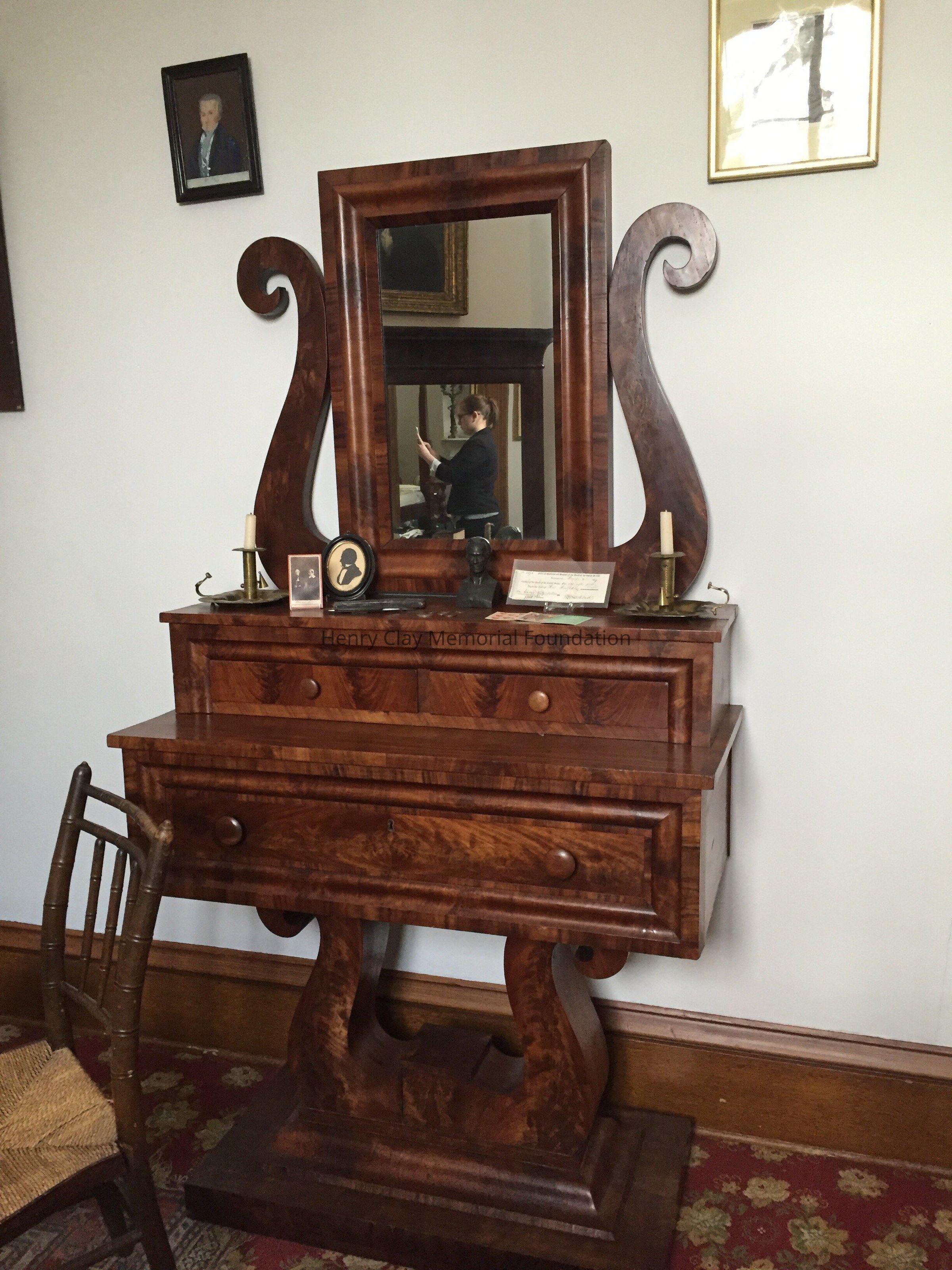 American late classical mahogany dressing table, c. 1840. Ogee framed mirror on scrolled supports. Two short recessed drawers above one long drawer, stylized lyre-form supports, plinth base. Maker unknown.Dimensions