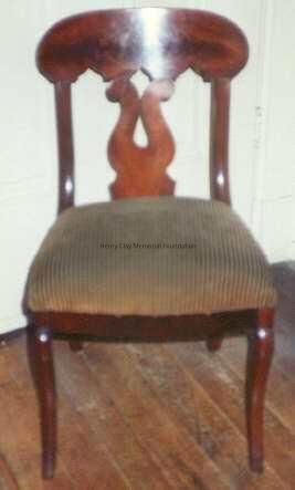 Mahogany late classical style lyre back chair with ribbed velvet seat. On the back of the front seat rail, written upside down, in pencil, "Bullock," ca. 1840.Dimensions
