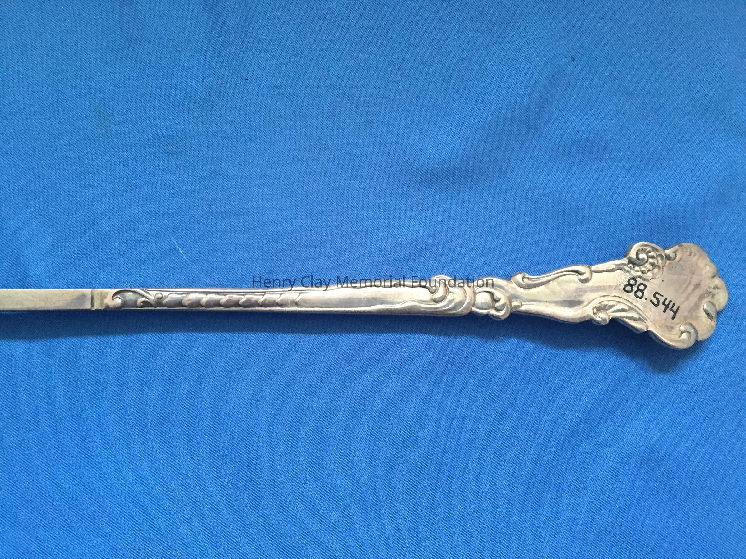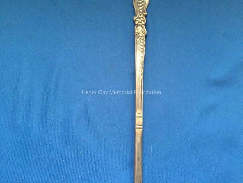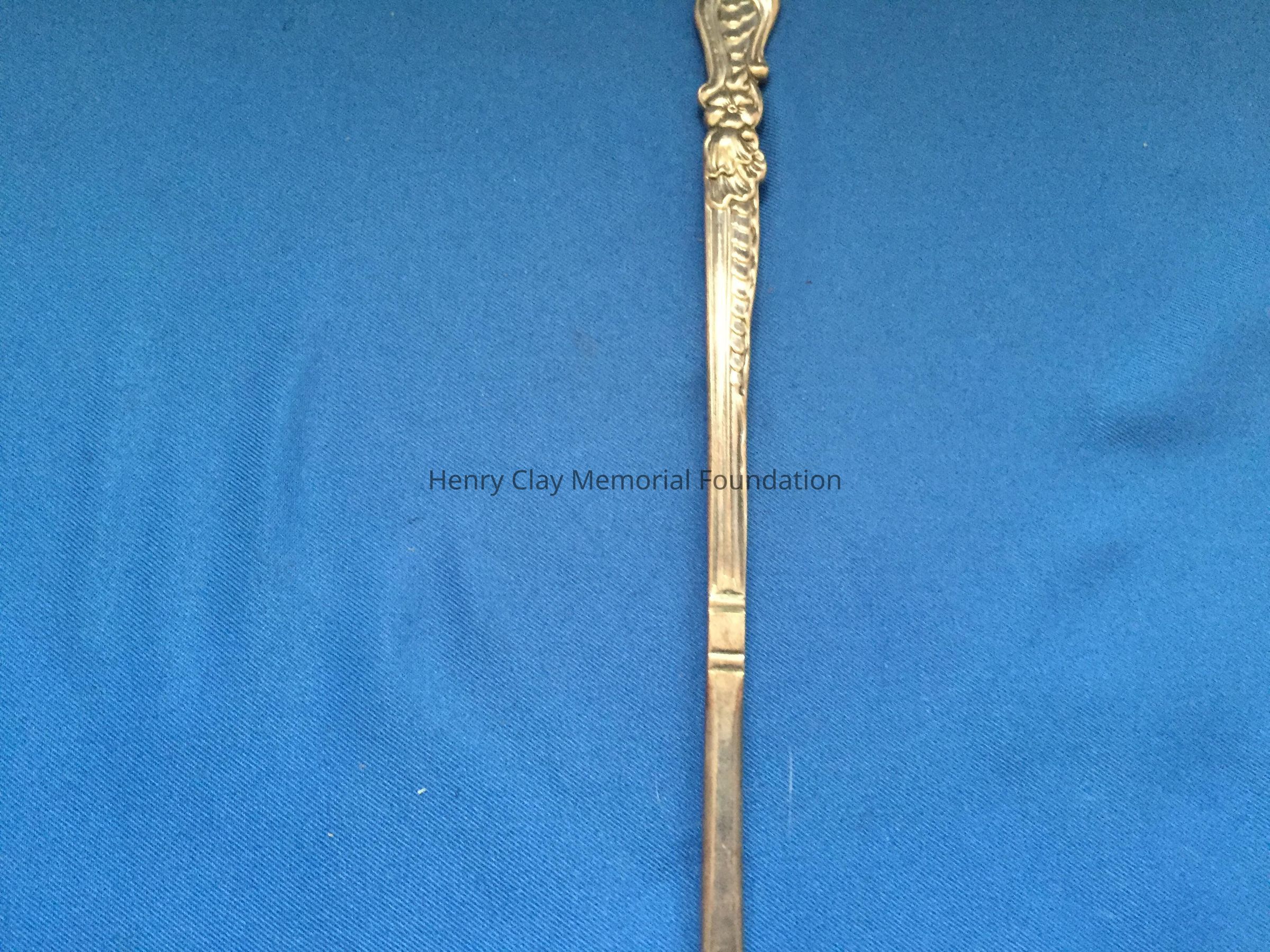 Long, 3-pronged fork with tines bent slightly upward from the pierced bowl. Hallmarks on back of handle.