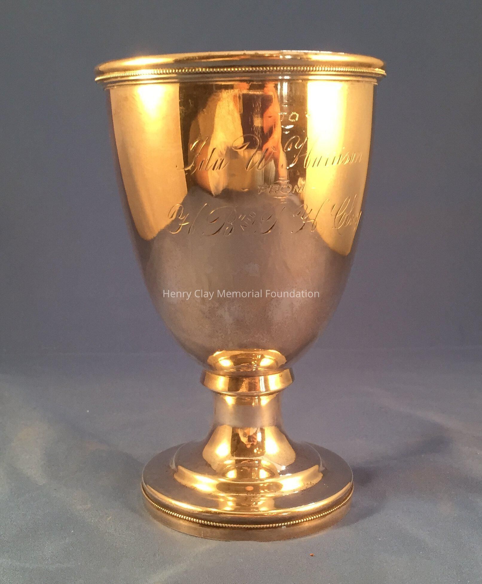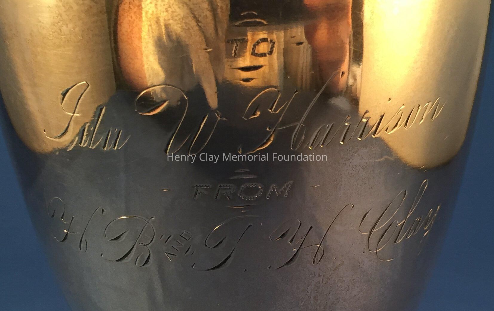Silver cup, footed, engraved: "To Ida W. Harrison from H.B. & T.H. Clay [Harry Boyle & Thomas Hart Clay Jr.]"