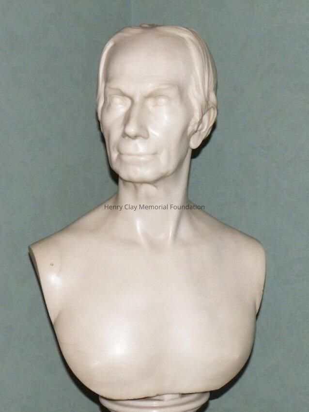 White marble bust of Henry Clay.