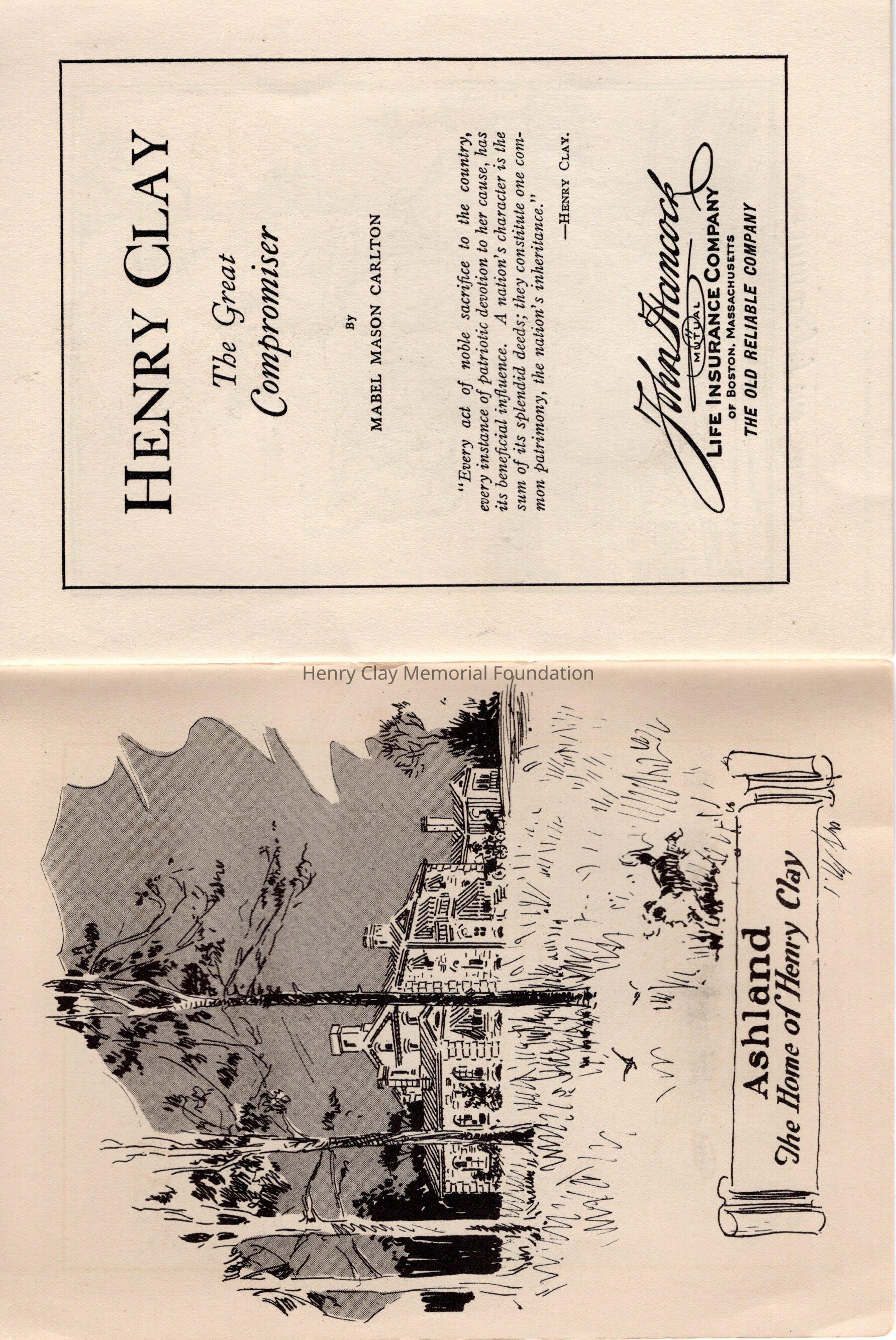 Brief biographical booklet on the life of Henry Clay