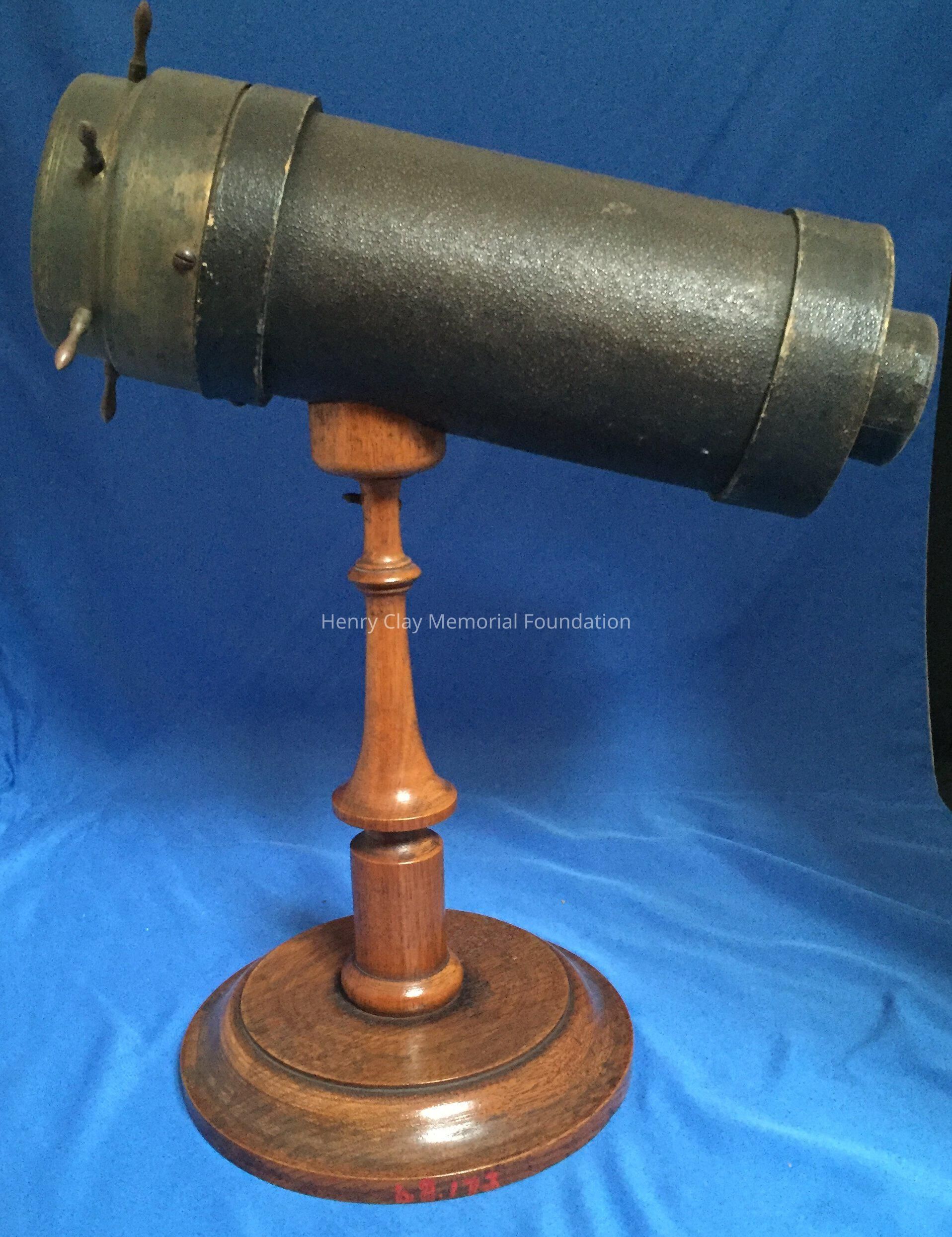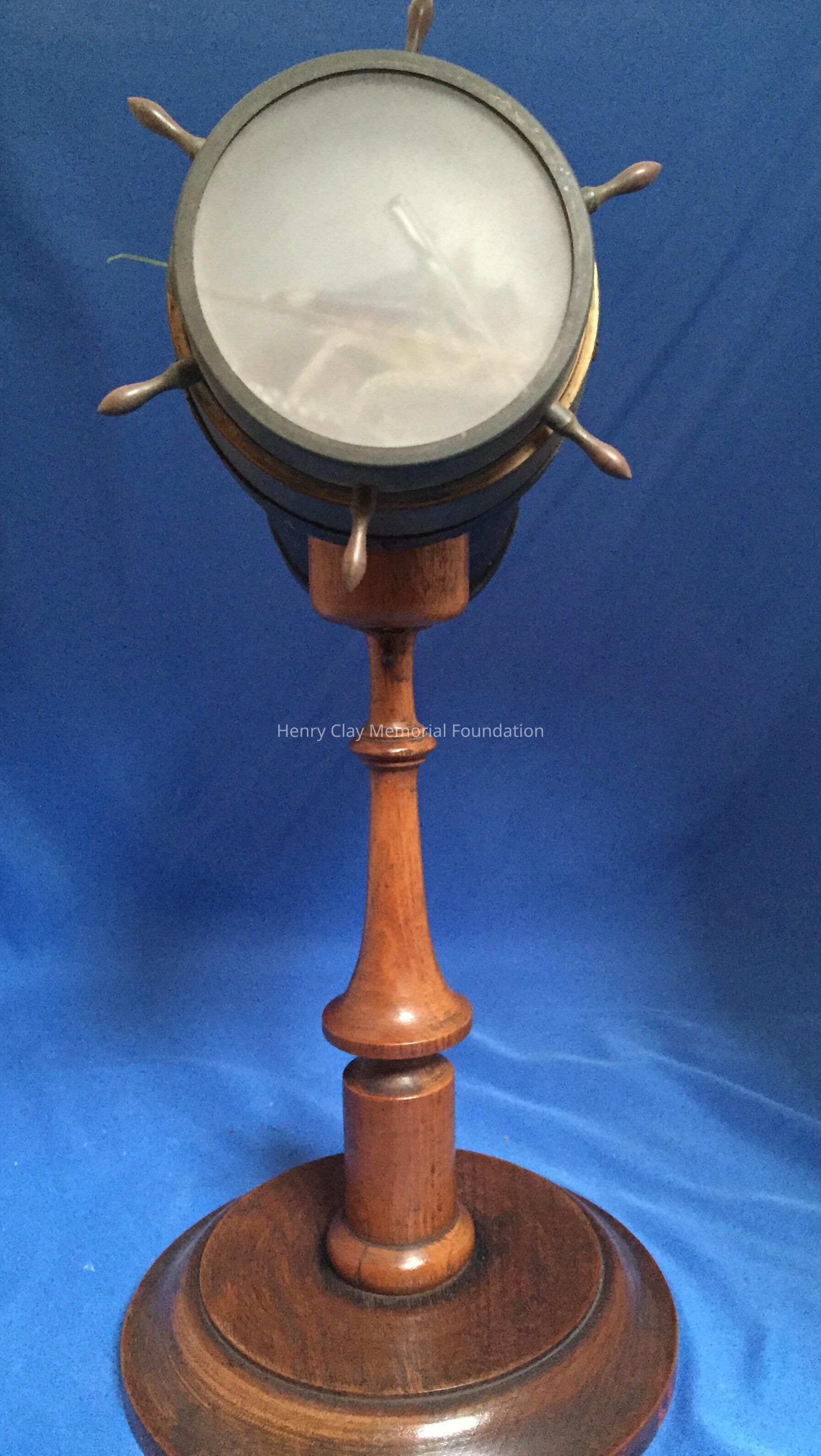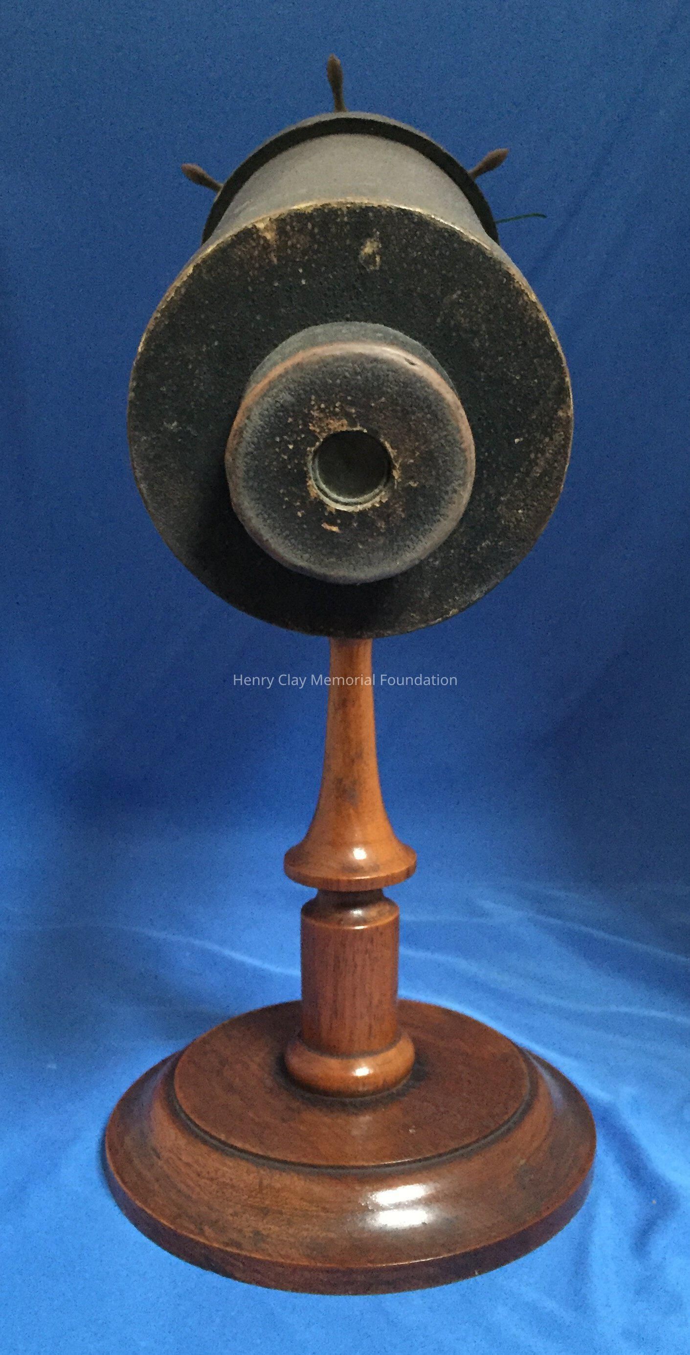 Leather covered with brass trim, mounted on cherry base. Manufacturer's stamp, "C.G. Bush & Co. / Inventors & MNF [D or R] / Prov R.I."