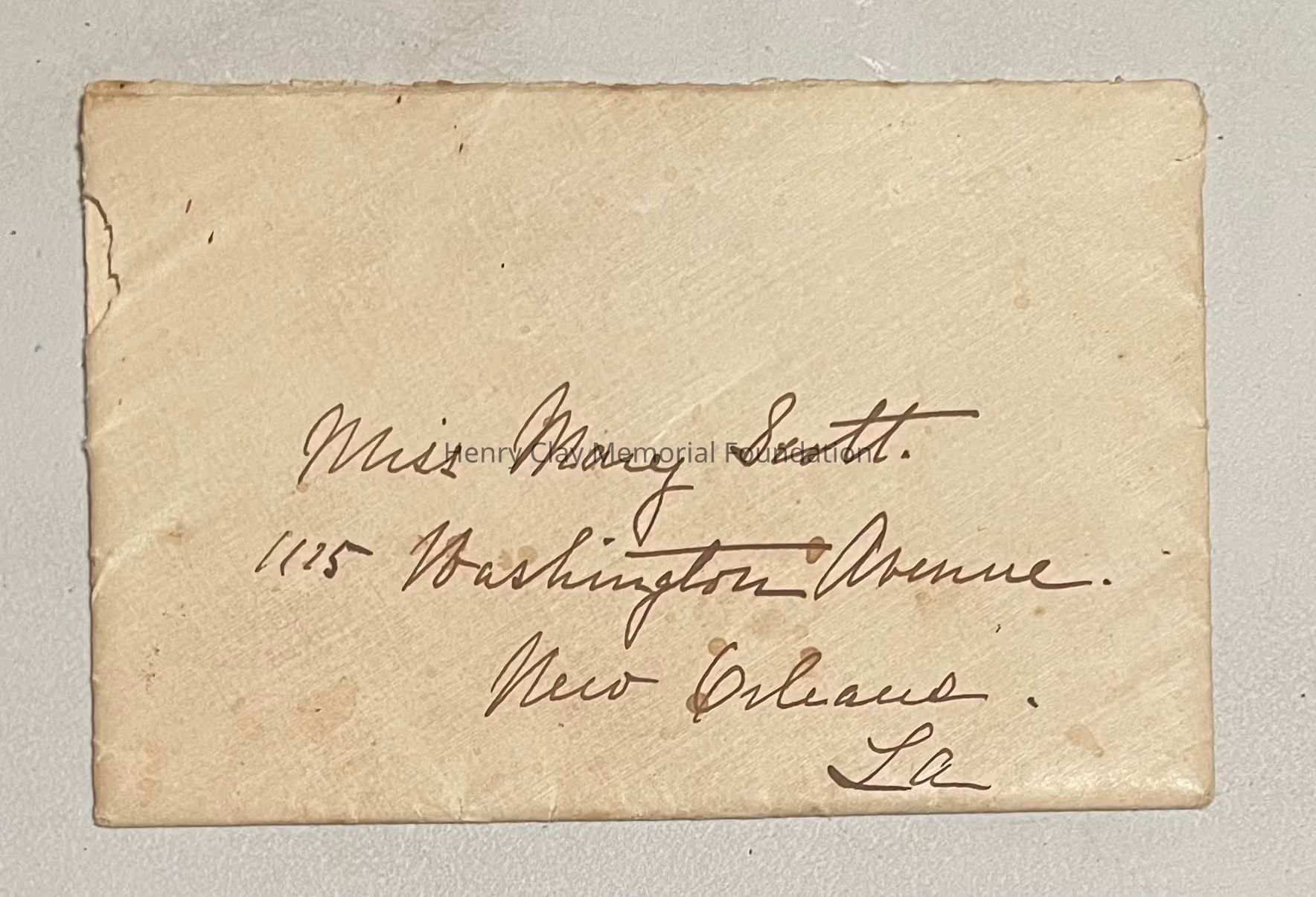a two-page letter with writing on both sides of both pages, and an envelope addressed to Miss Mary Scott.