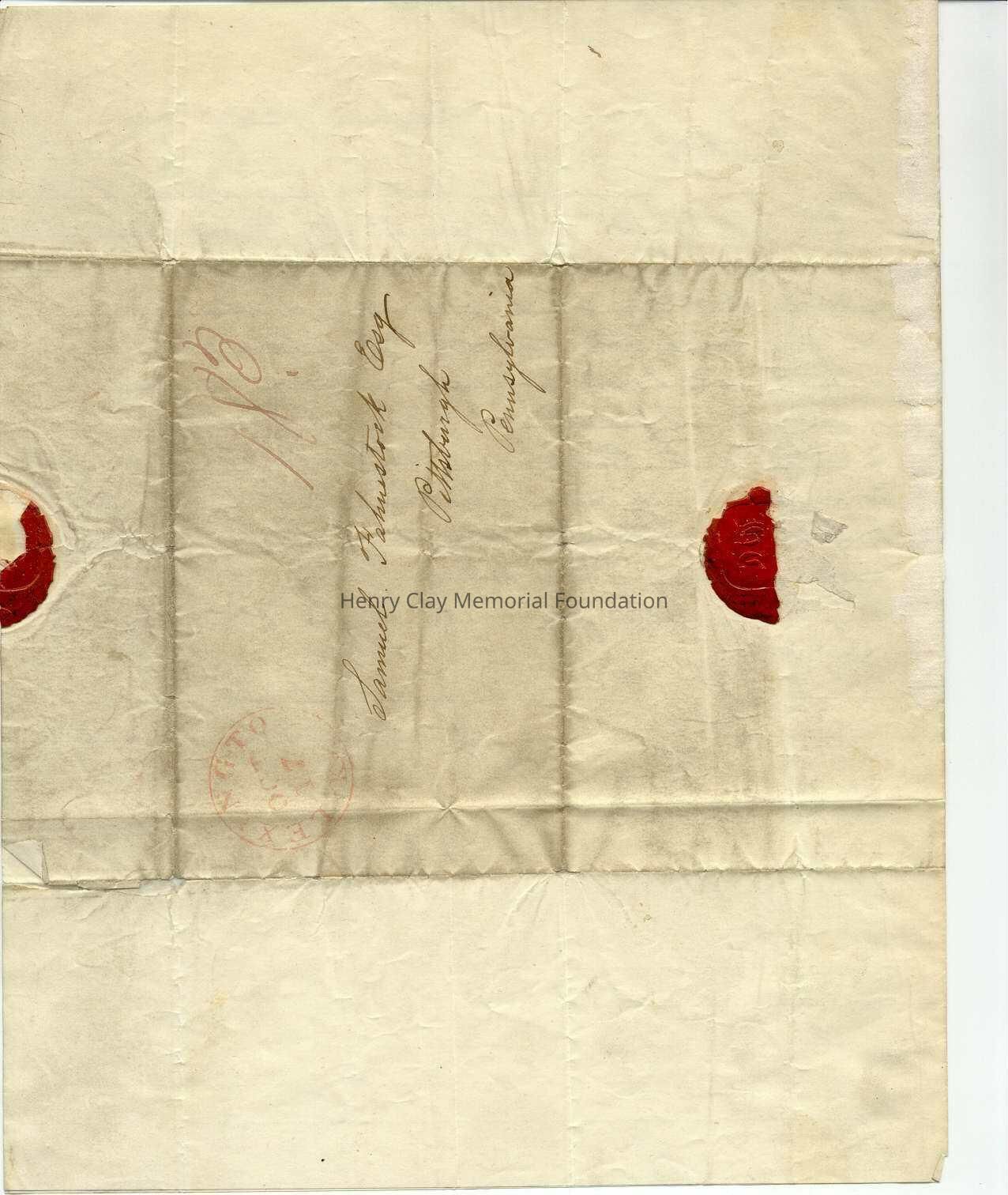 Letter from Henry Clay to Samuel Fahnestock, Esq.