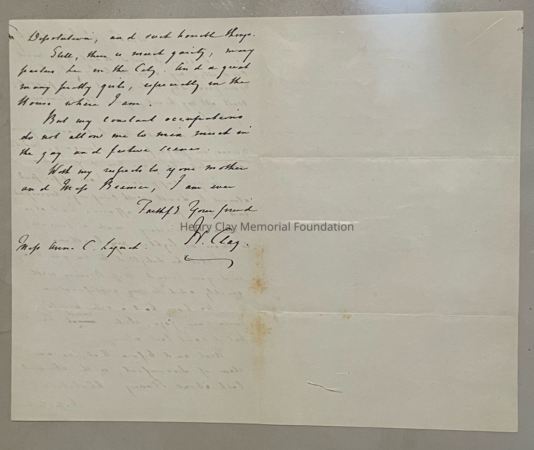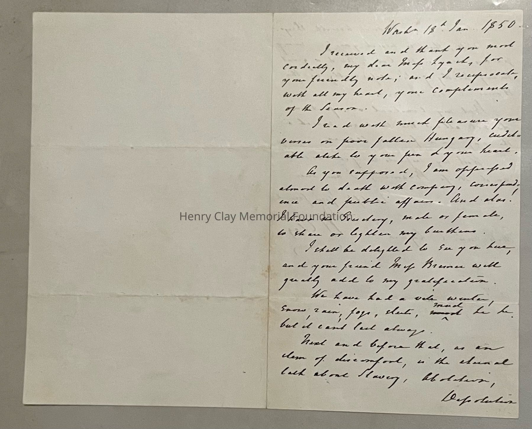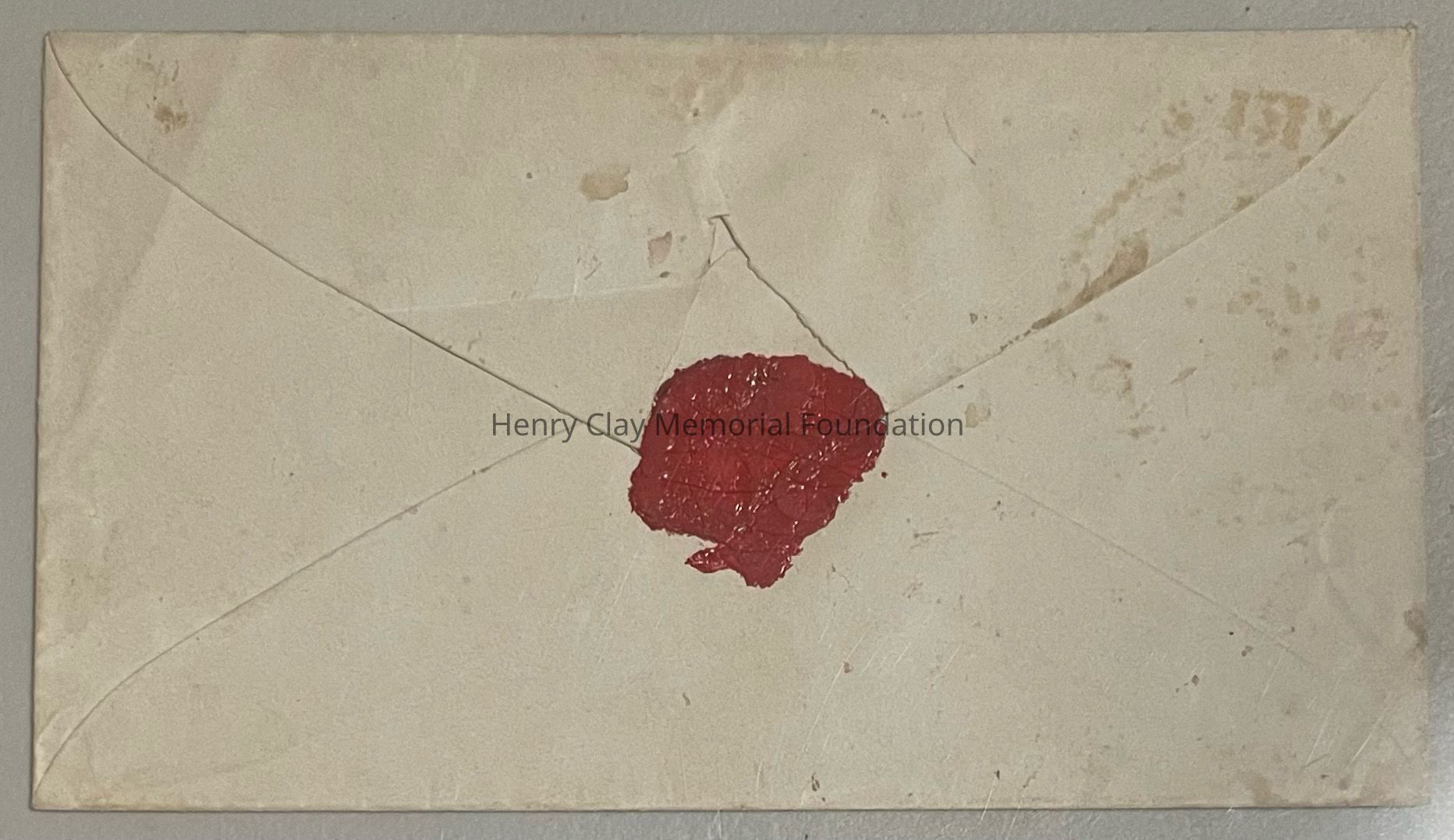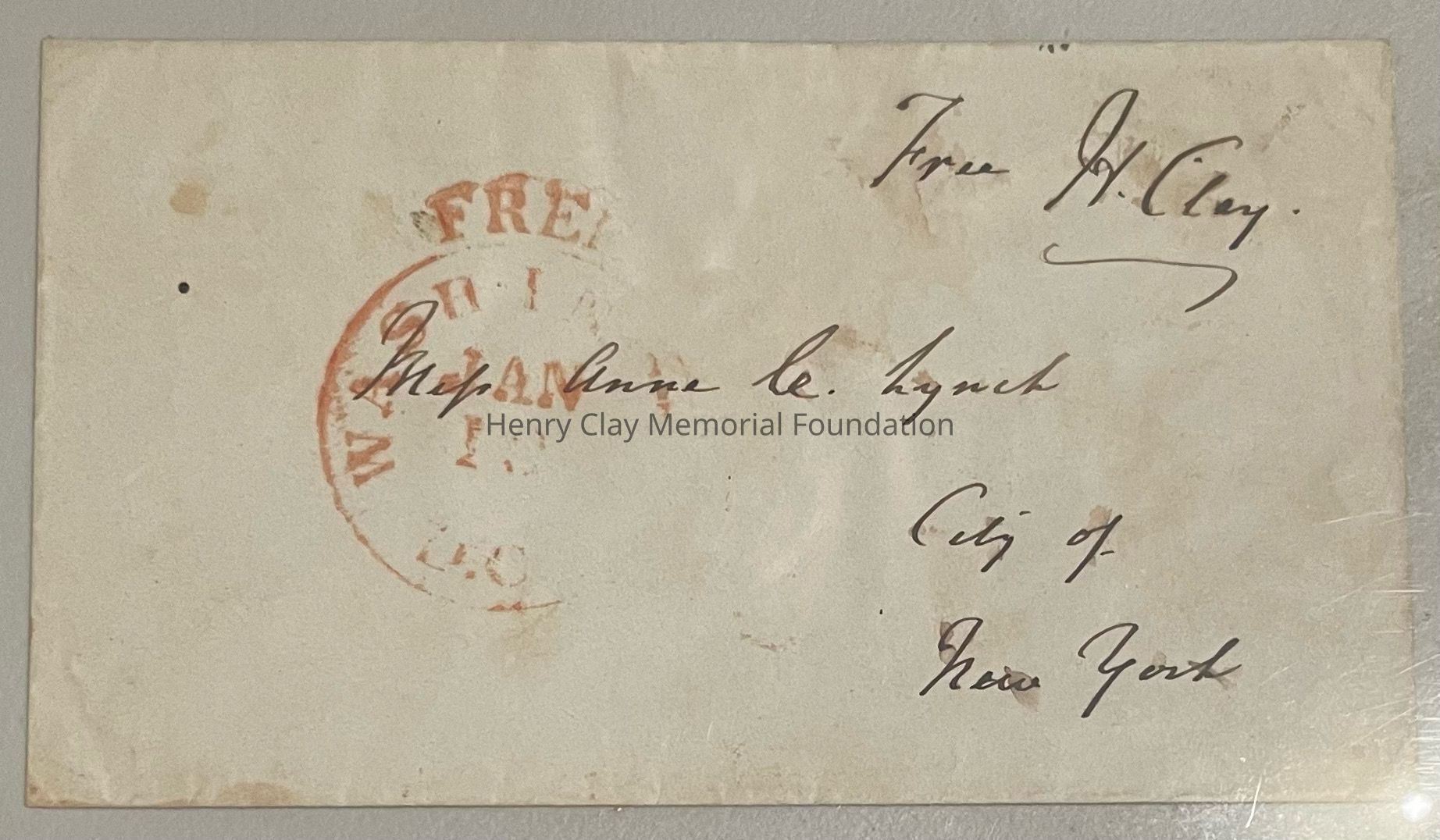 A letter sent from Henry Clay to Anna Lynch, dated January 18, 1850, and the envelope it was sent in, which has a wax seal