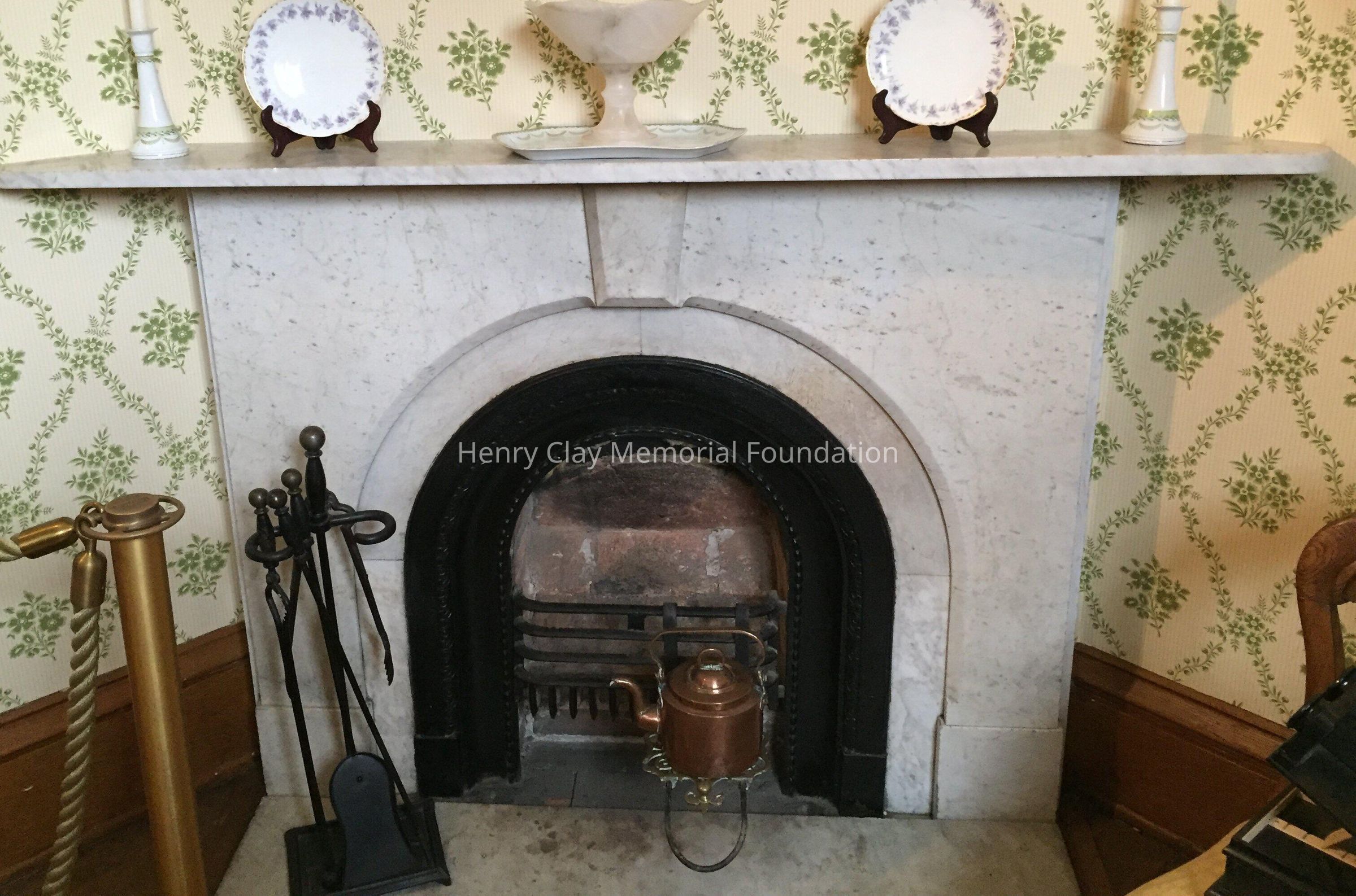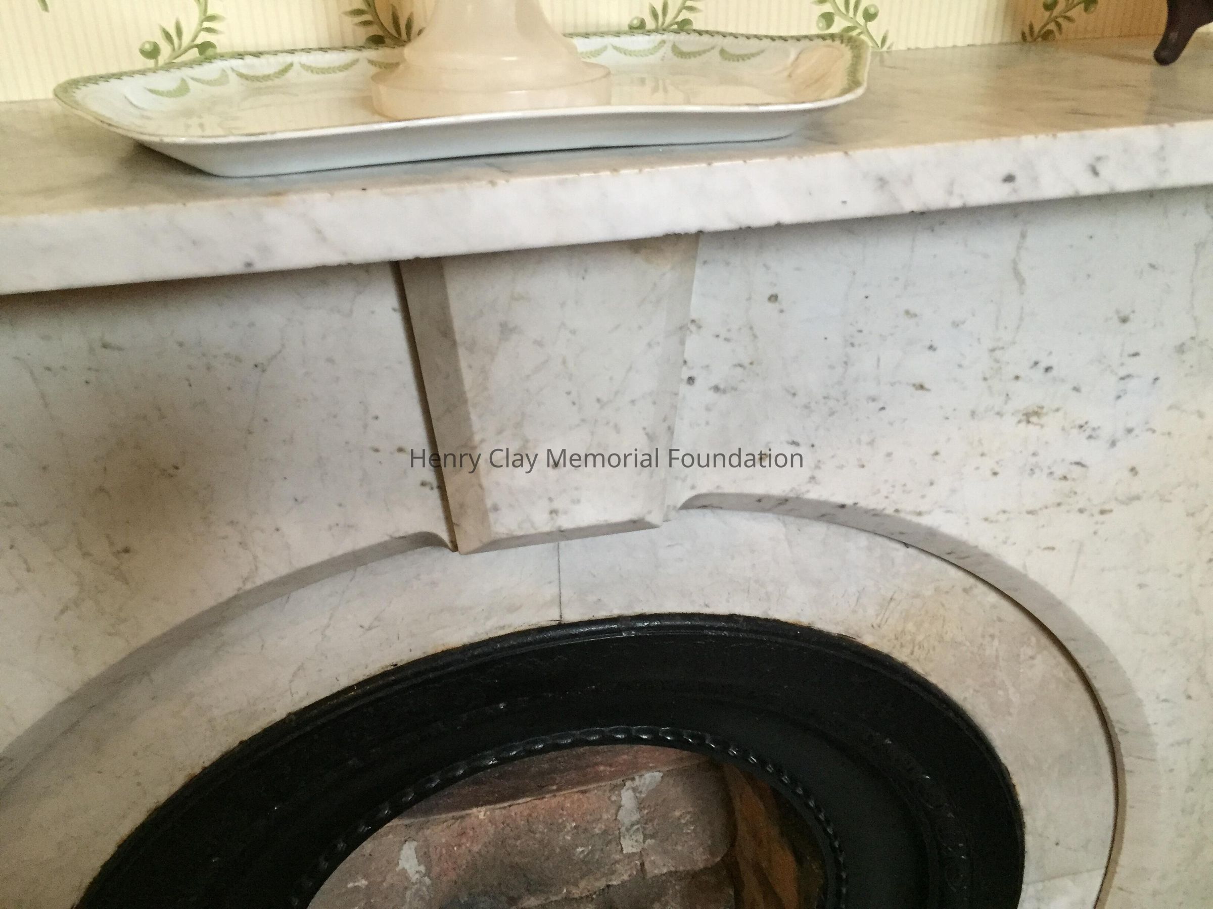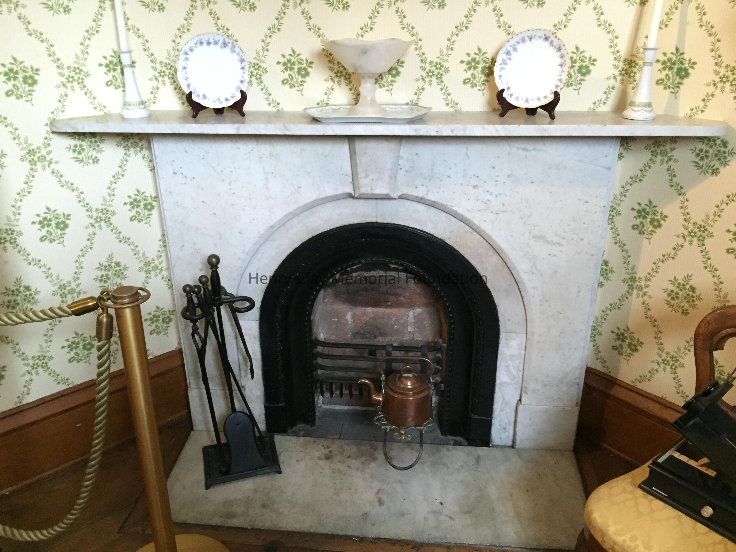 Marble with cast iron firebox surround.