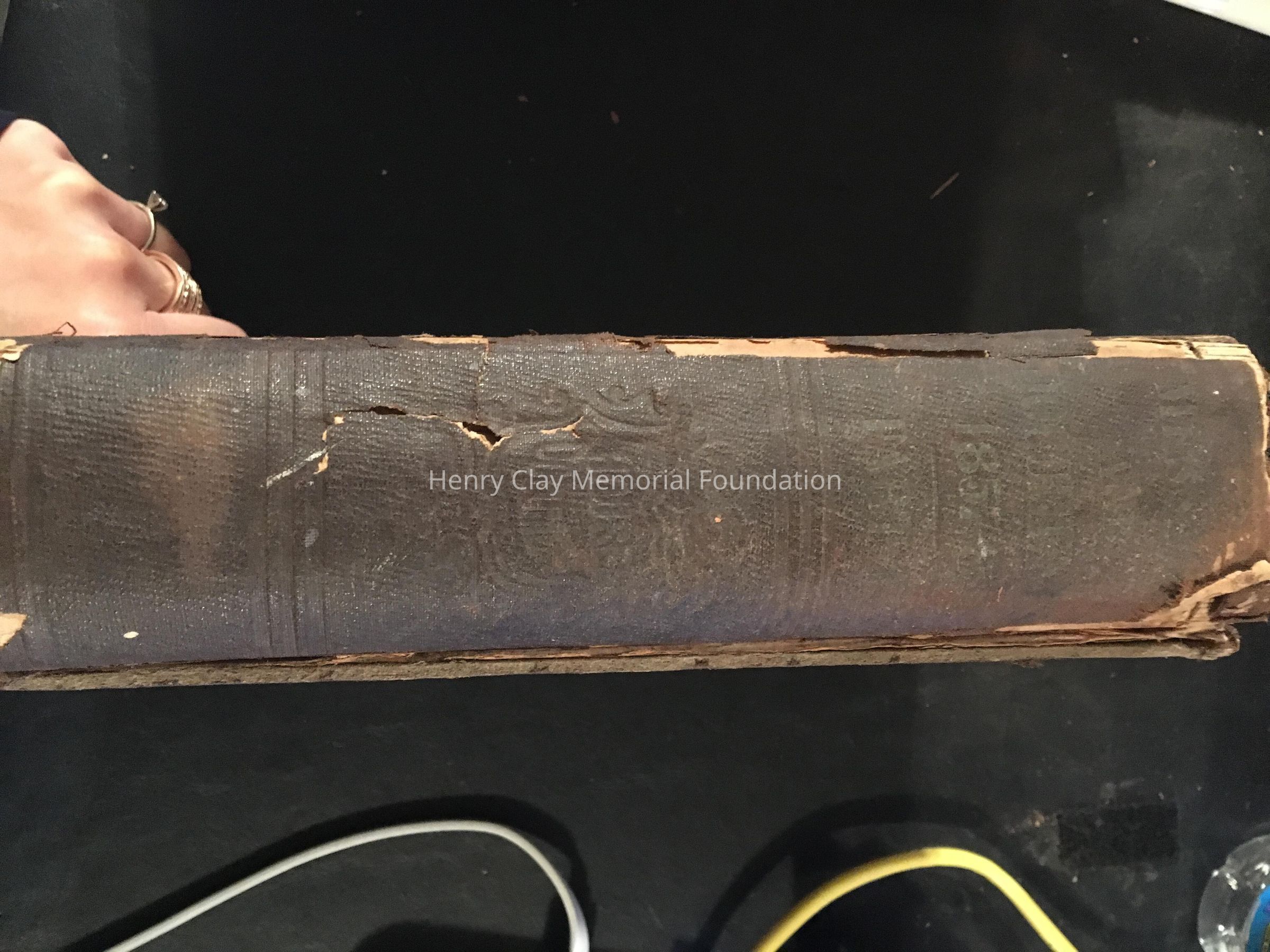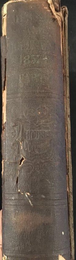 Big, hardcover, cloth. Bluish. The cover is coming off from the top.