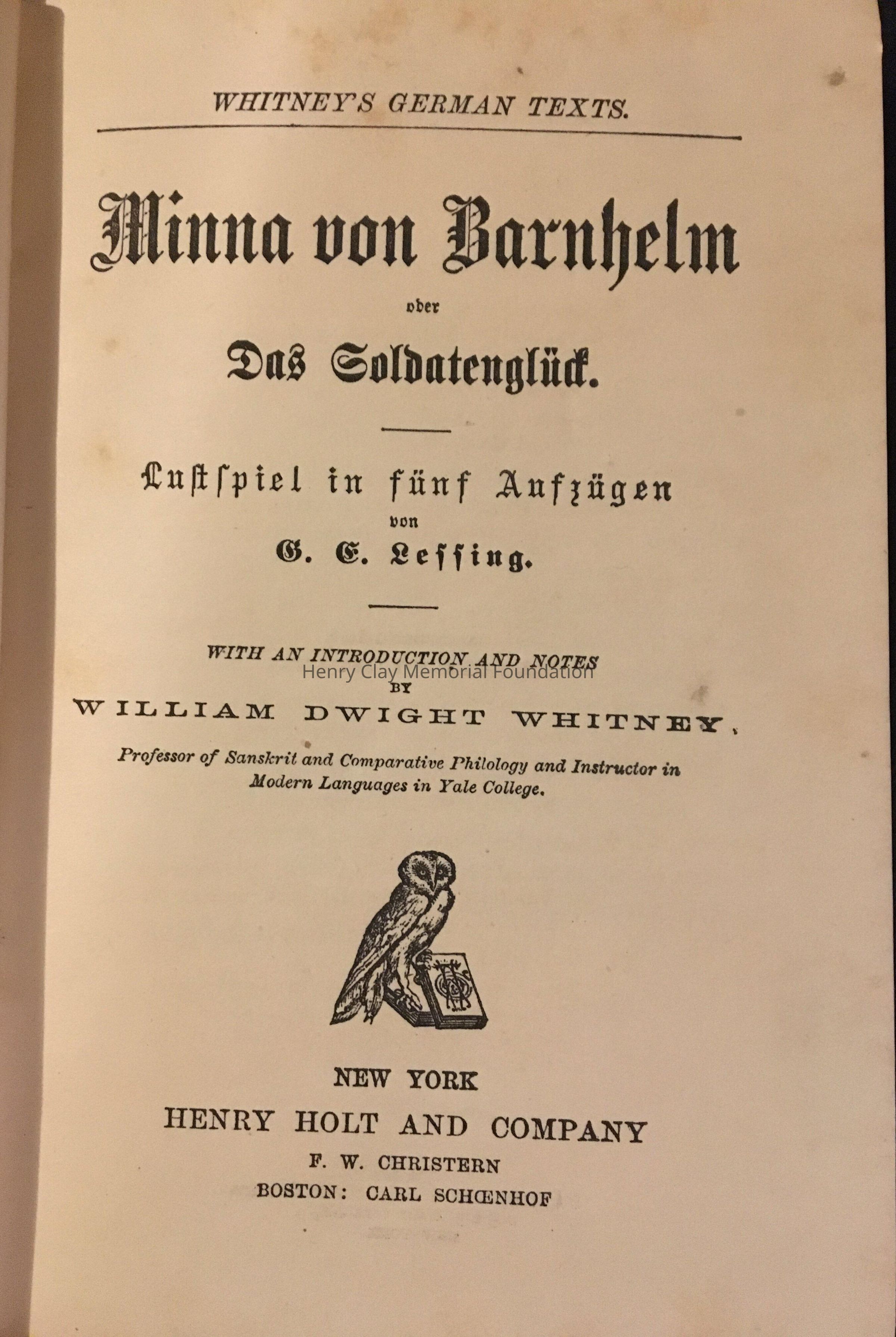 A texbook from Whitney's German Text Small booklet in greenish/grey with black writings.