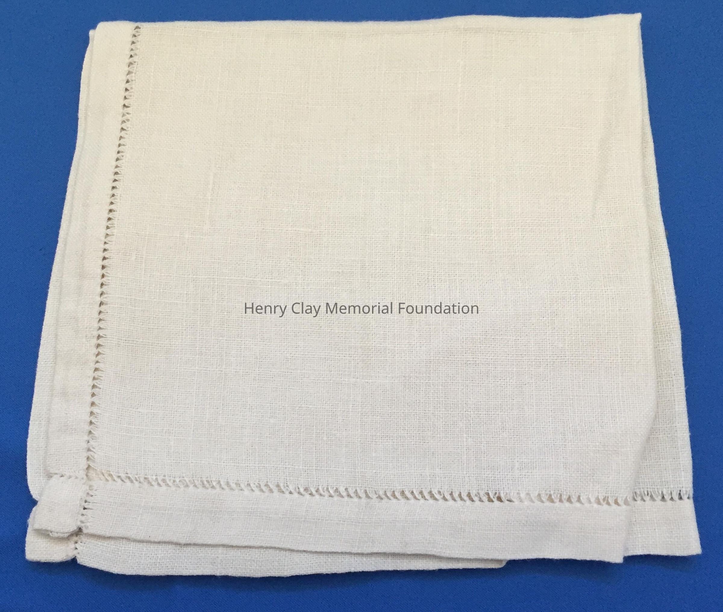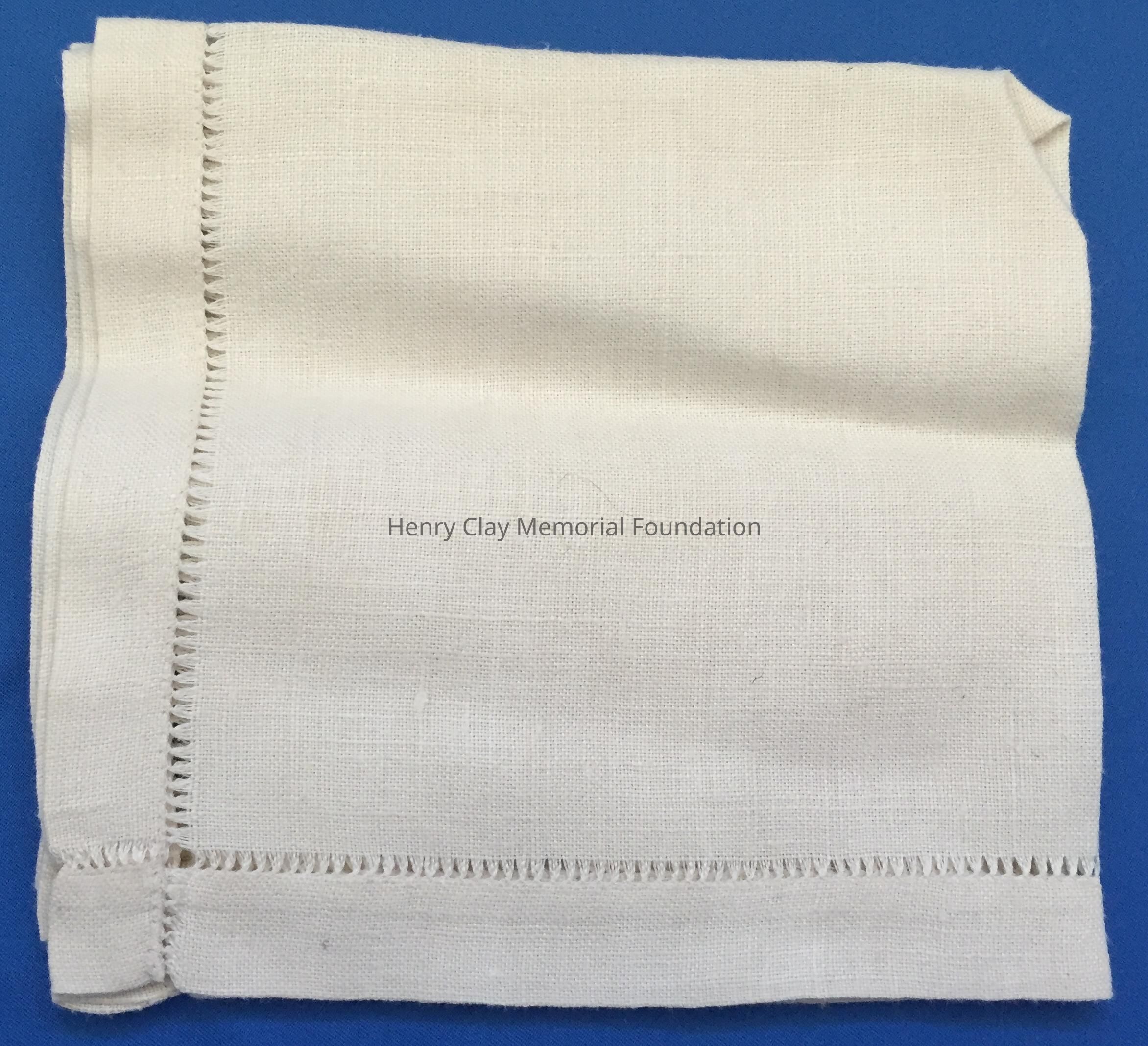 Pair of off-white square napkins with a faggoting stitch open areas at criss-cross at each corner.