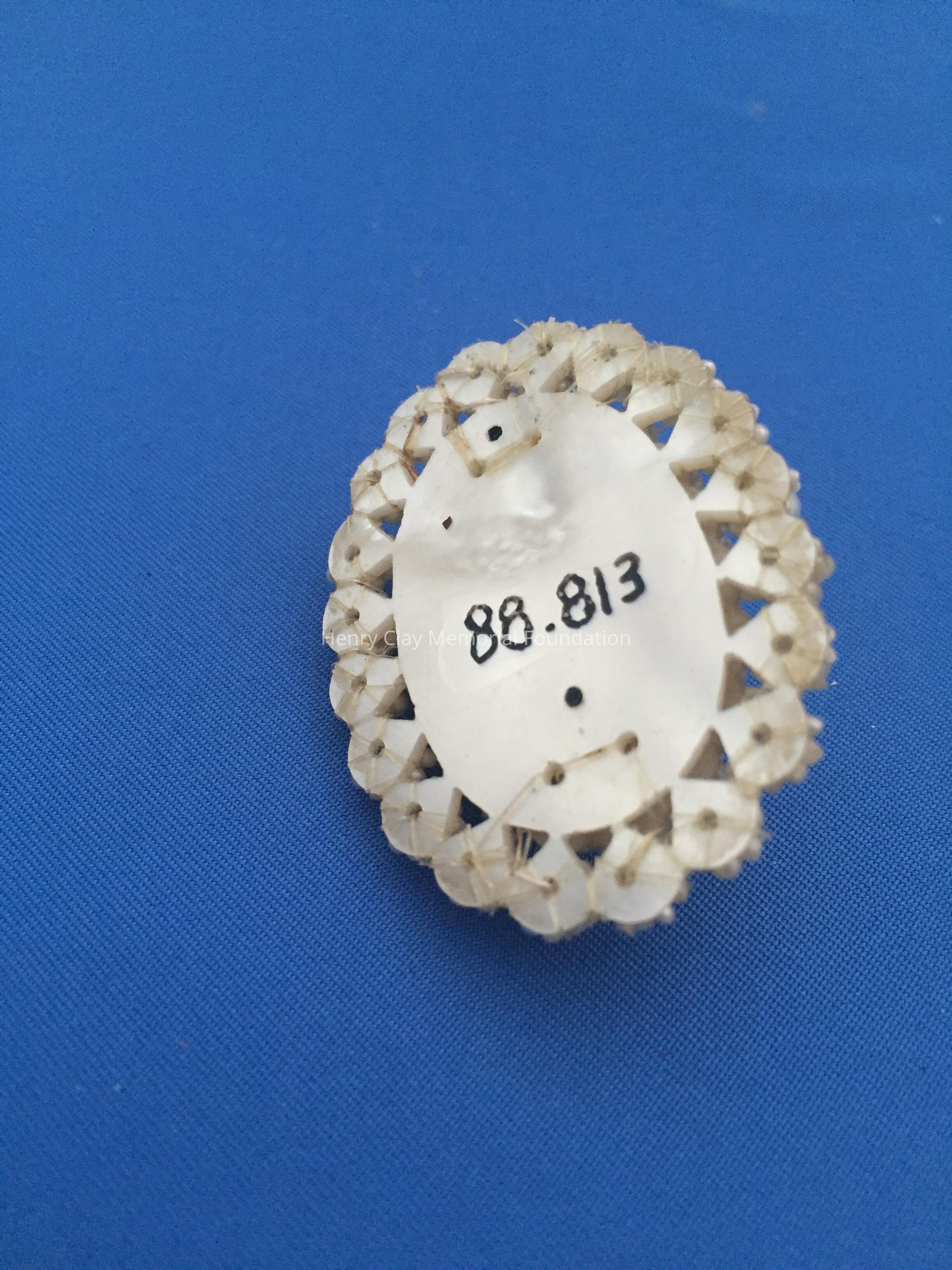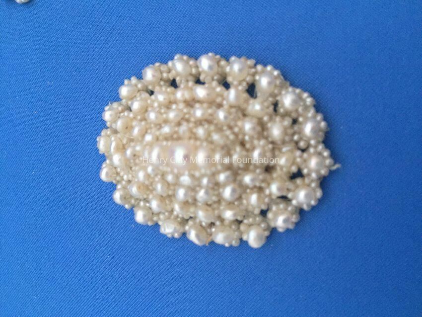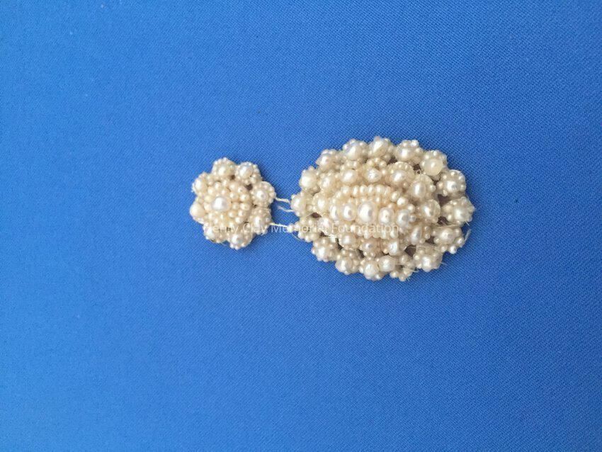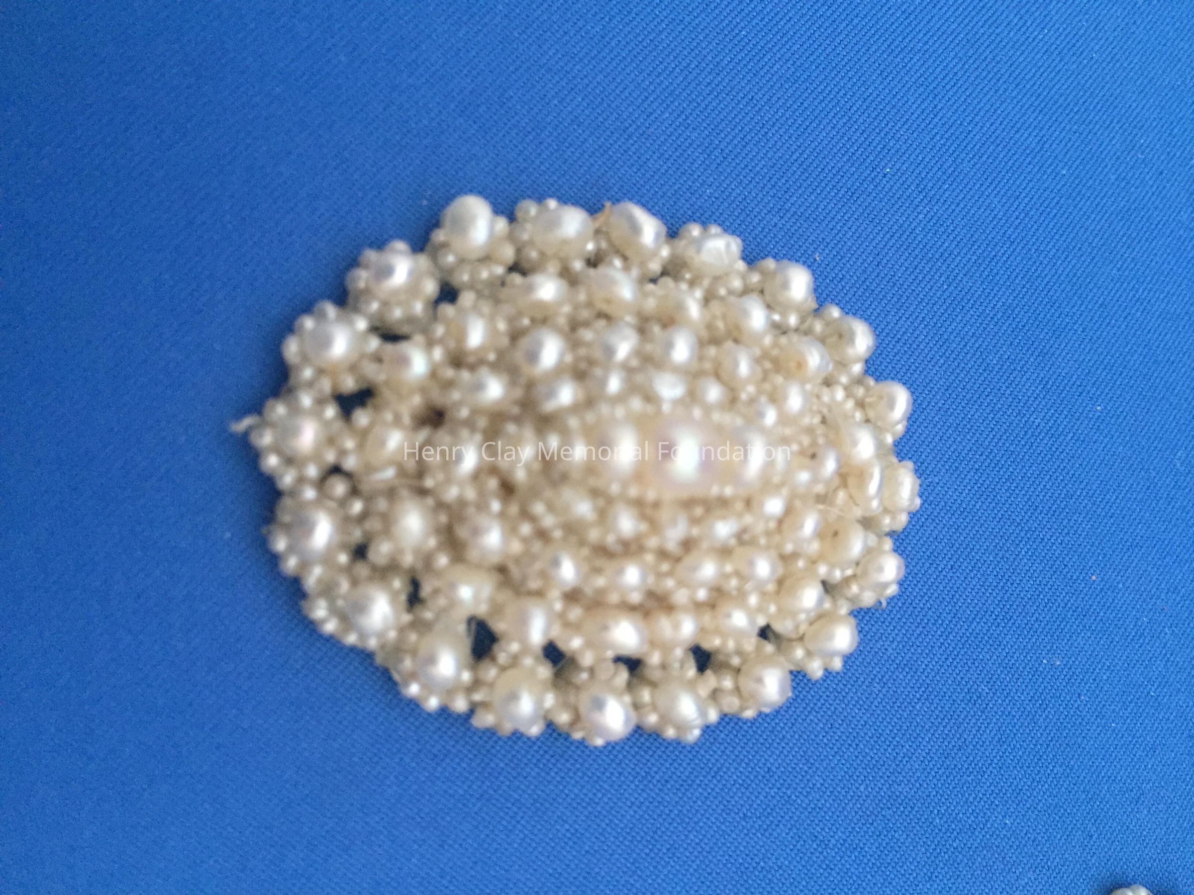 Approximately 13.25" long with 7 clusters of pearls on a string of pearls with a gold clasp.