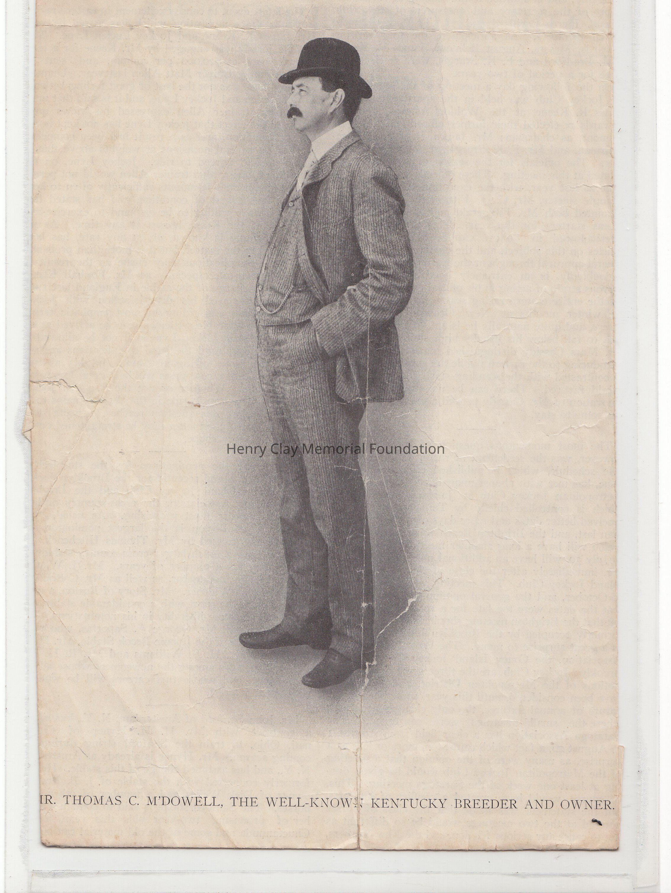 Underneath " Mr. Thomas McDowell, The Well Known Kentucky Breeder and owner