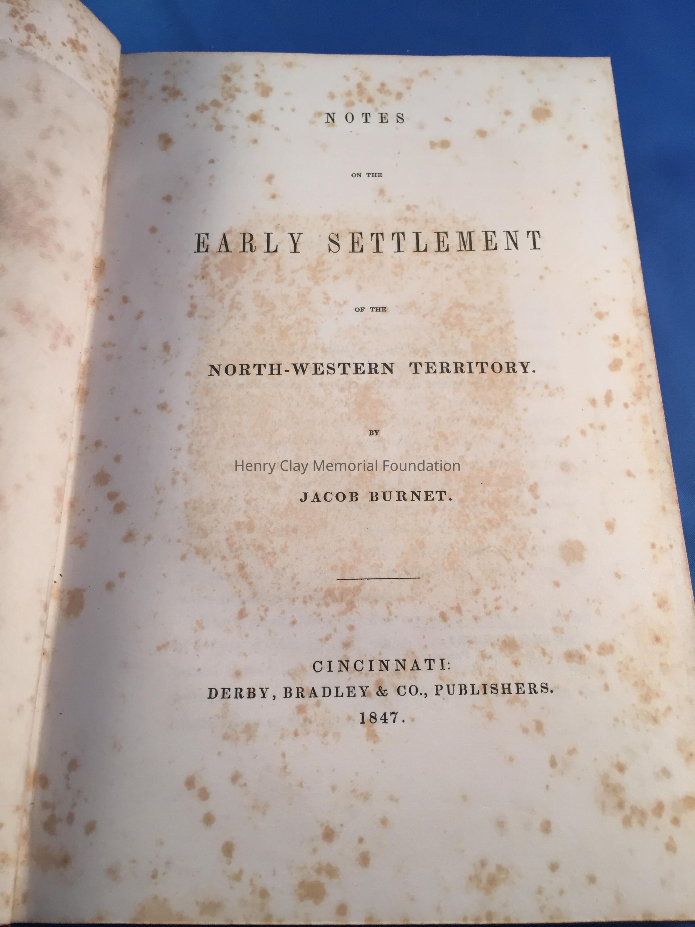 History of the settlement of the Northwestern Territory. Leatherbound book with marbled cover, 501 pages.