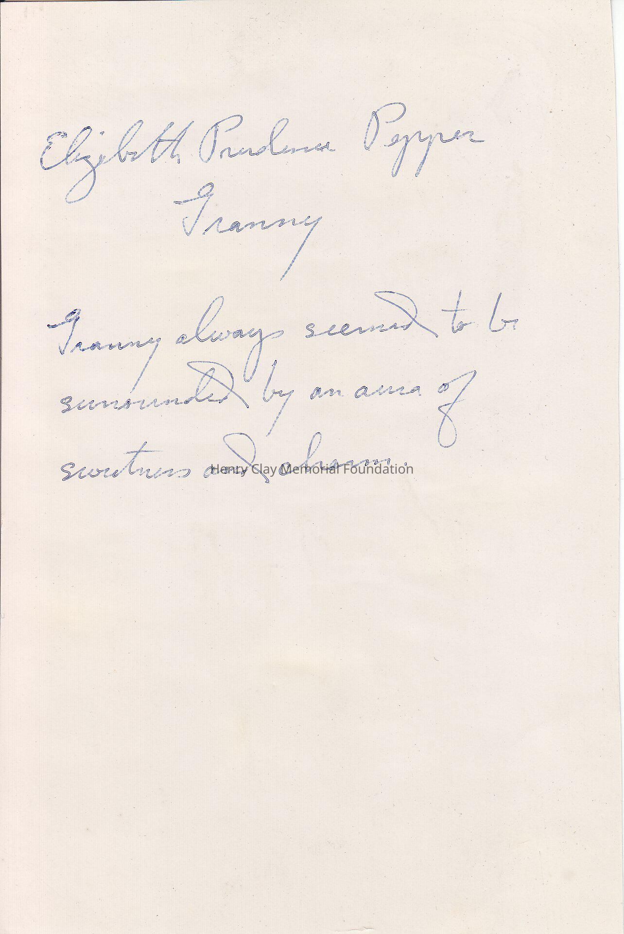 On the back of photograph there is an handwritten note " Elizabeth Paulina Pepper Granny. Granny always seemed to be surounded by an aura of sweetness and charm"Dimensions