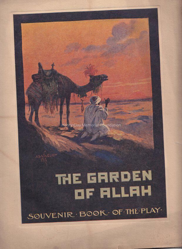 A book of the play " The Garden of Allah" Souvenir book of the play. Inside balck and white drawings, and photographs of the play.