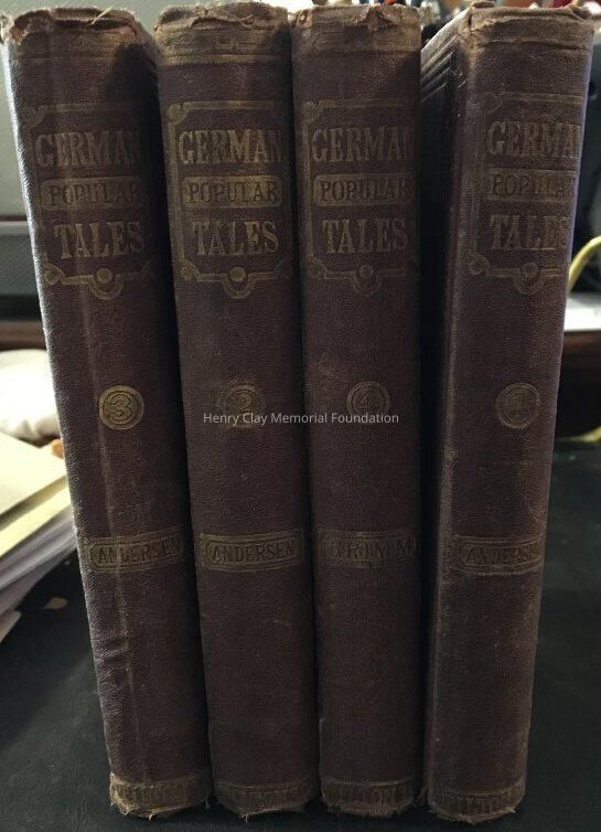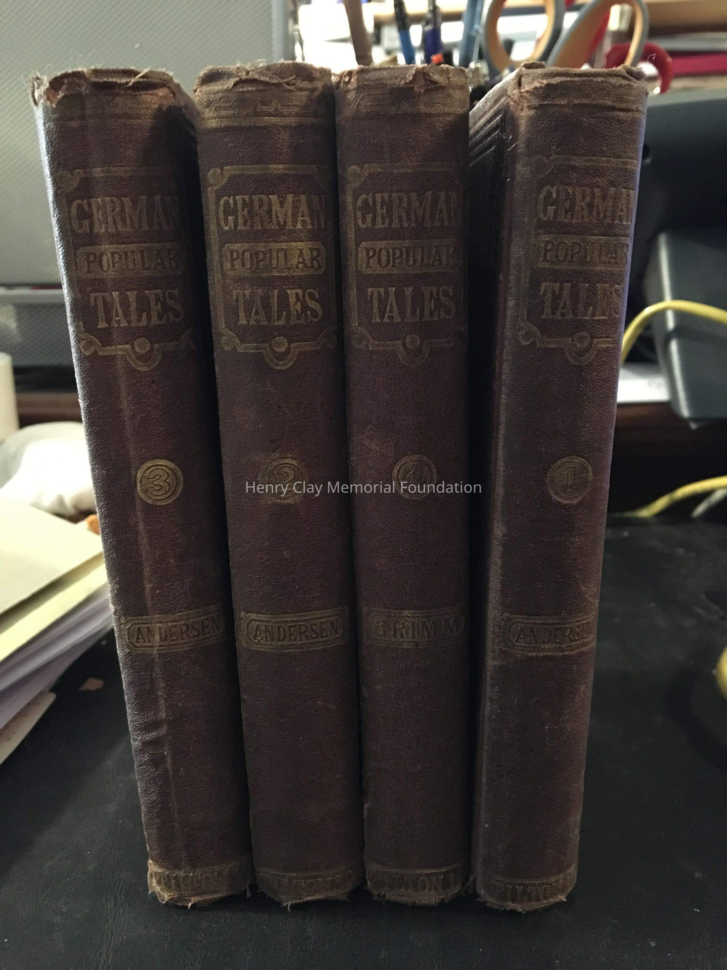 Collection of German fairy tales in four volumes. Maroon with gold lettering on spine cover.