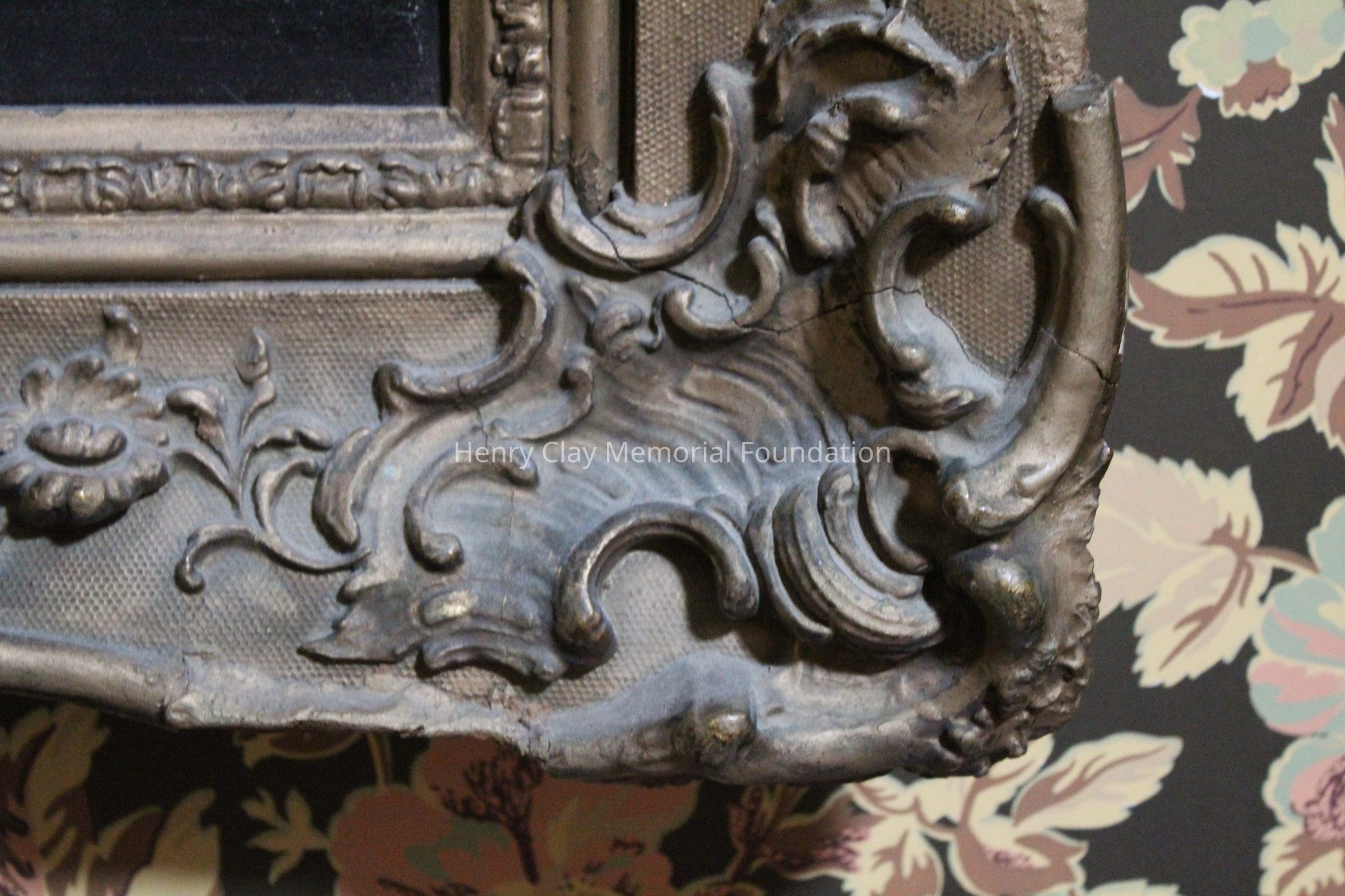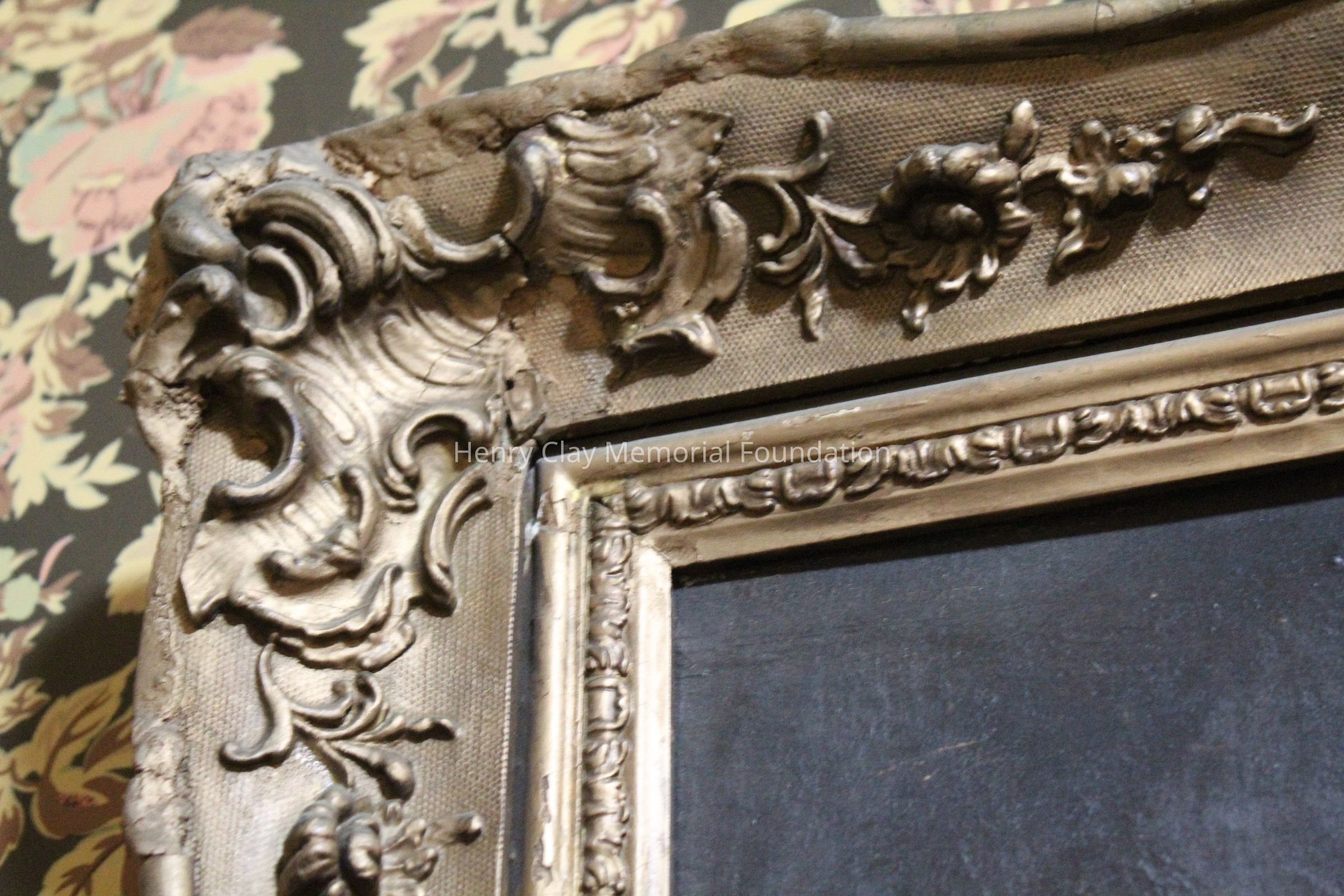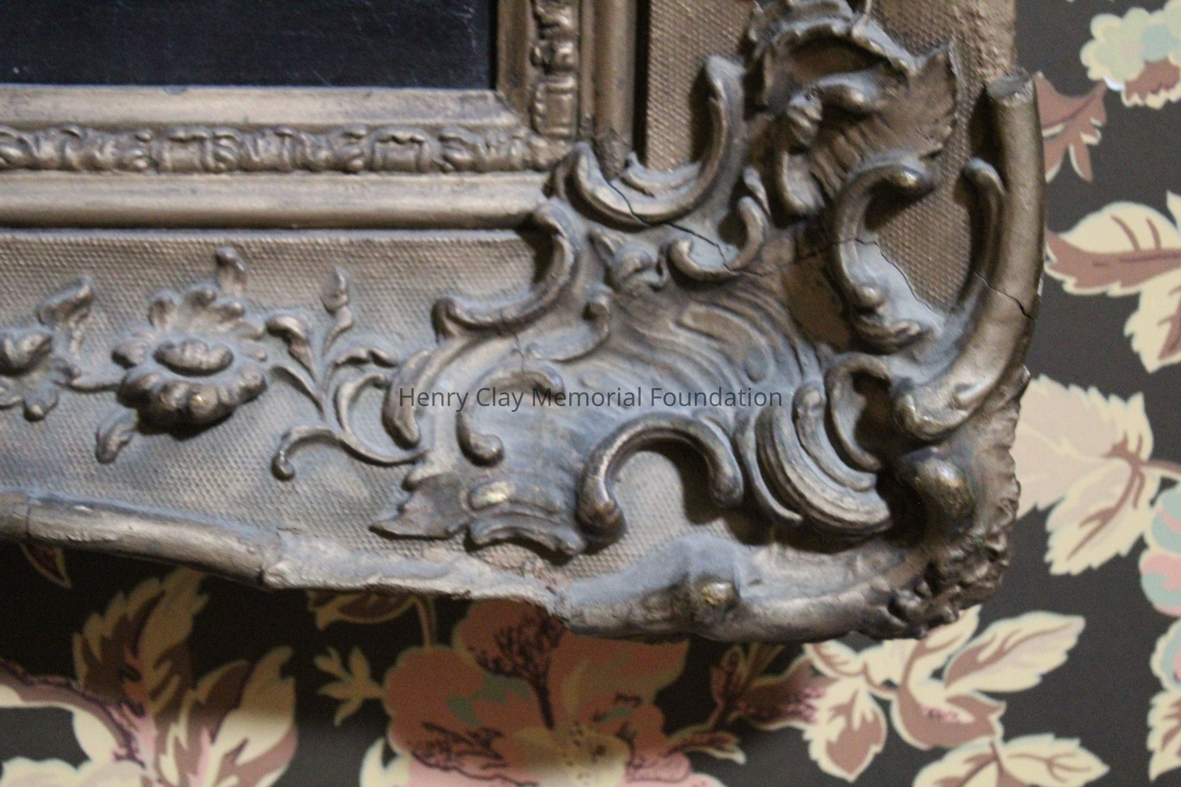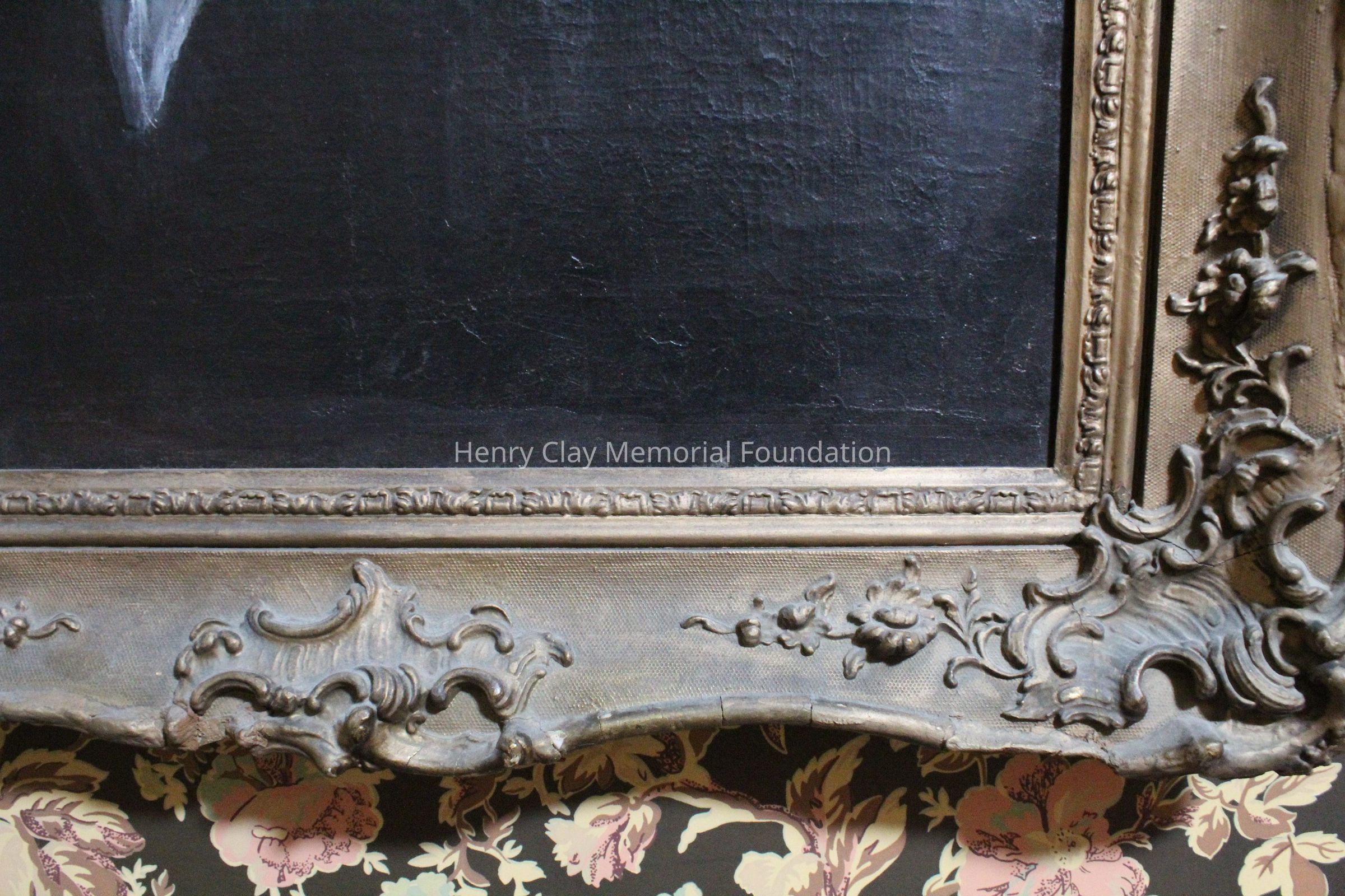 This portrait is of a man in a black coat, white shirt, and white cravat. His right hand is visible and in it he is holding a cane with a gold knob. The portrait is framed in a gilt gessoed Rococo frame. The man's hair is dark and cut into a jagged hairline. The man is seated in a dark wood chair with rose colored upholstery.Dimensions