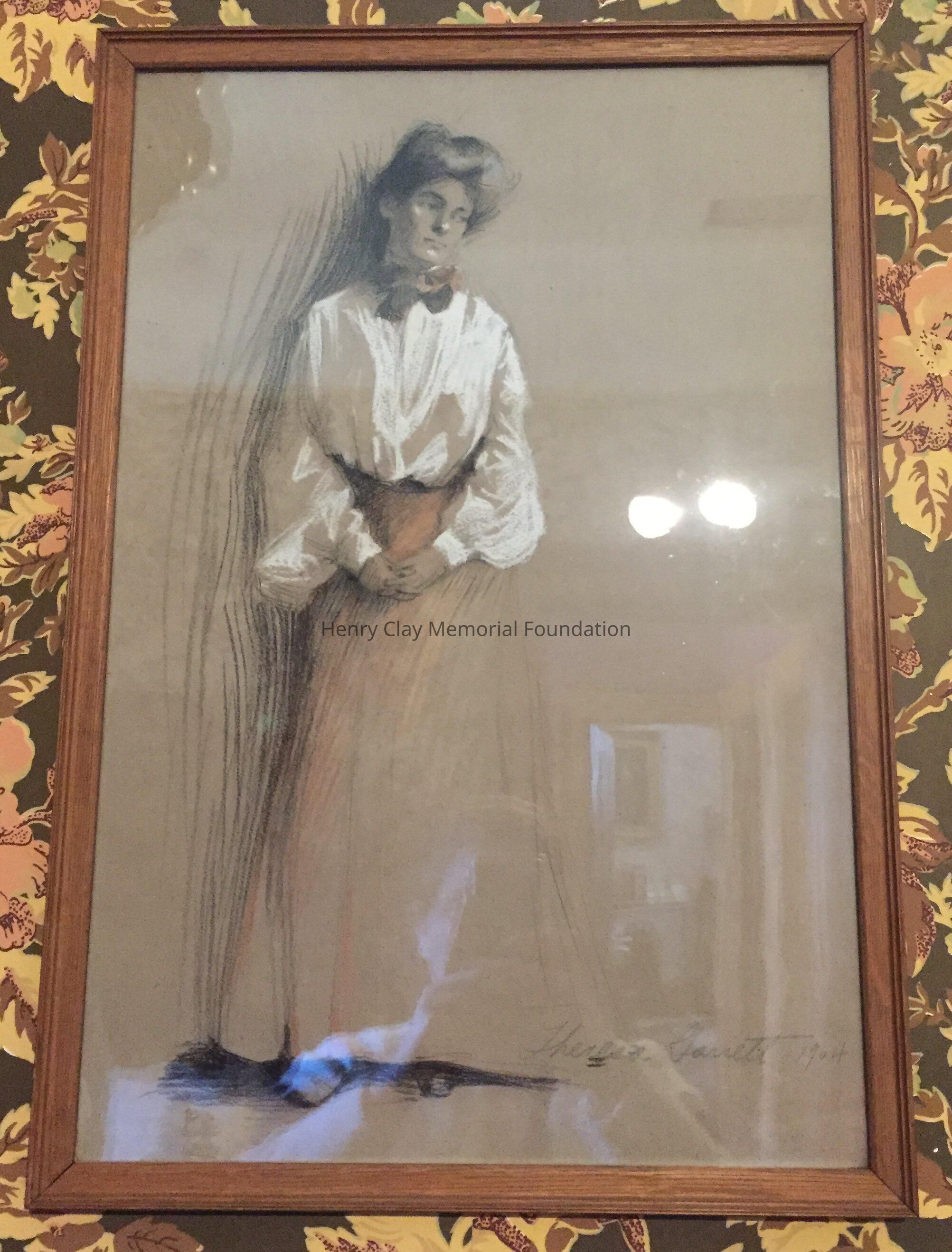 Full length standing portrait of an unknown woman in chalk, c. 1904. Signed "Theresa Garrett, 1904" in pencil. On back, inscribed in pencil: "26 Crescent Court, Crescent Hill, KY. Price $10.00."Dimensions