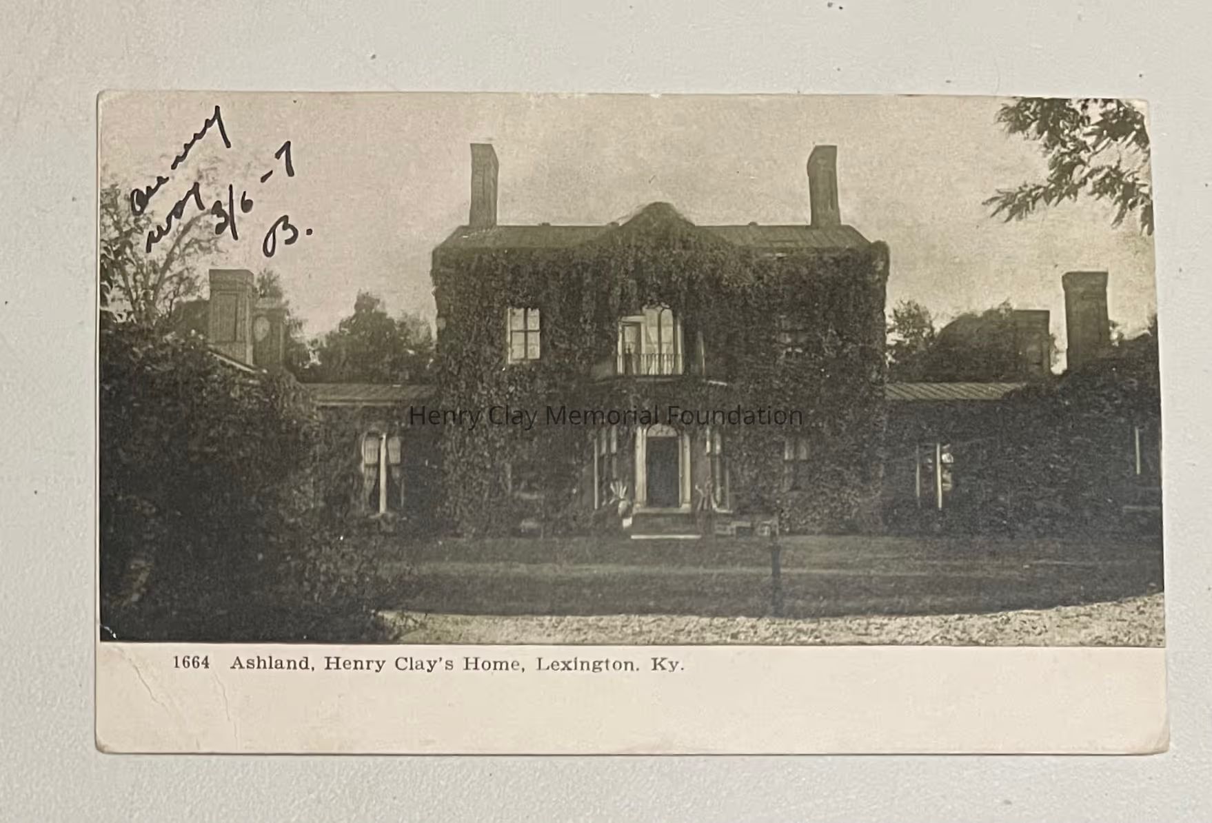 A postcard with an image of Ashland captioned "Ashland, Henry Clay's Home, Lexington, Ky."