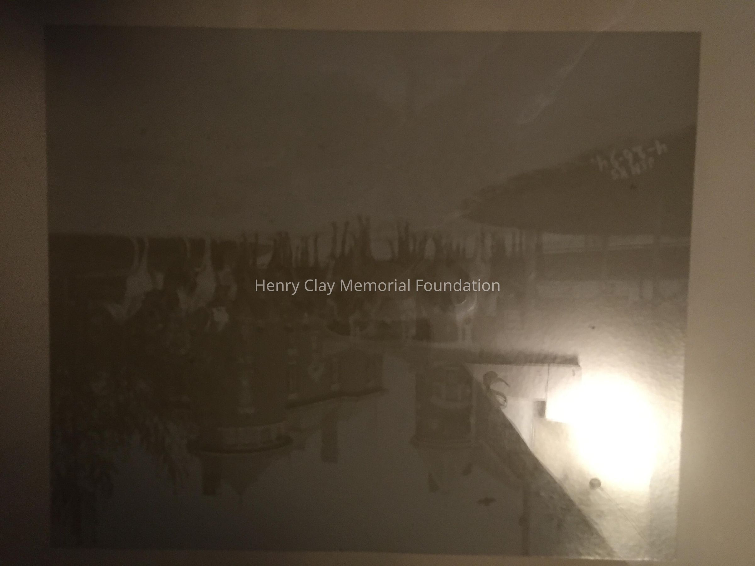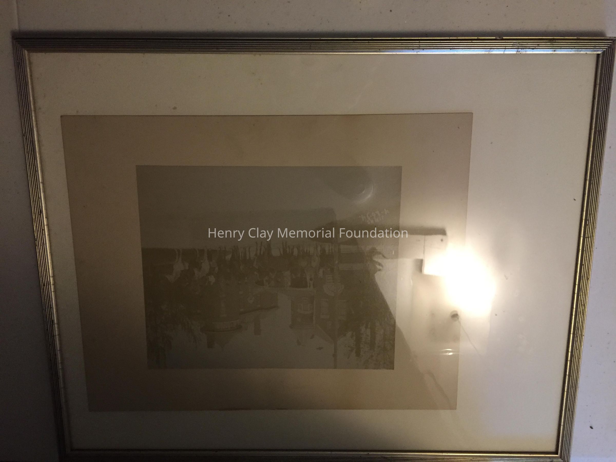 Sepia photo of men on horses in front of two large brick houses. Bottom left of photo reads: "Jenks / 4-24-94." Photo is adhered to a heavier paper board. Framed in a thin silver frame.Dimensions