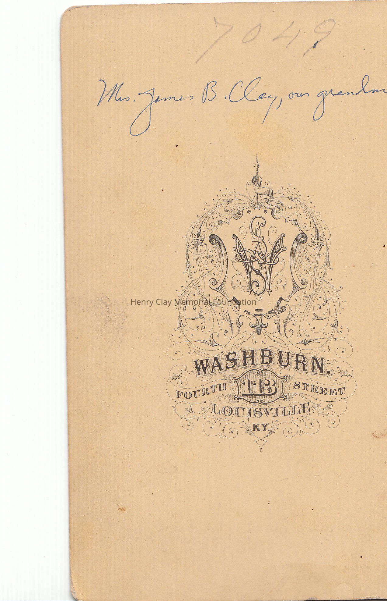 In the rear there is the symbol of the photographer Washburn in Louisville, and an annotation in pen " Mrs. James B. Clay, our Grandmother"Dimensions