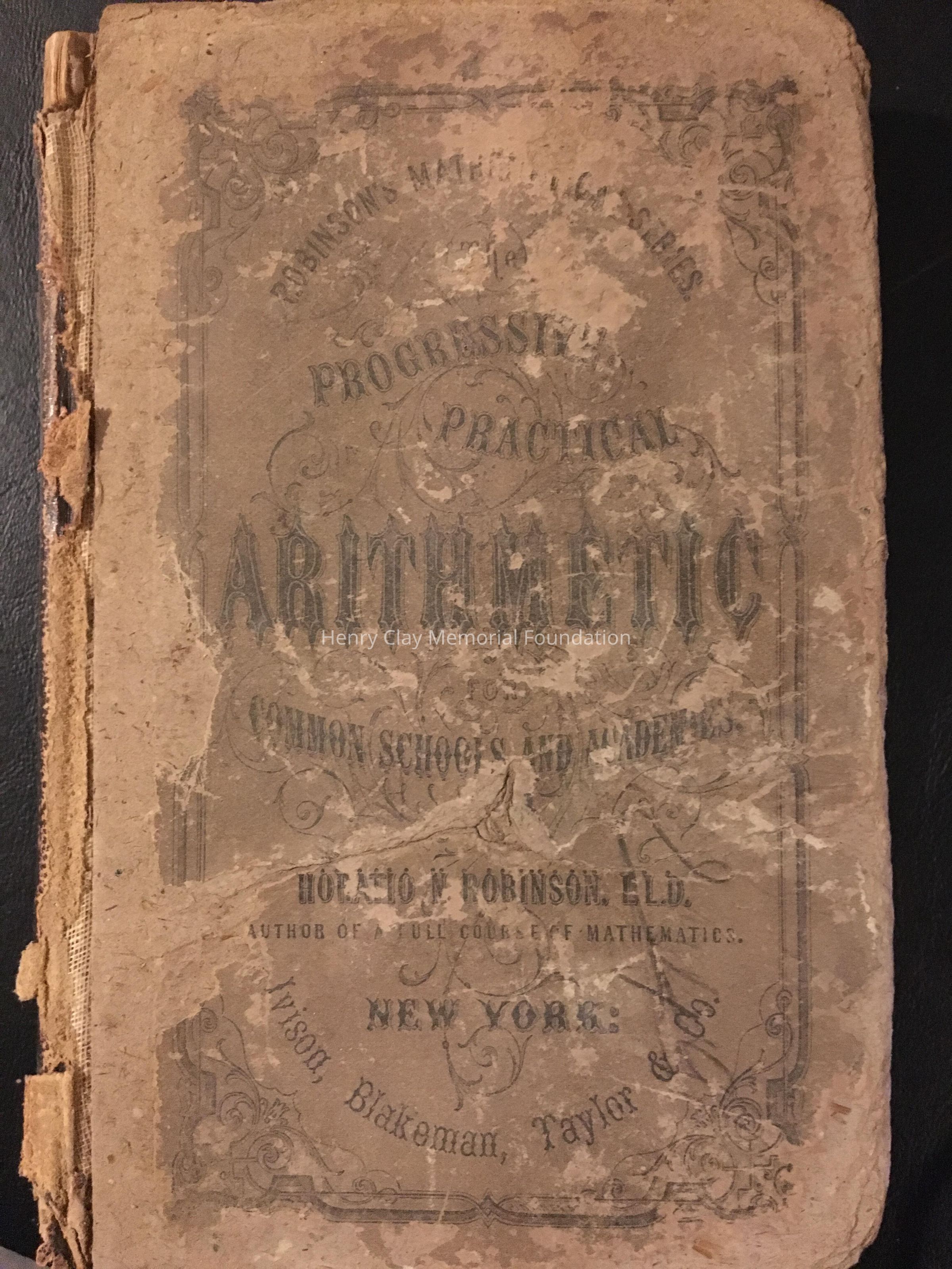 A textbook of arithmetic. Inside many pencil writings, and math problems. Noticed "McDowell" name in many spots.