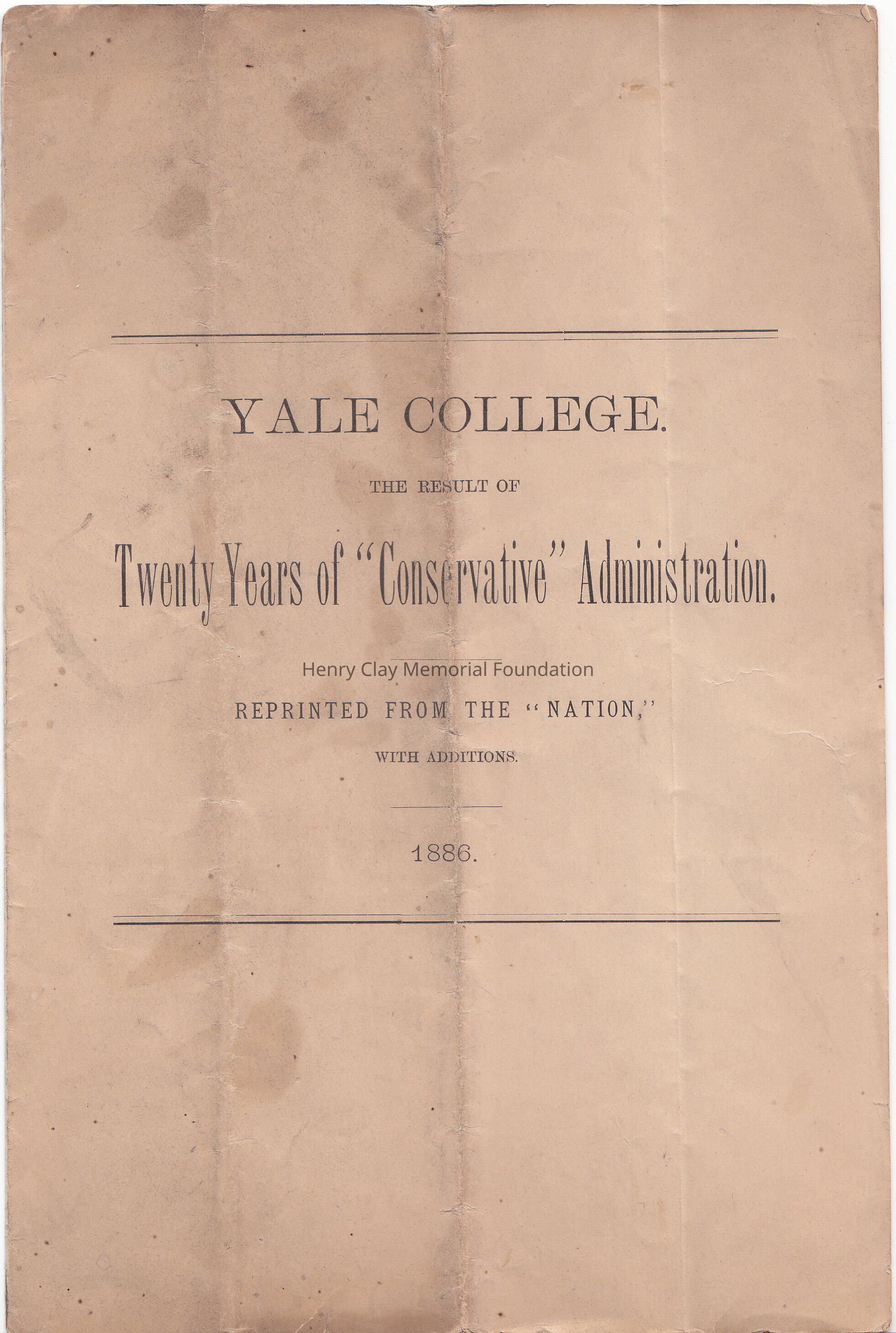 Yale College The result of Twenty Years of "Conservative"Administration. Reprinted from the Nation with additions, 1886.