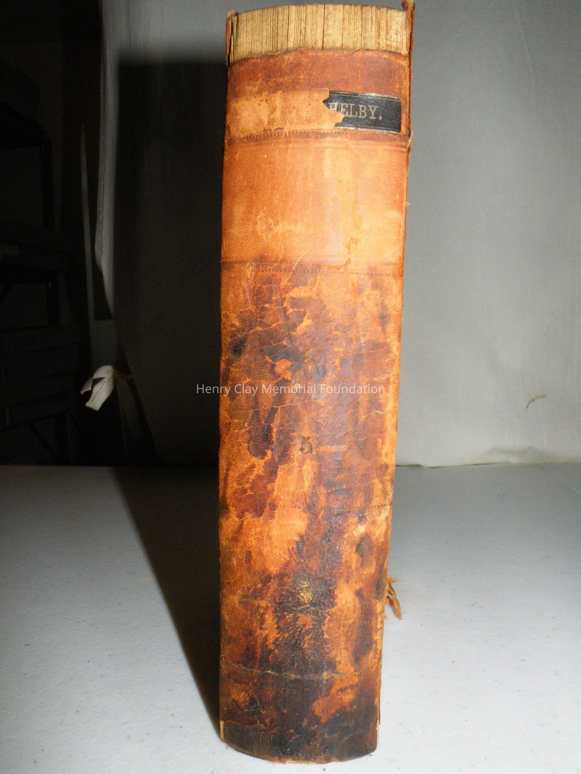 Brown leather cover with partial spine label now reading "Helby."