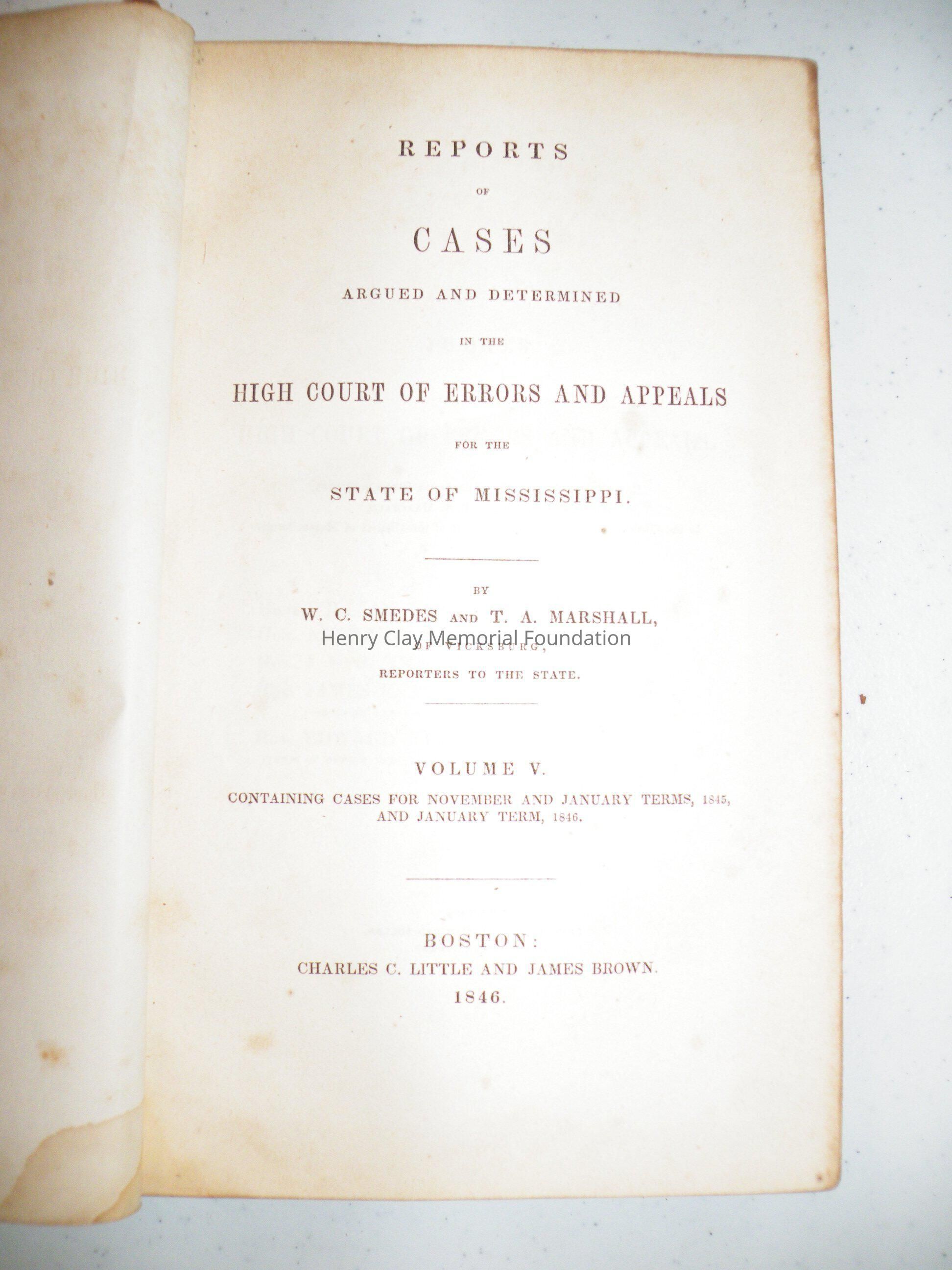 Reports of Cases Argued and Determined in the High Court of Errors and Appeals for the State of MississippiEntry/Object ID