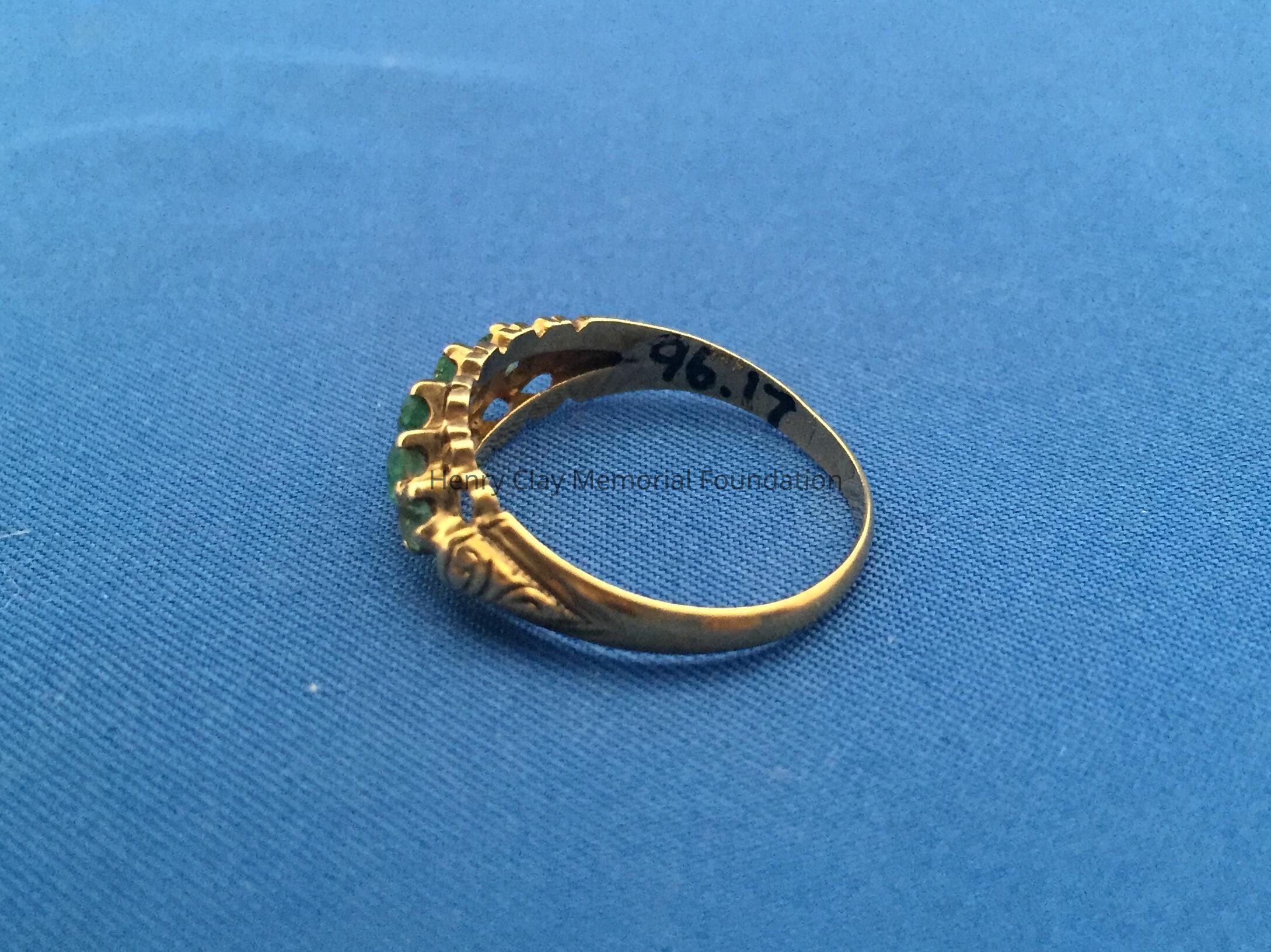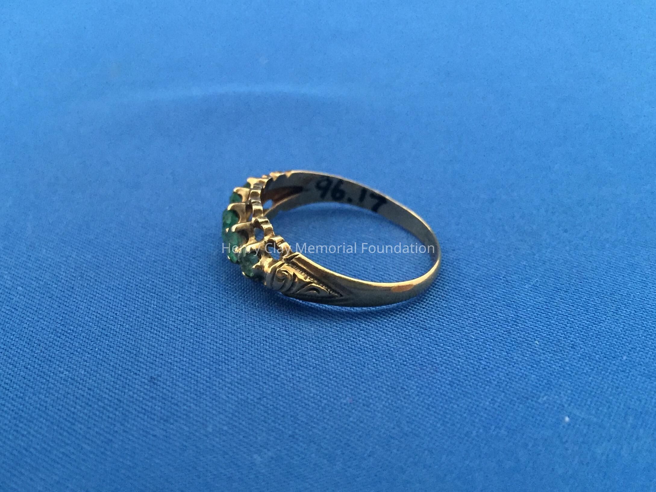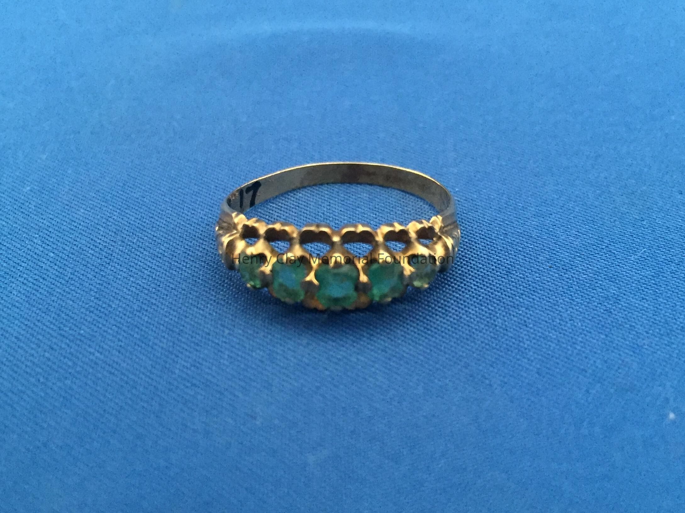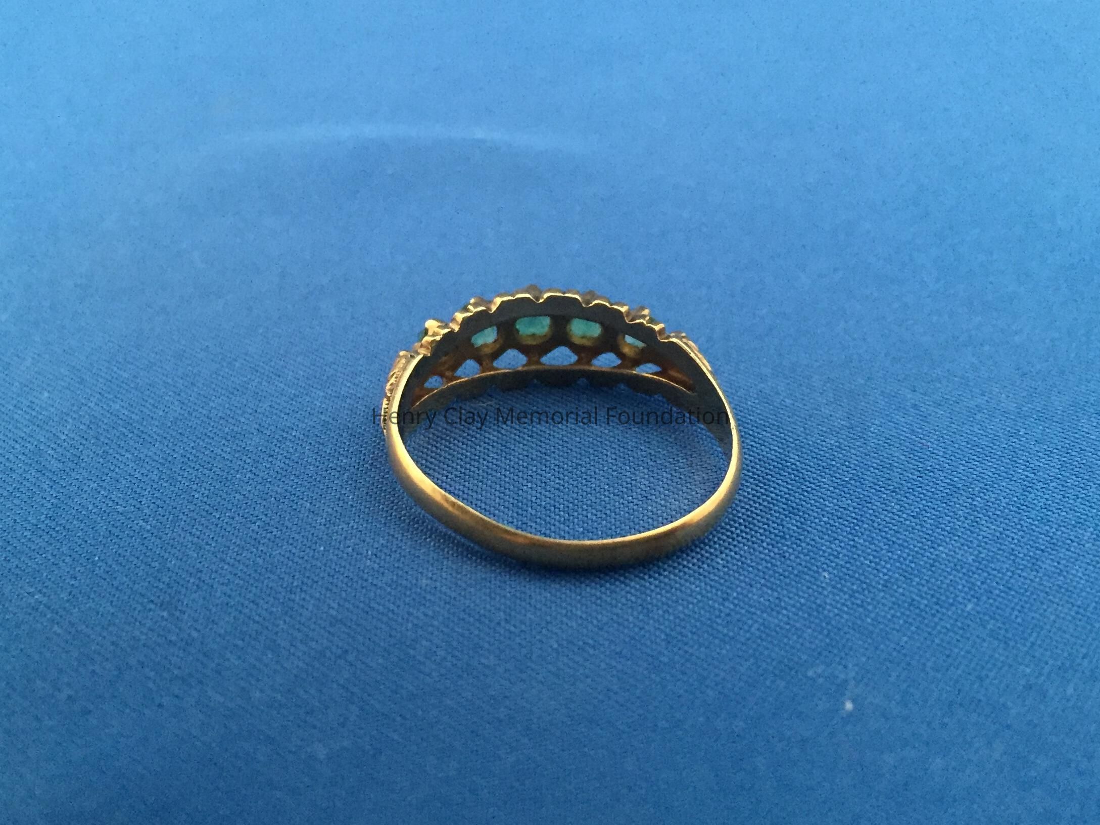 Ladies green beryl ring fashioned in 18k yellow gold, set with five pieces of natural green beryl with a total weight of 0.33 carats.